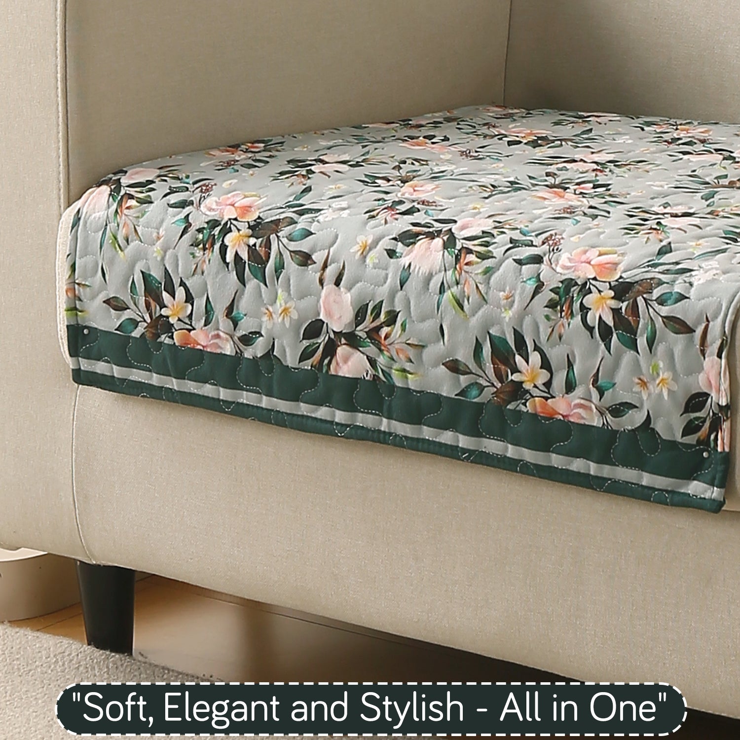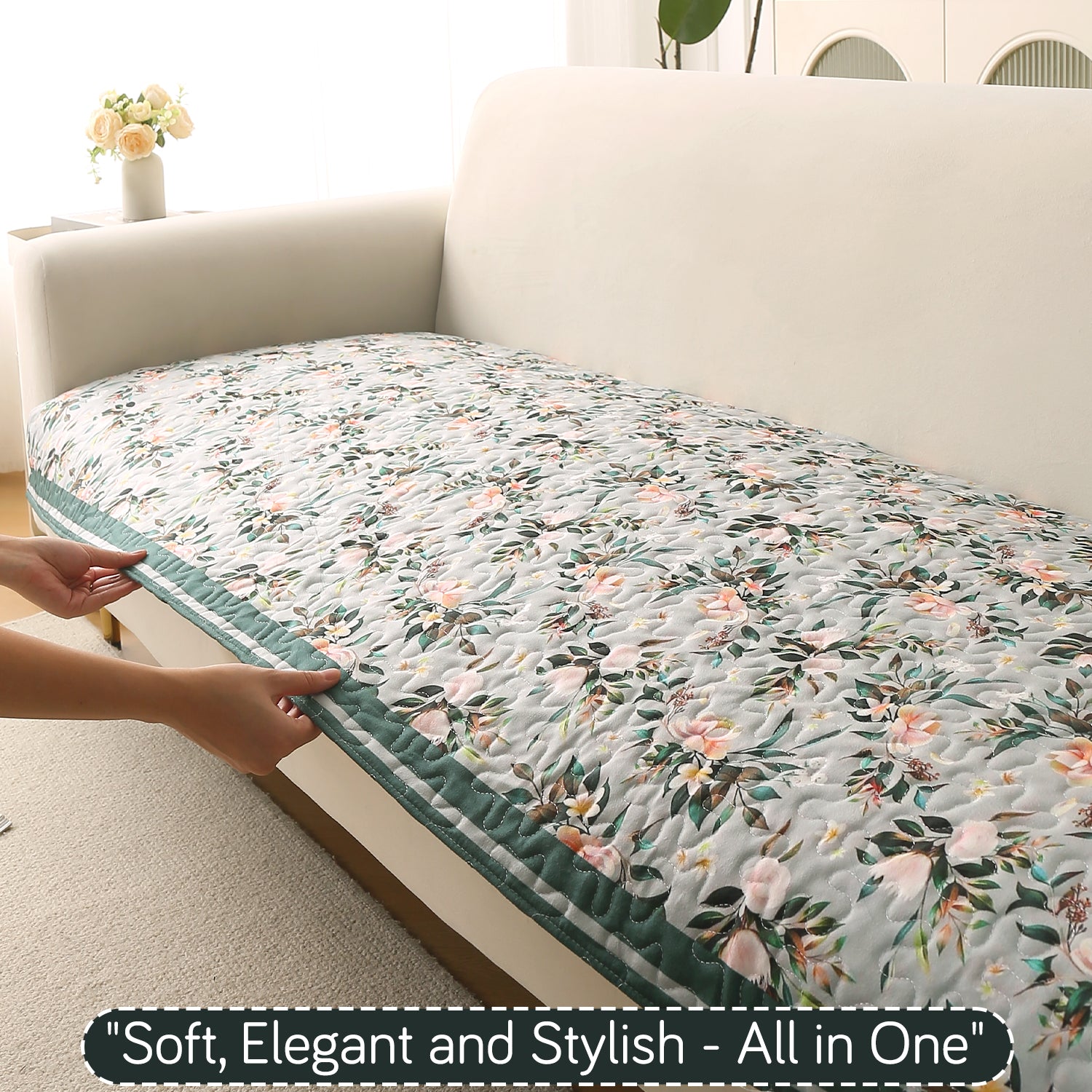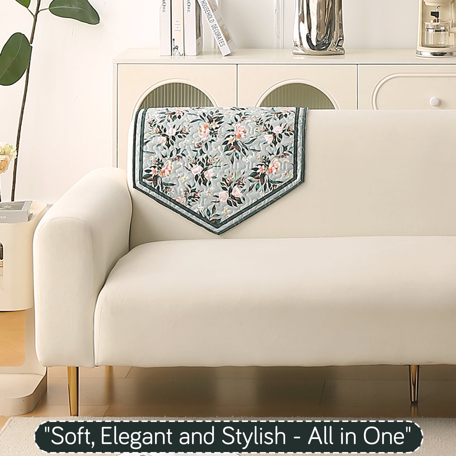 Florentina Series Printed Holland Velvet Sofa Mat - Magnolia Green
