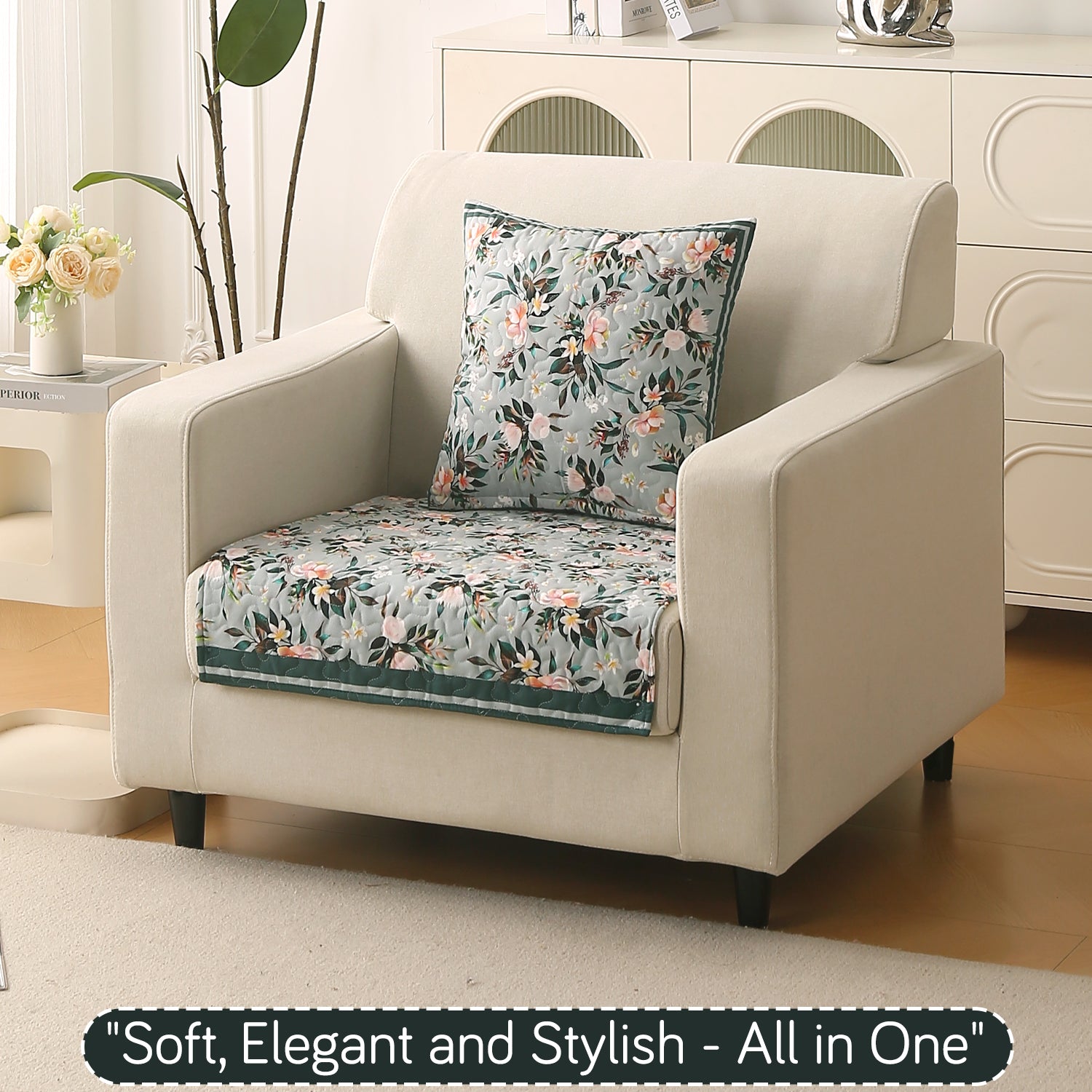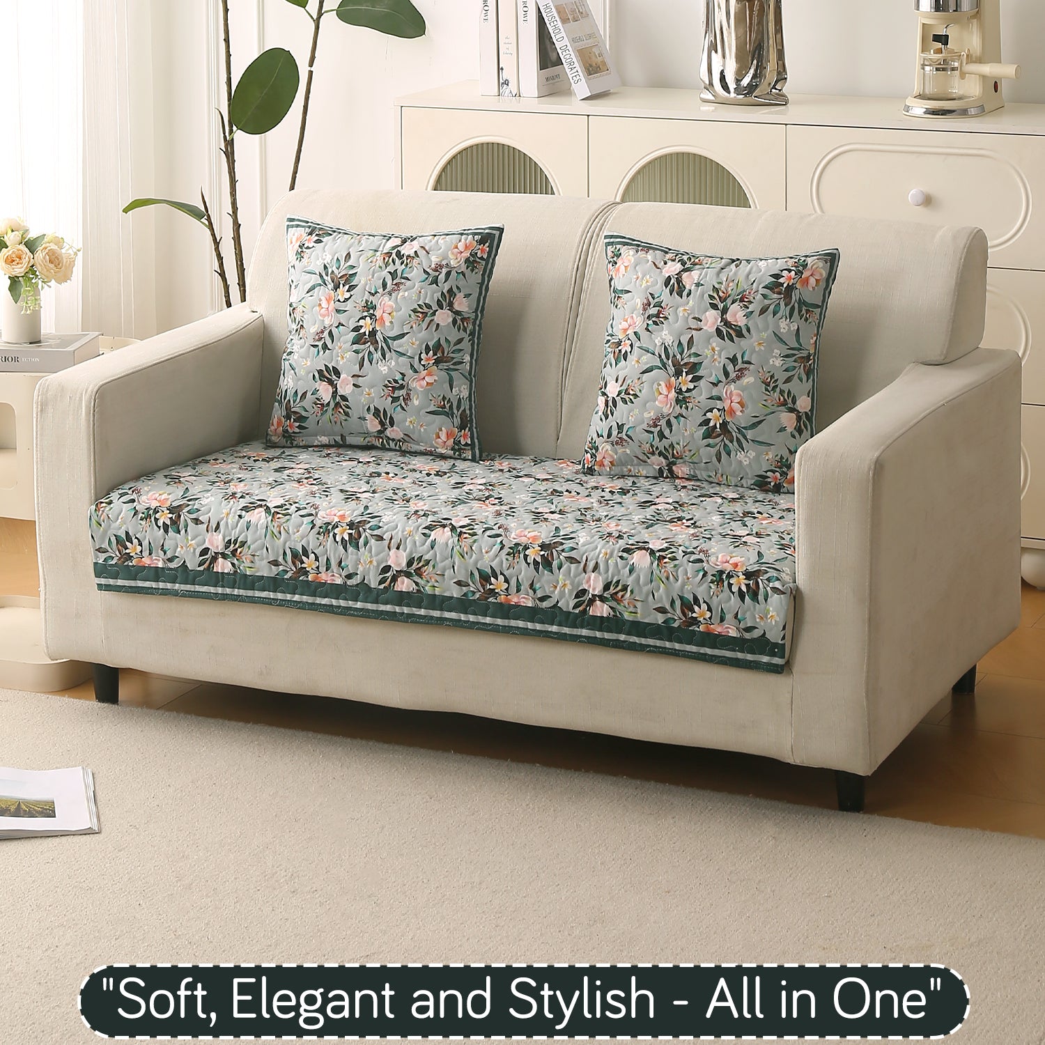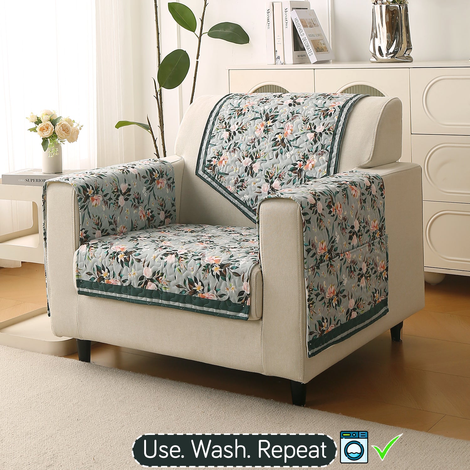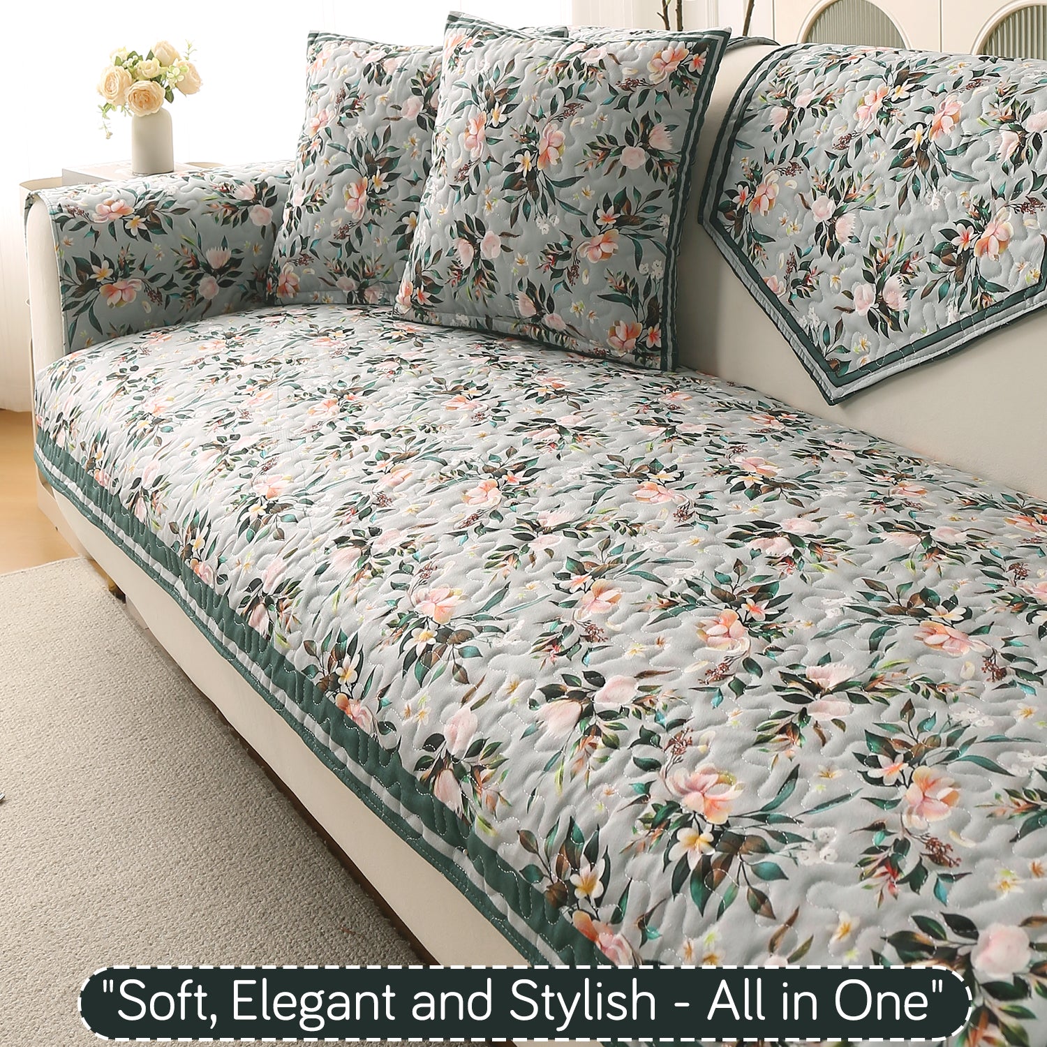 Florentina Series Printed Holland Velvet Sofa Mat - Magnolia Green