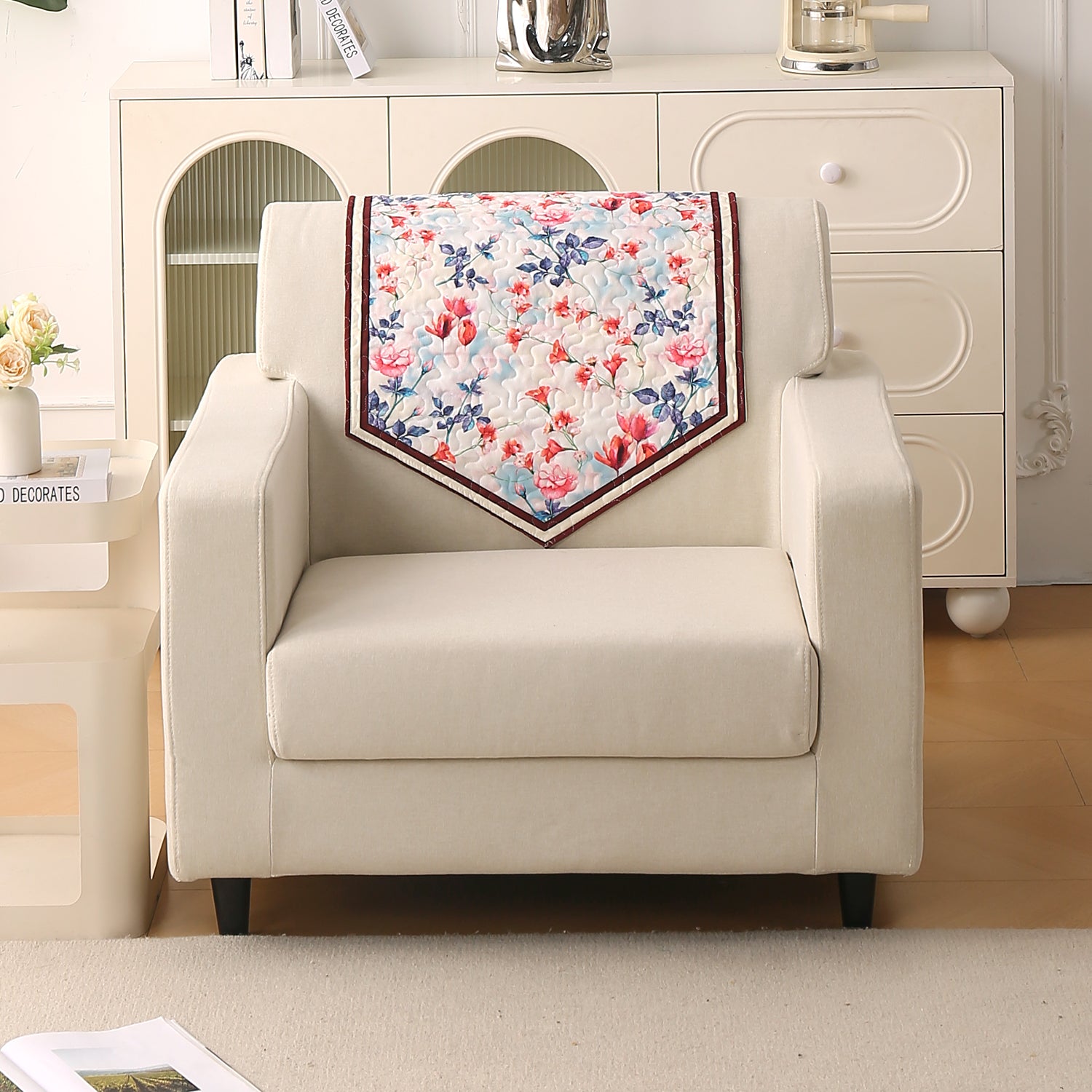 Florentina Series Printed Holland Velvet Sofa Mat - Scarlet Rose Ivory