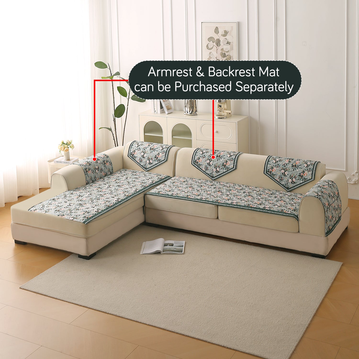Florentina Series Quilted Holland Velvet L Shape Sofa Seat Mat - Magnolia Green
