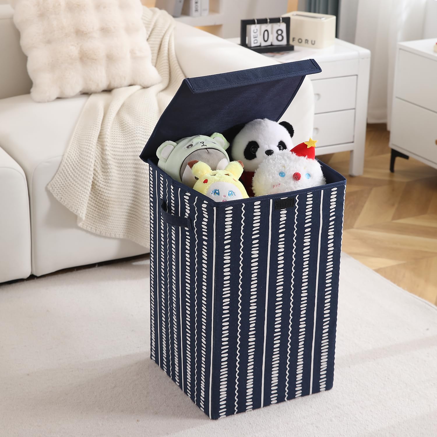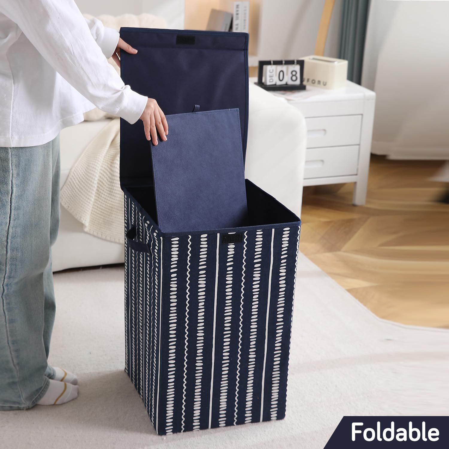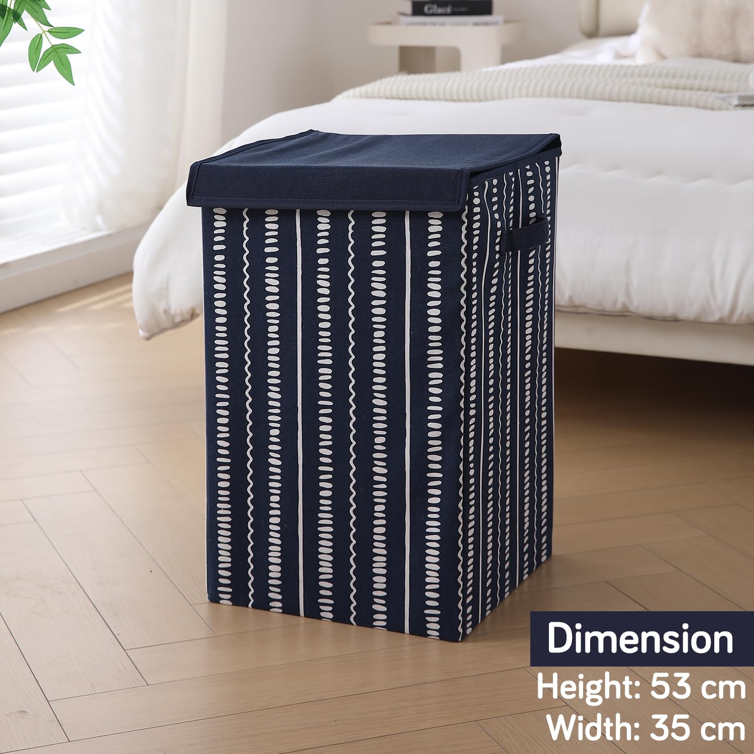 • HOKIPO Laundry Basket with lid is made from premium fabric and a sturdy cardboard base, allowing it to stand upright even when empty.