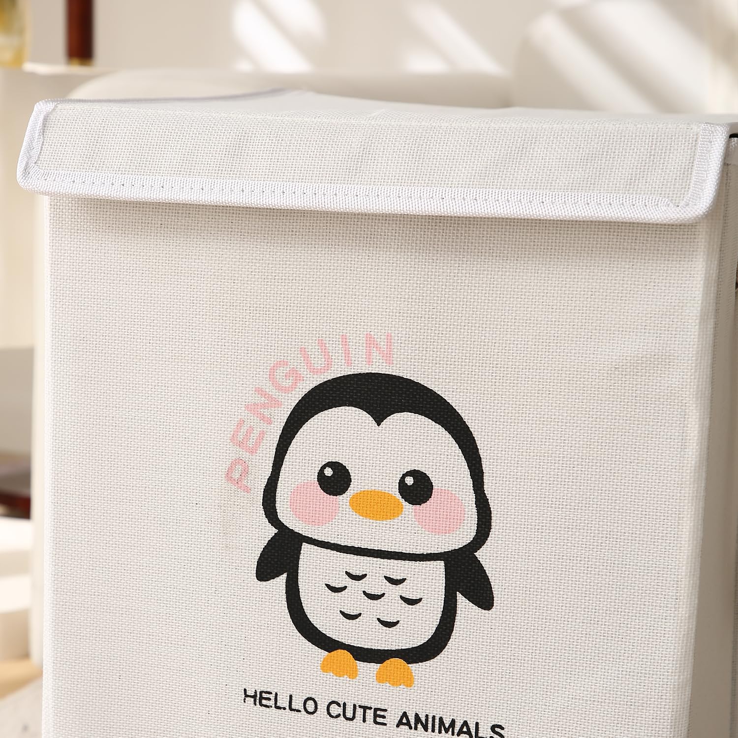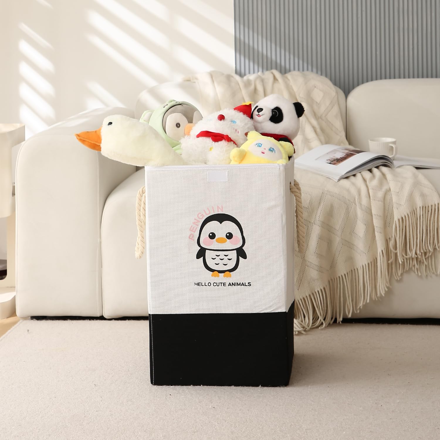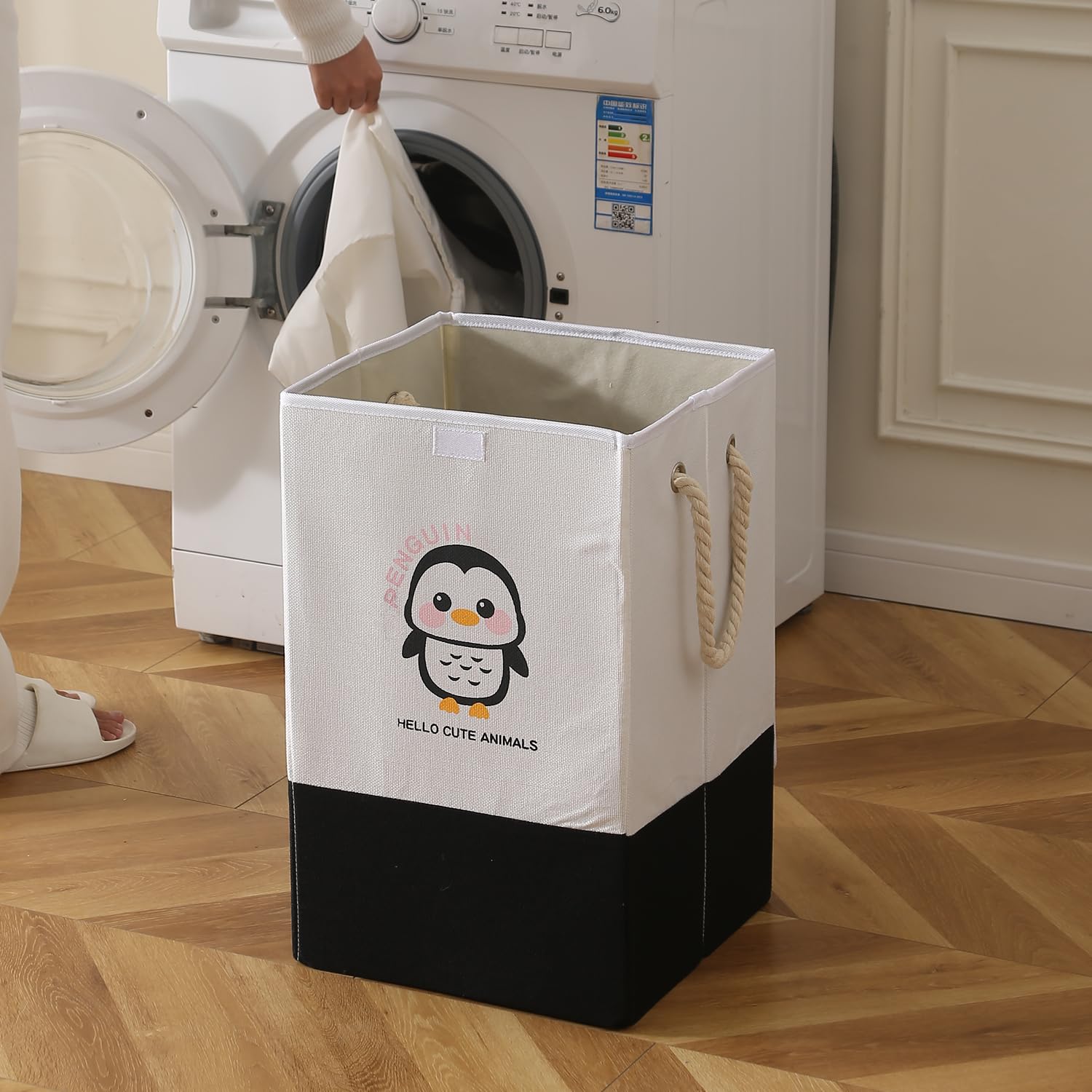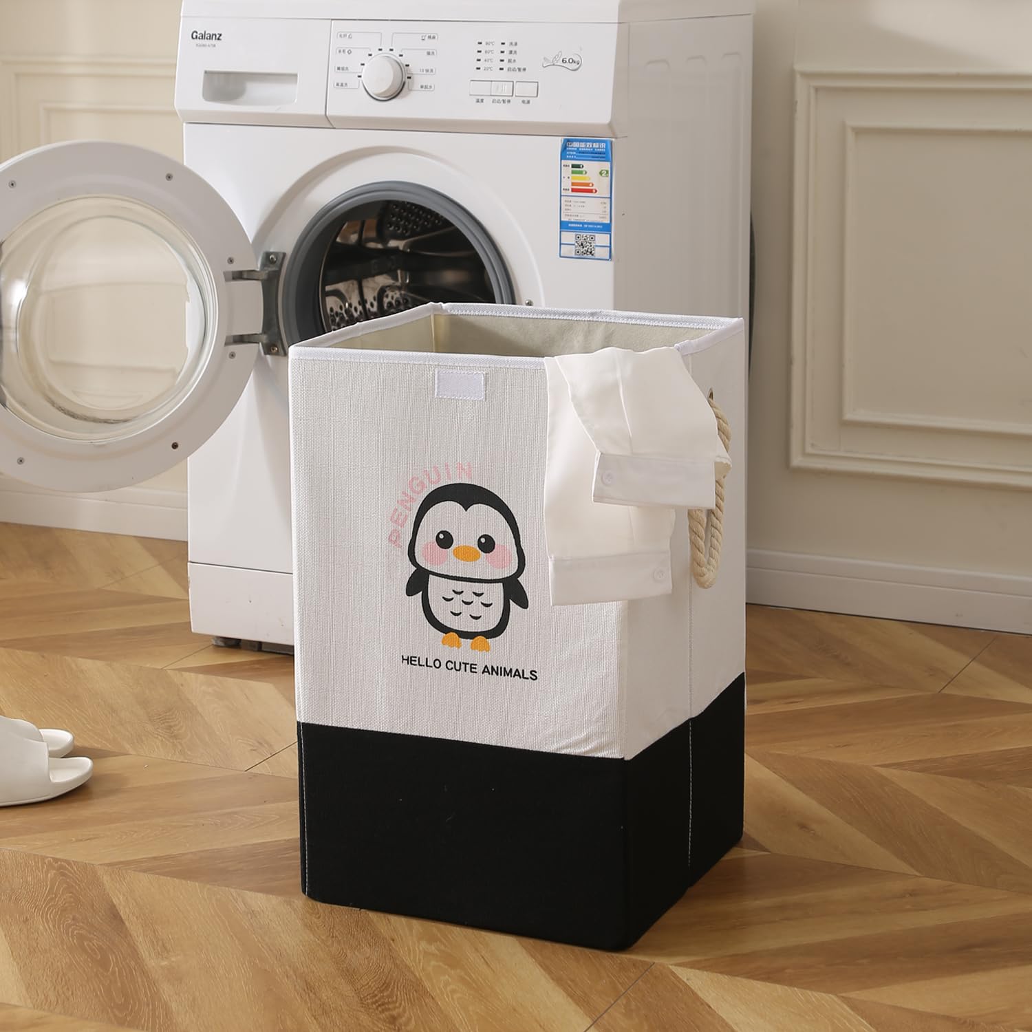 Foldable Laundry Basket for Clothes with Lid, Black - Penguin