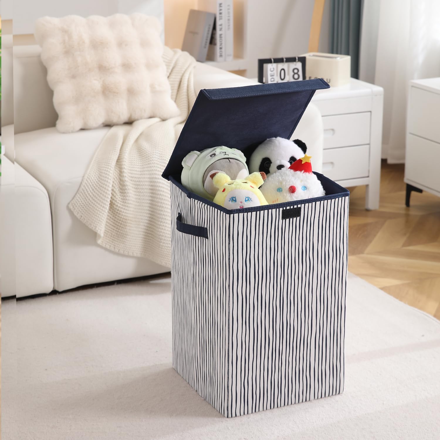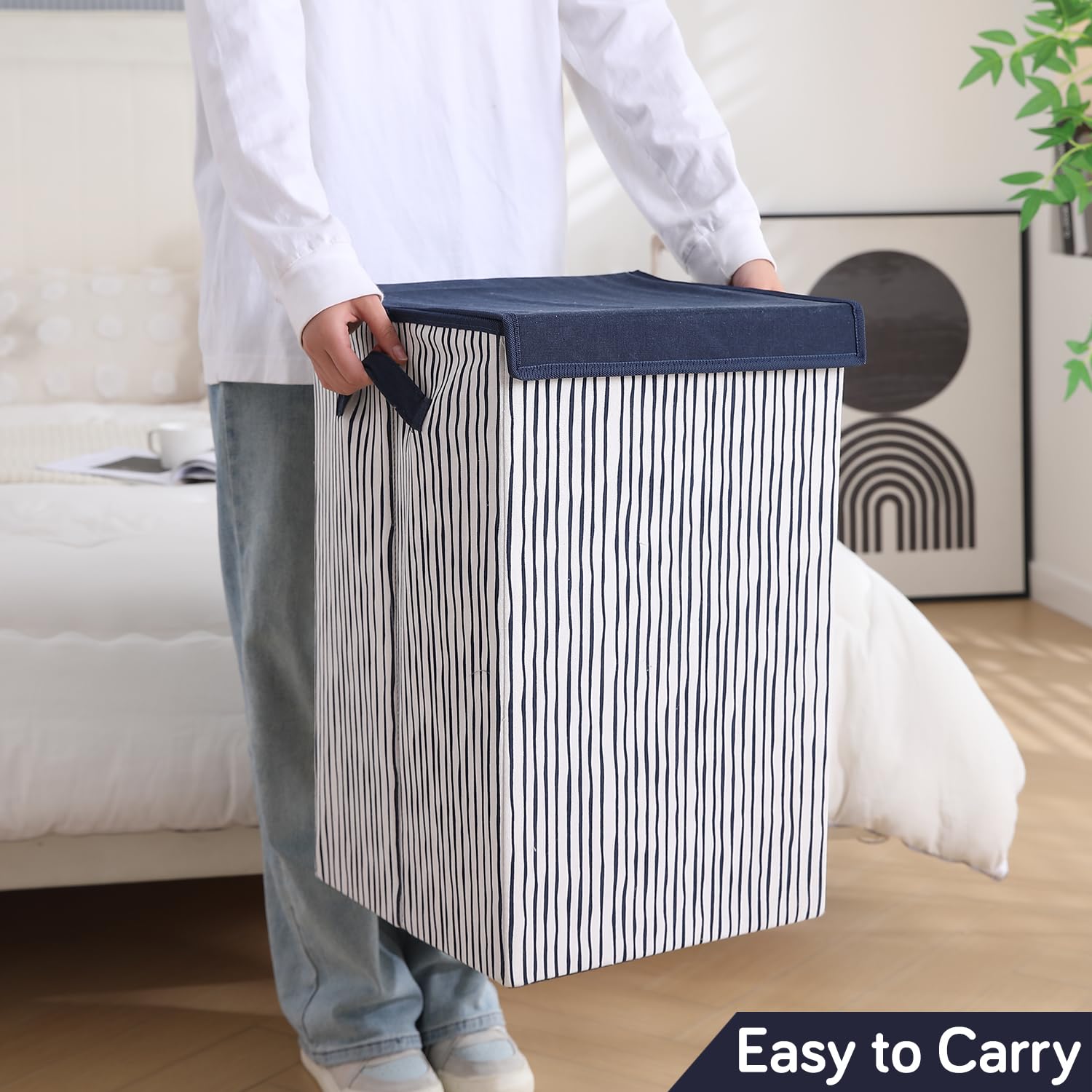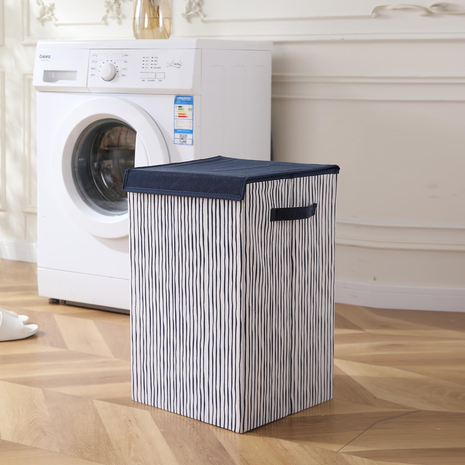 Foldable Laundry Basket for Clothes with Lid, Stripes
