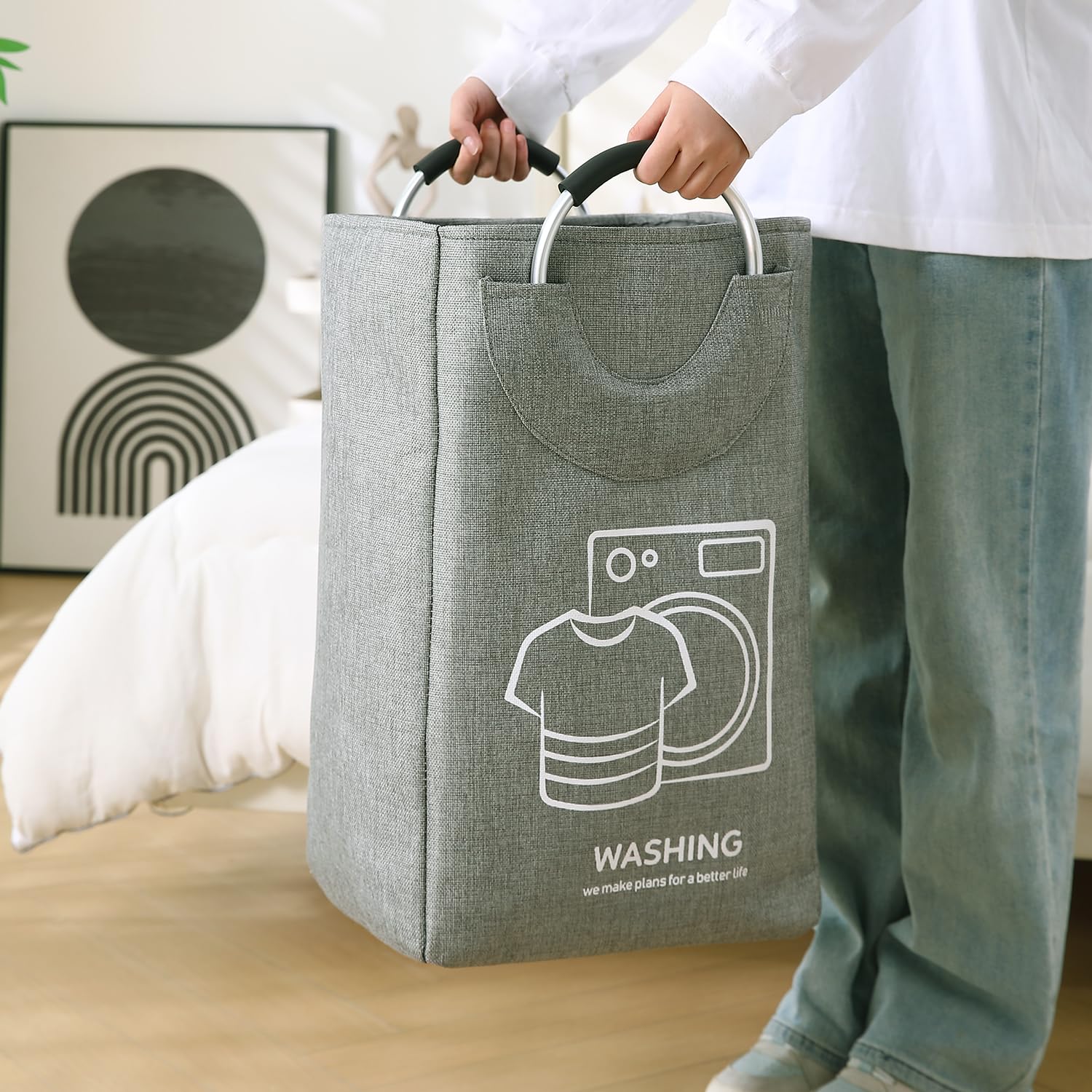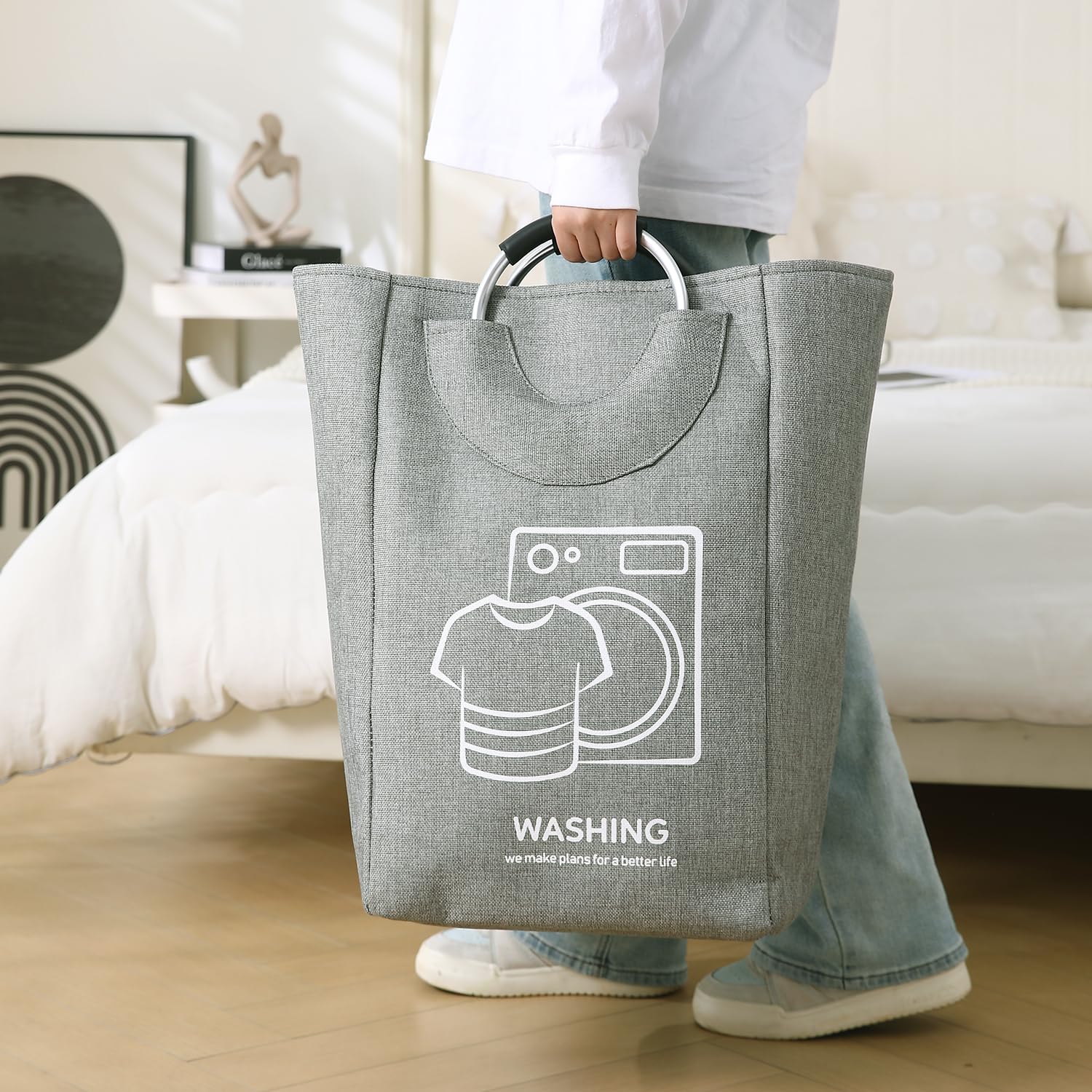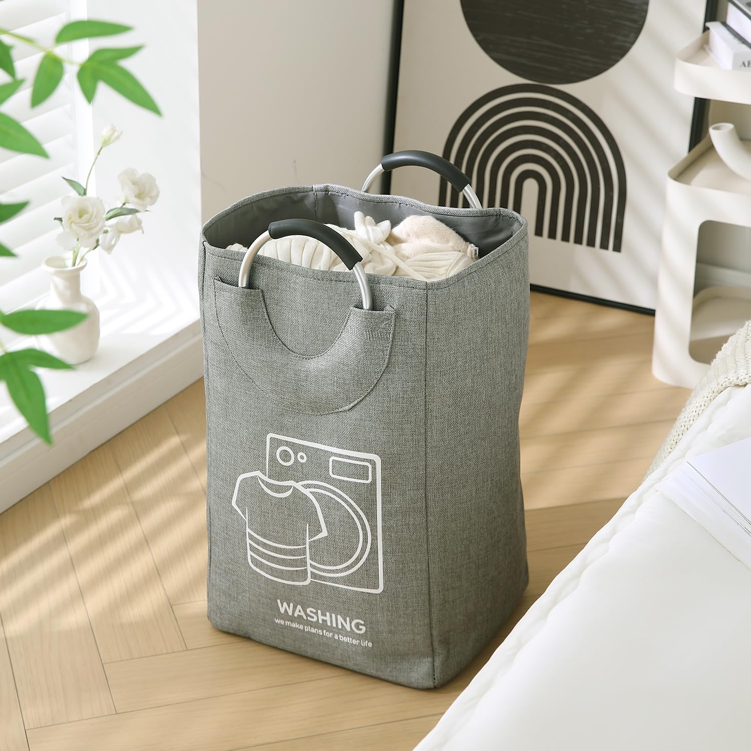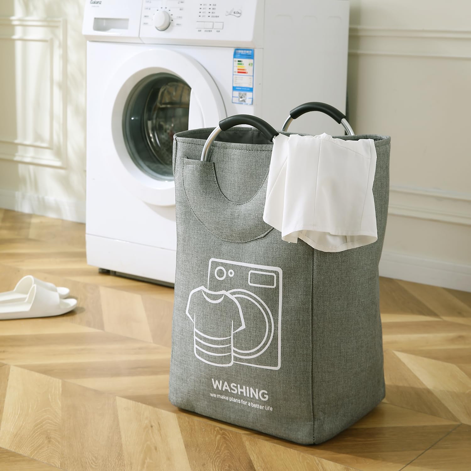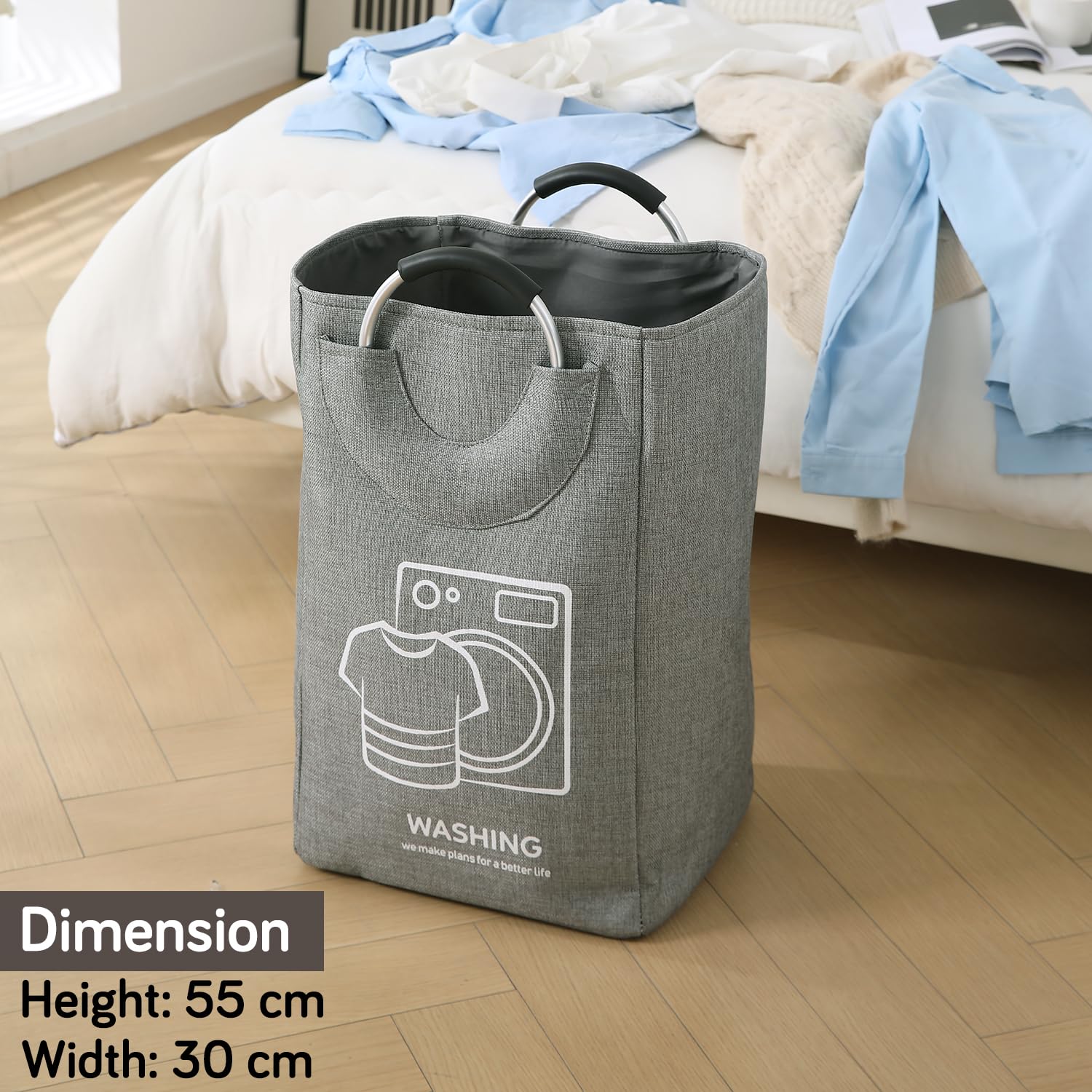 Folding Laundry Bag for Clothes Hamper Basket Collapsible Storage Basket, 30 x 27 x 55 cm Grey