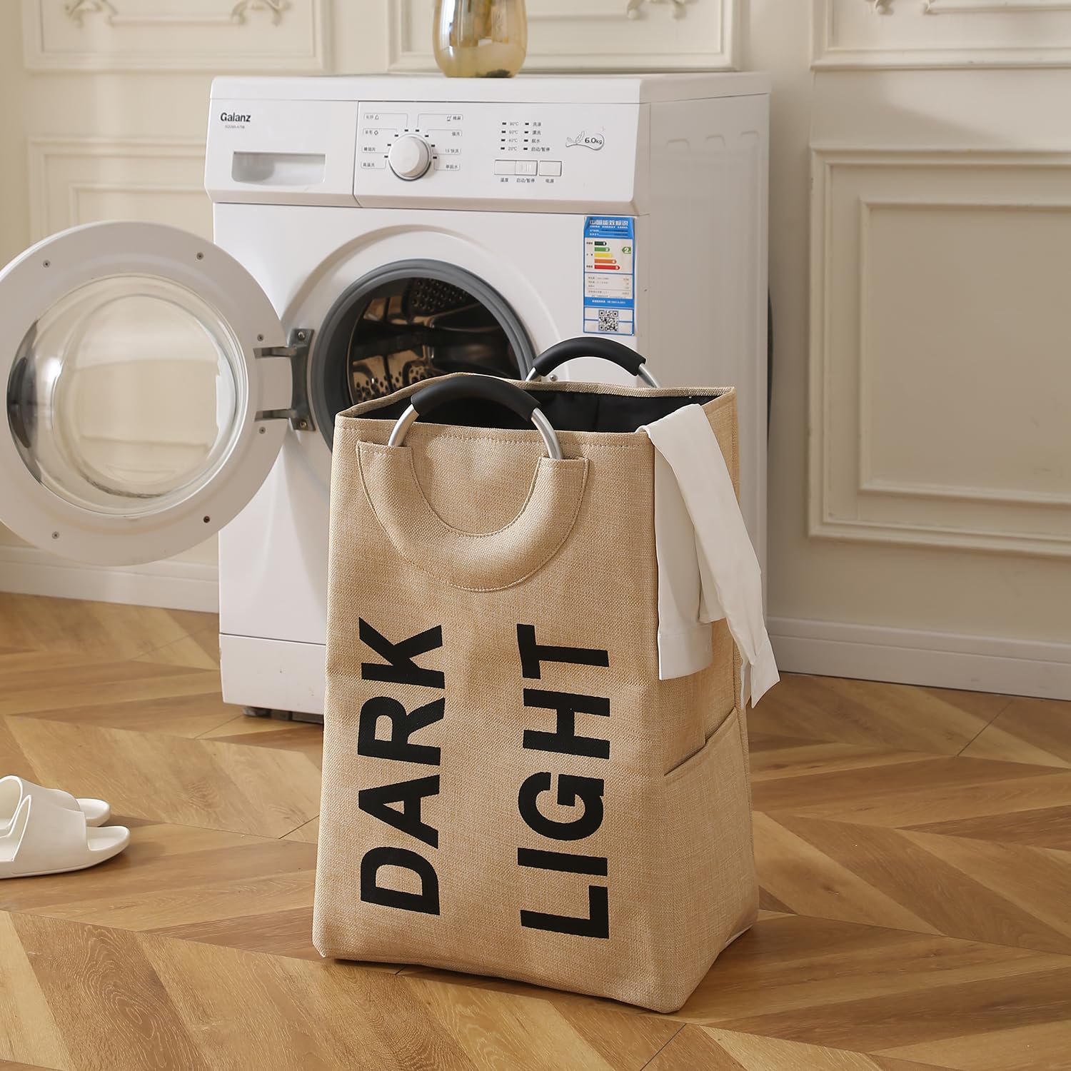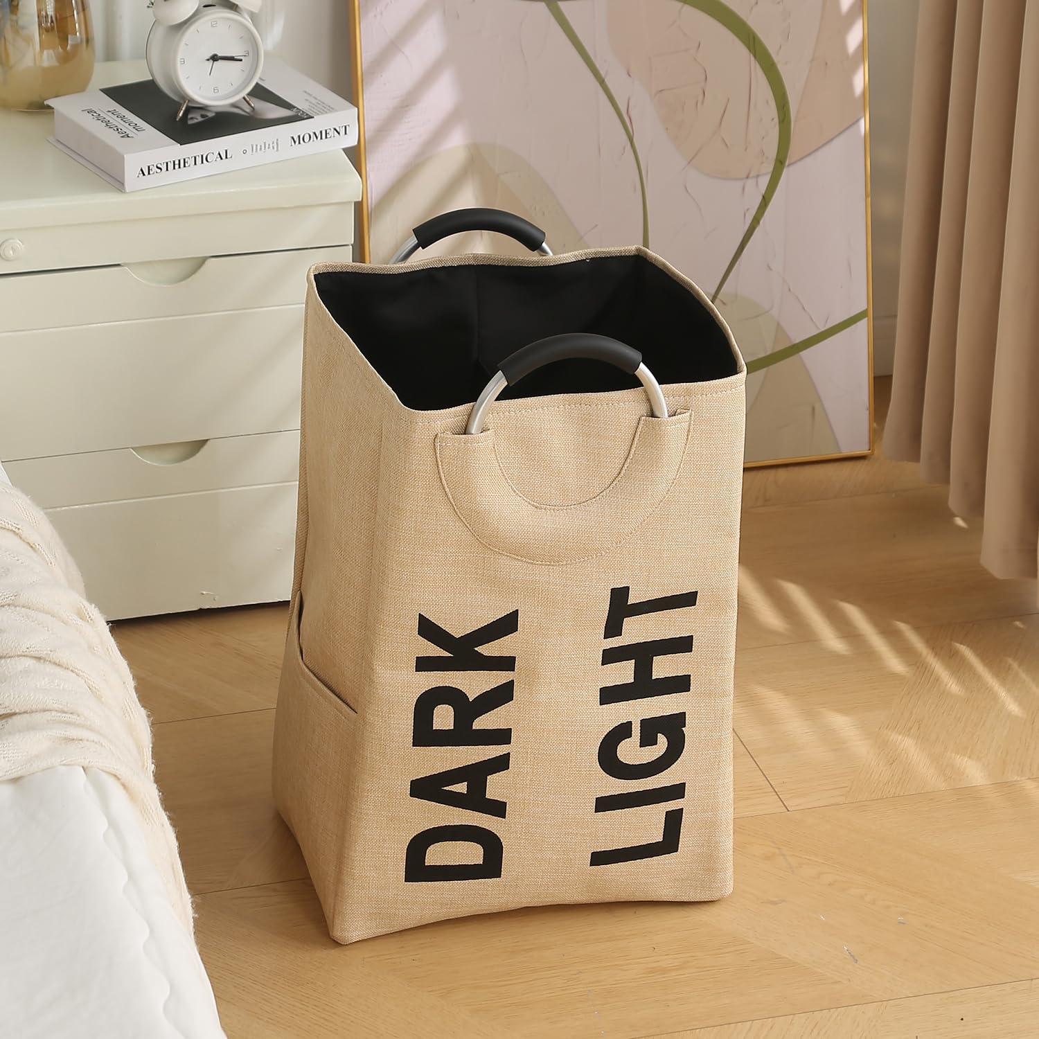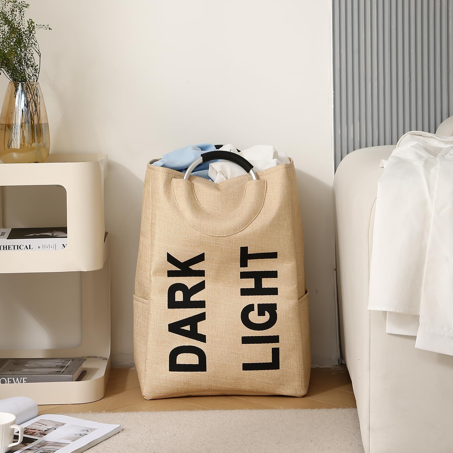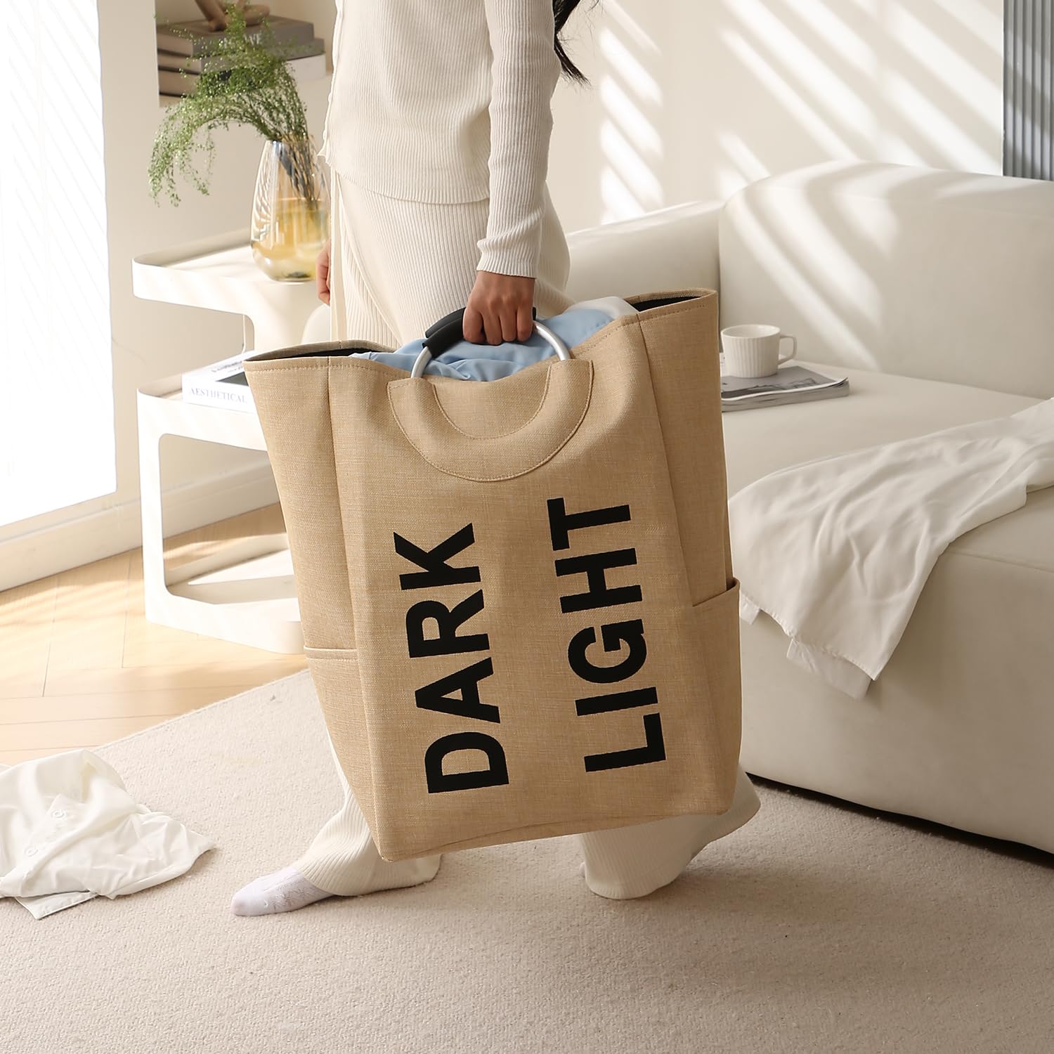 Folding Laundry Bag for Clothes Hamper Basket, Collapsible Storage Basket, Beige