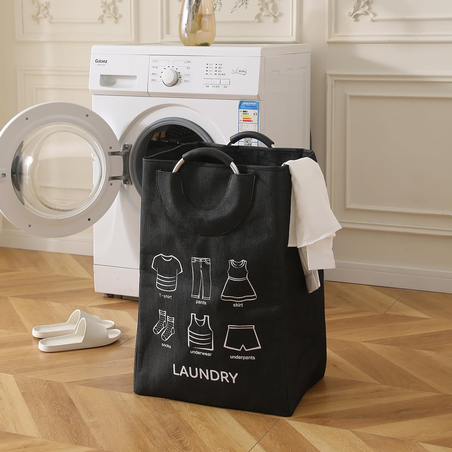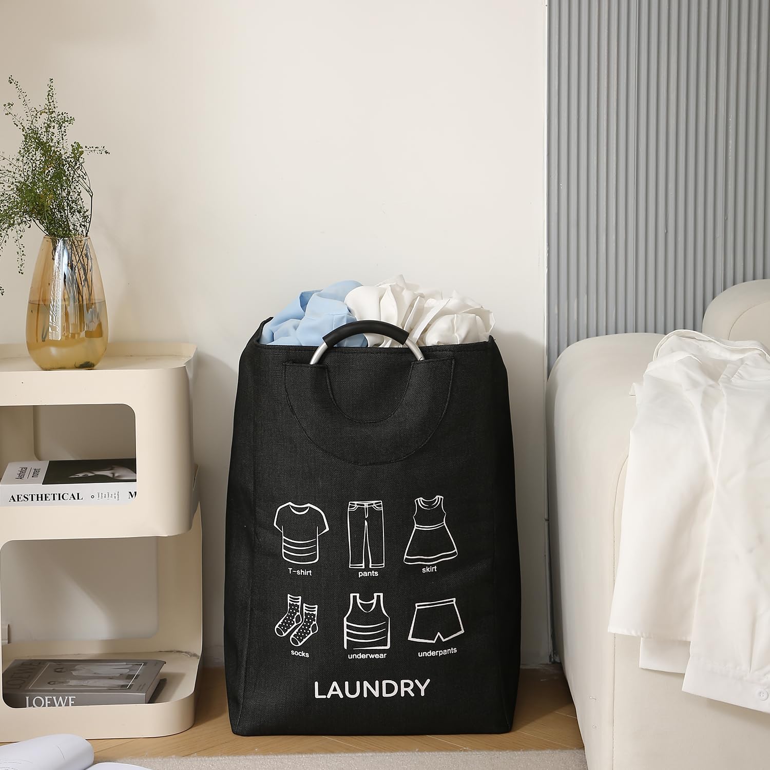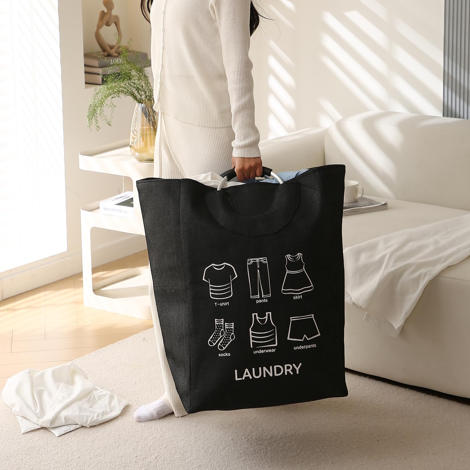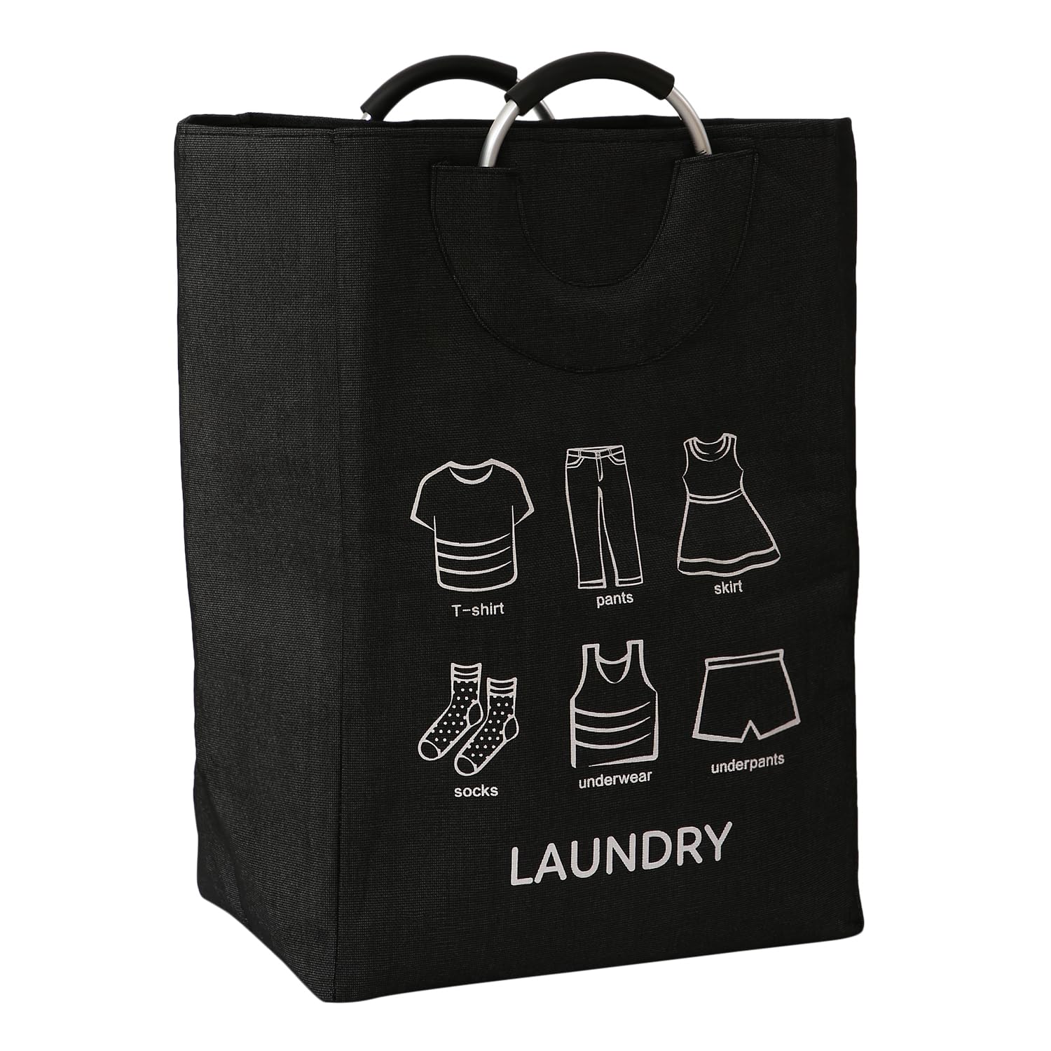 Folding Laundry Bag for Clothes Hamper Basket, Collapsible Storage Basket, Black