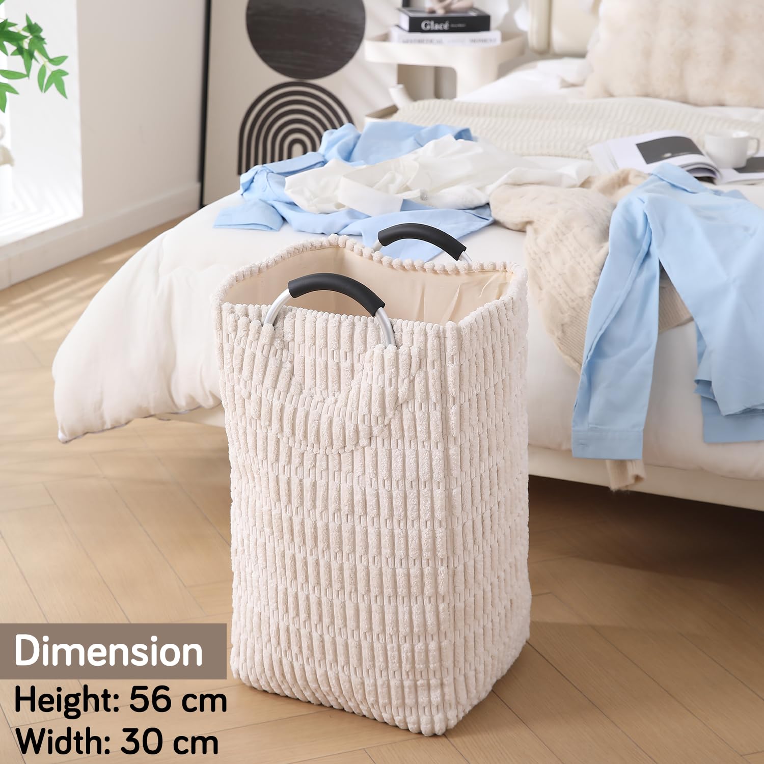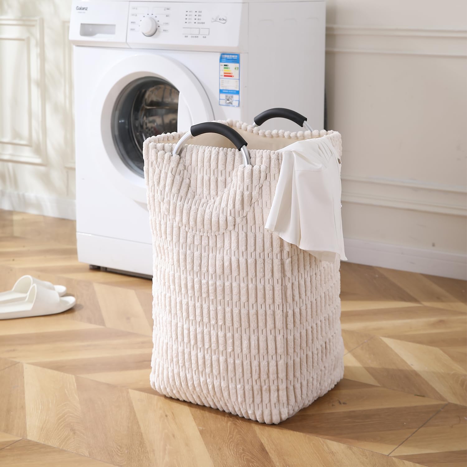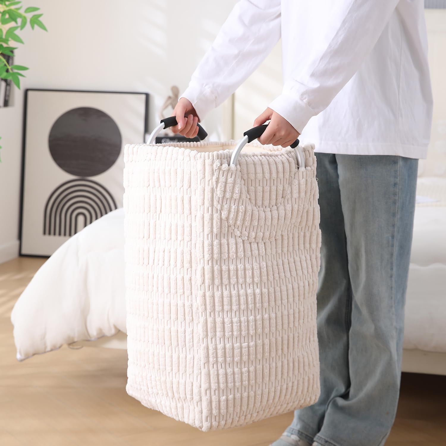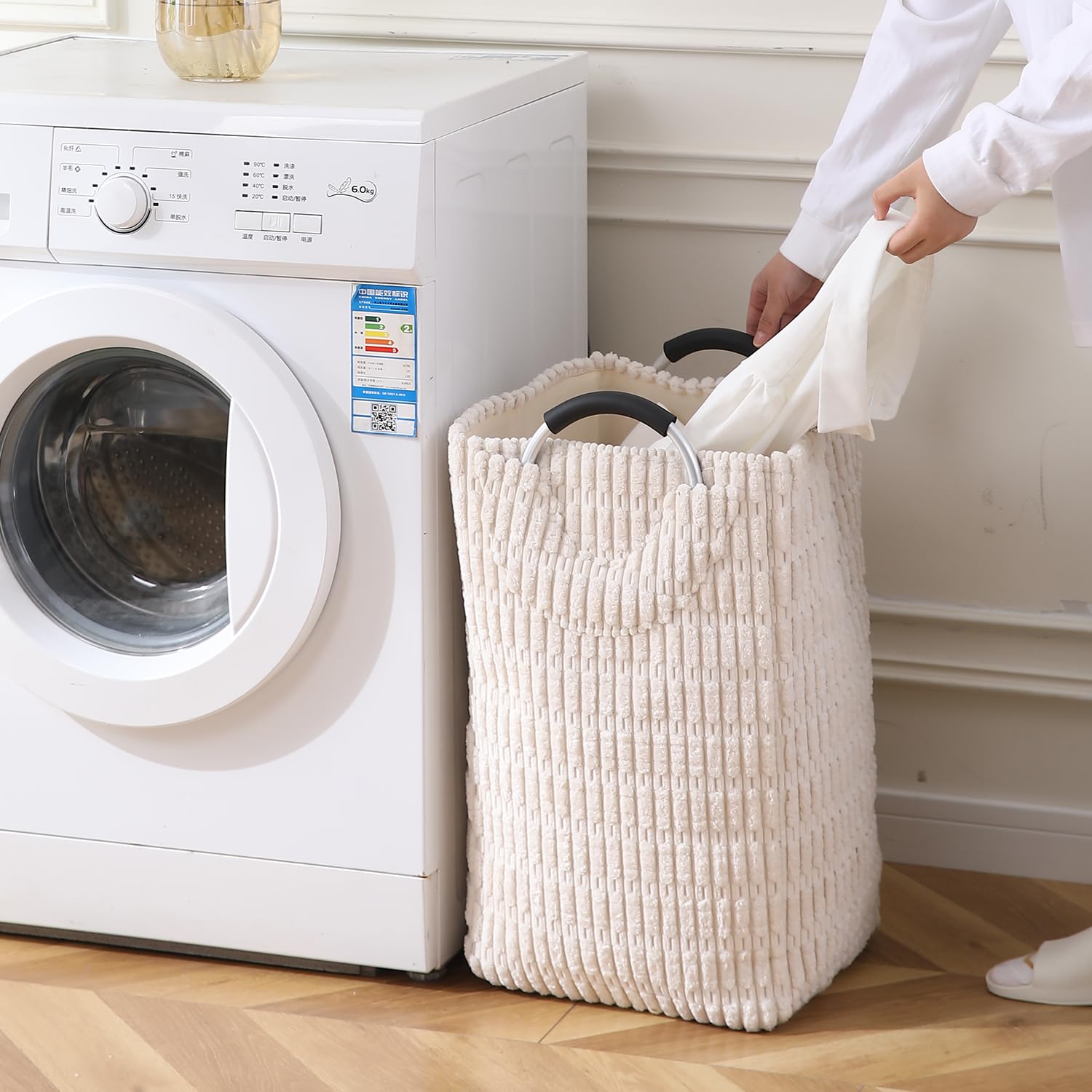 Folding Laundry Bag for Clothes Hamper Basket, Collapsible Storage Basket, Cream