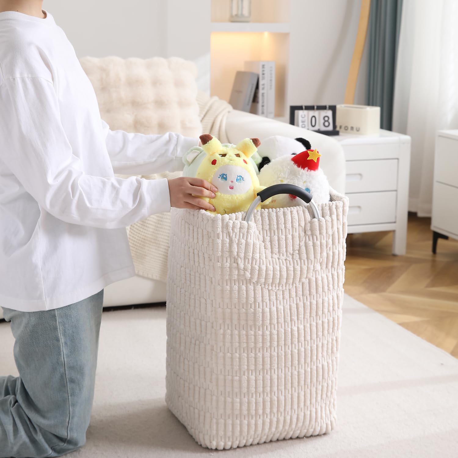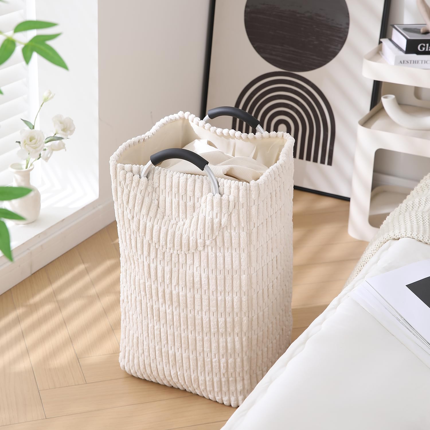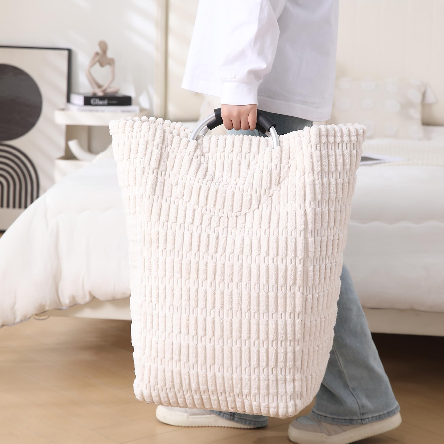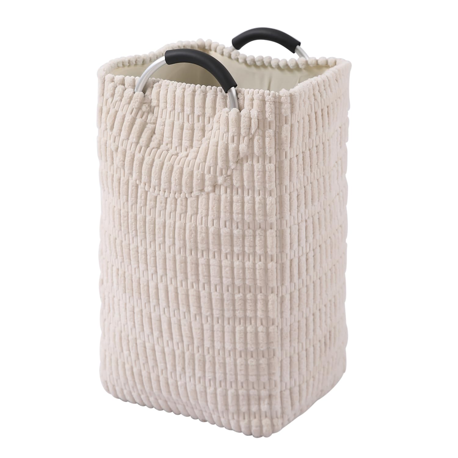Folding Laundry Bag for Clothes Hamper Basket, Collapsible Storage Basket, Cream