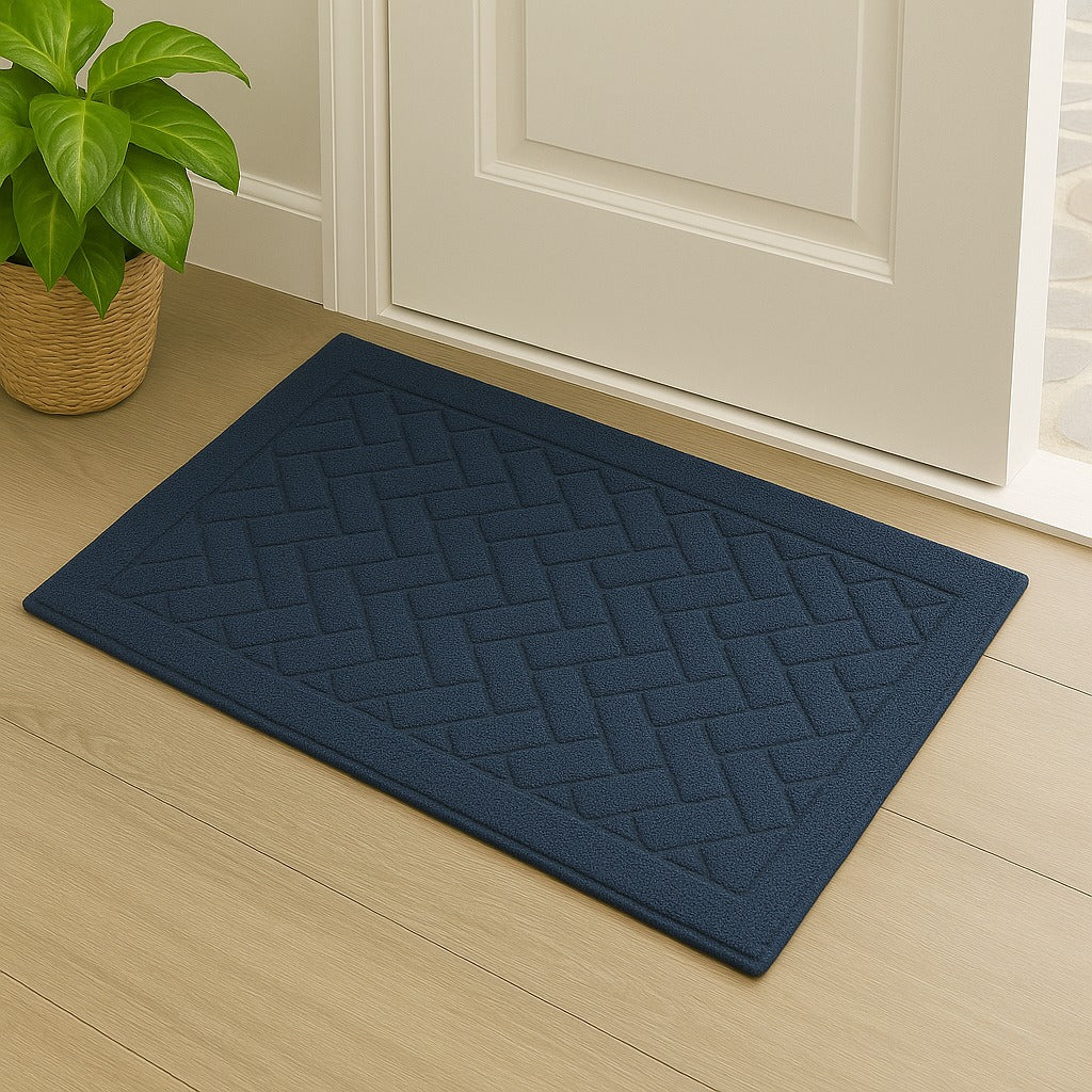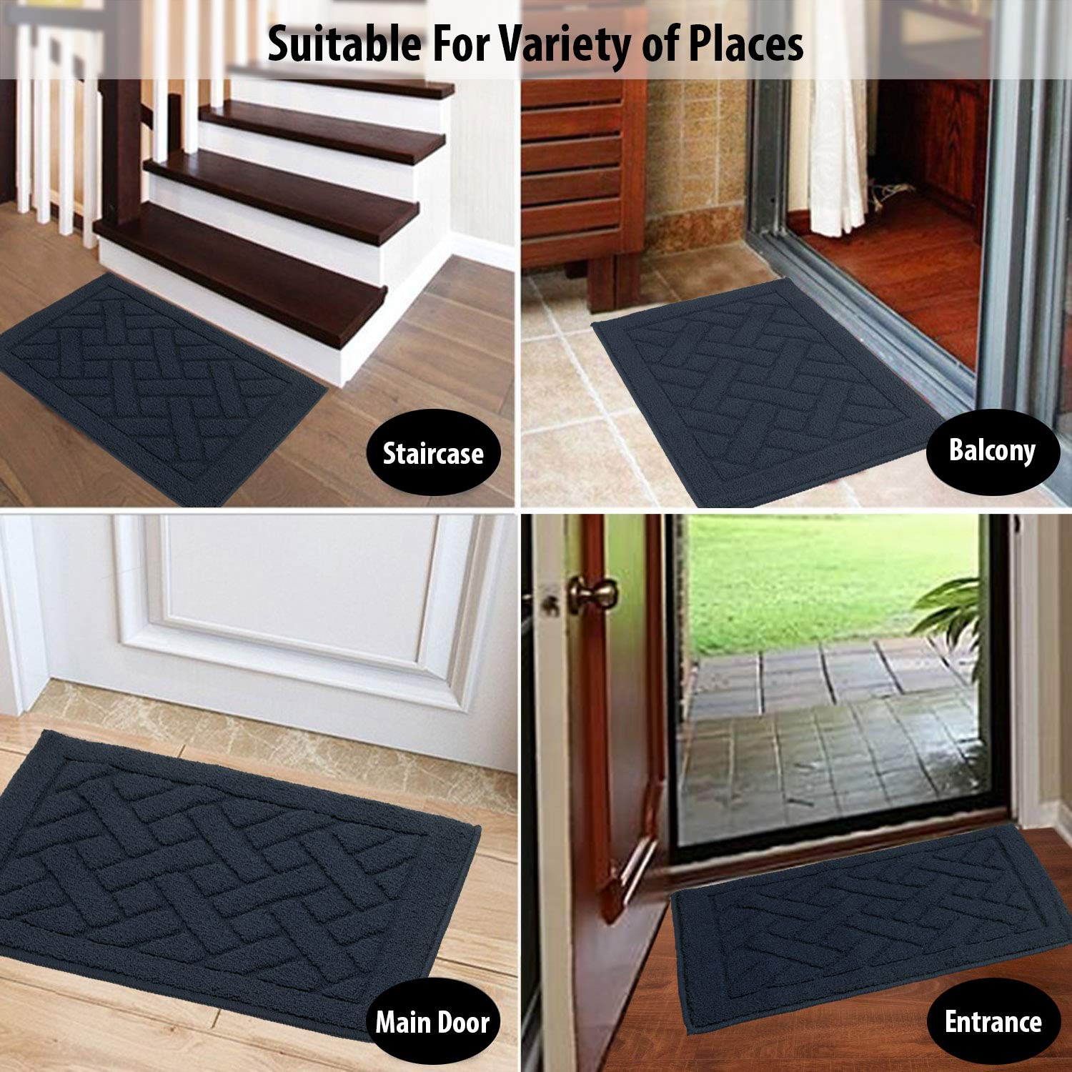 Front Door Inside and Outside Dirt Trapper Mat Polypropylene Fiber Anti-Slip Rubber Back Machine Washable Mat, Rectangular - 45 x 70 cm, Blue