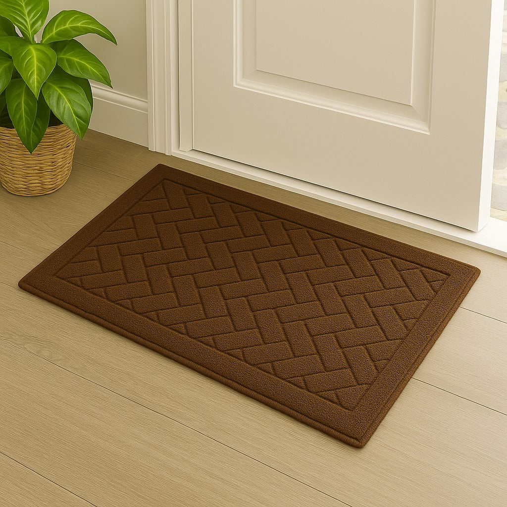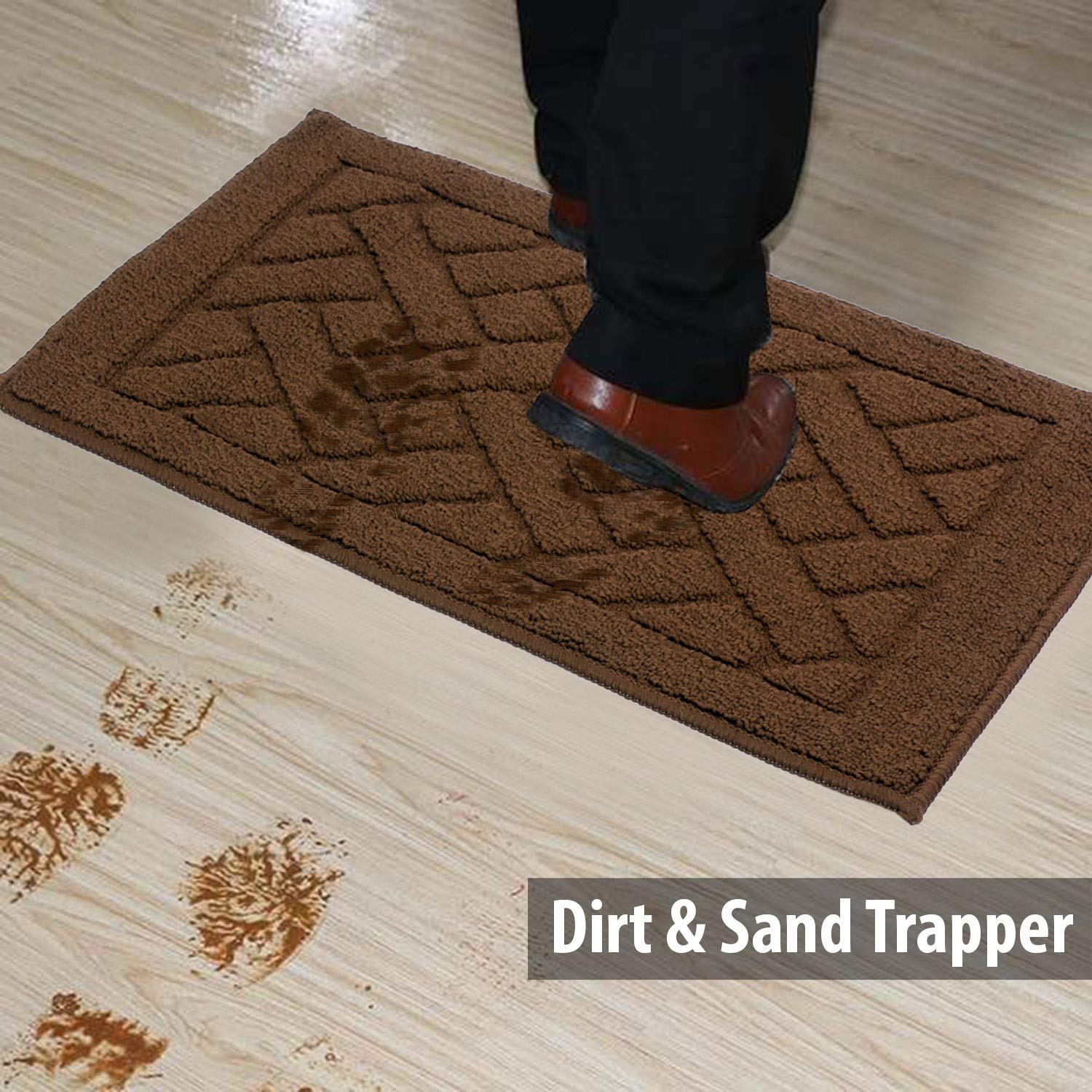 Front Door Inside and Outside Dirt Trapper Mat Polypropylene Fiber Anti-Slip Rubber Back Machine Washable Mat, Rectangular - 45 x 70 cm, Brown