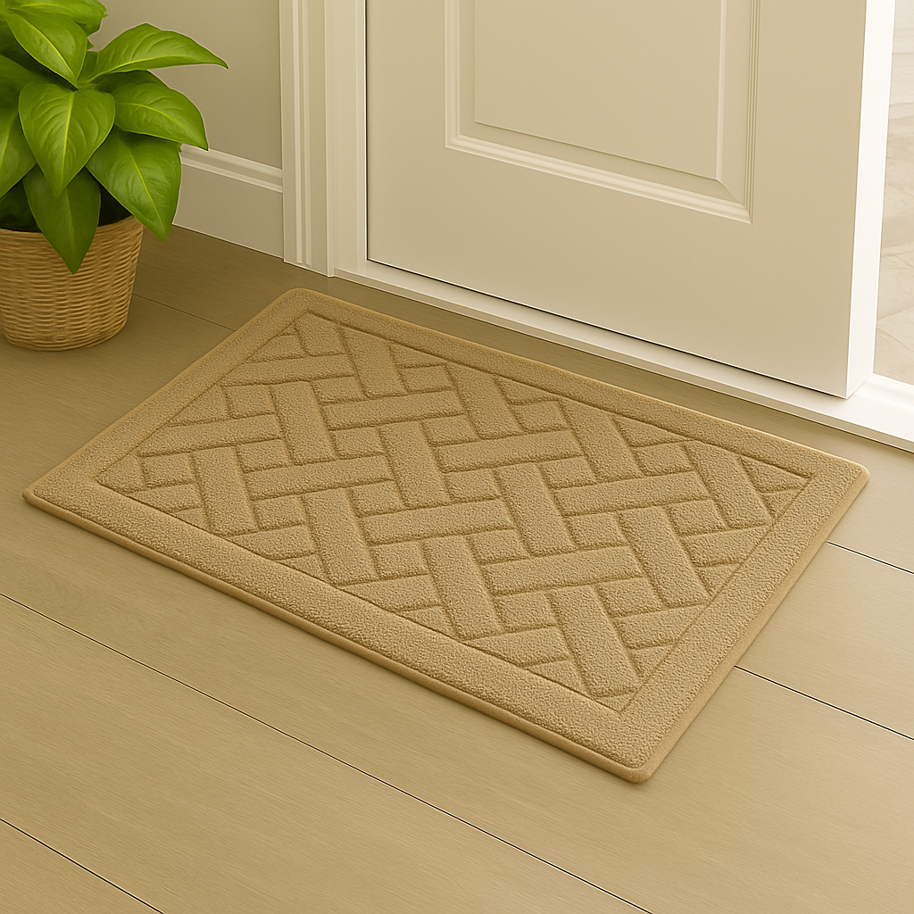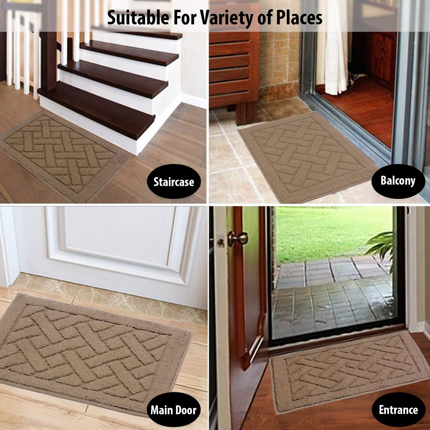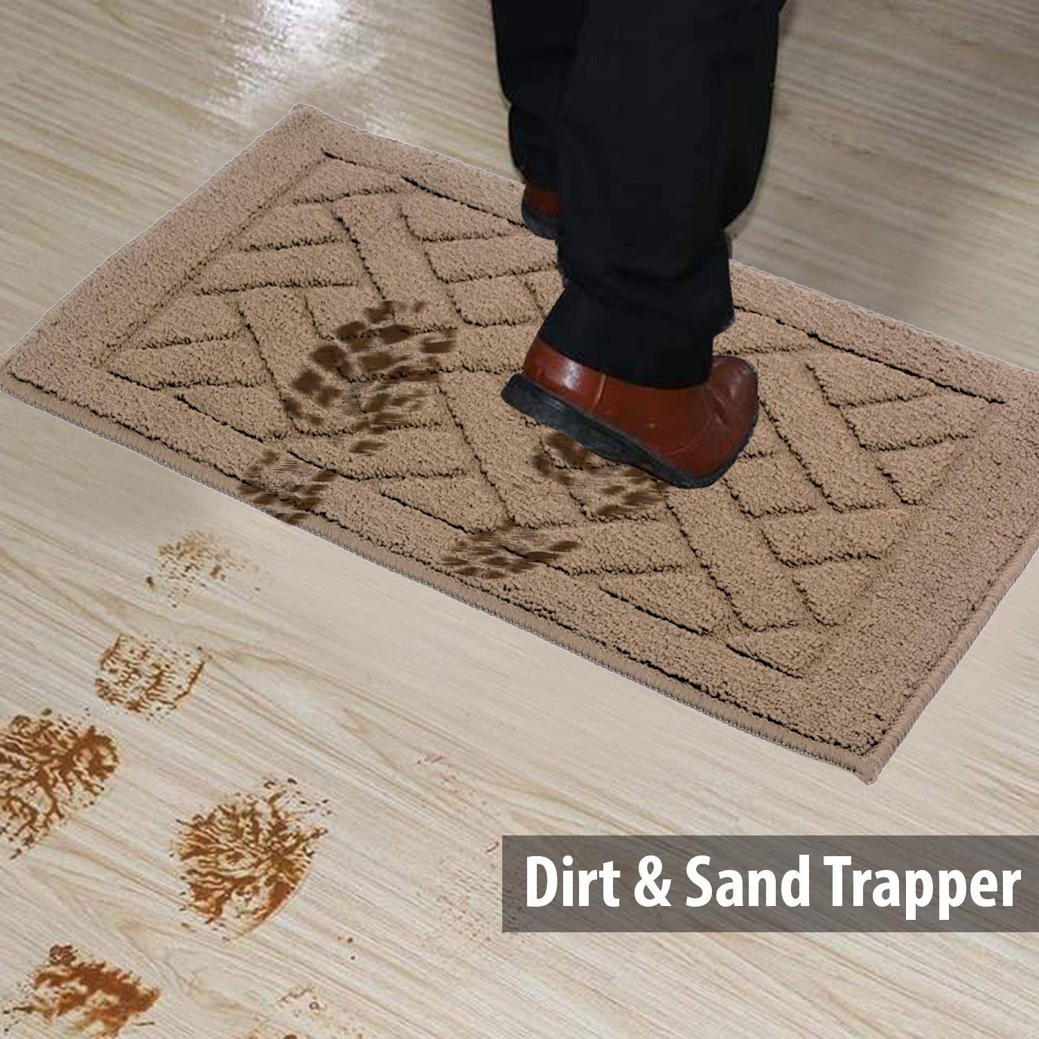 Front Door Inside and Outside Dirt Trapper Mat Polypropylene Fiber Anti-Slip Rubber Back Machine Washable Mat, Rectangular - 45 x 70 cm, Light Brown