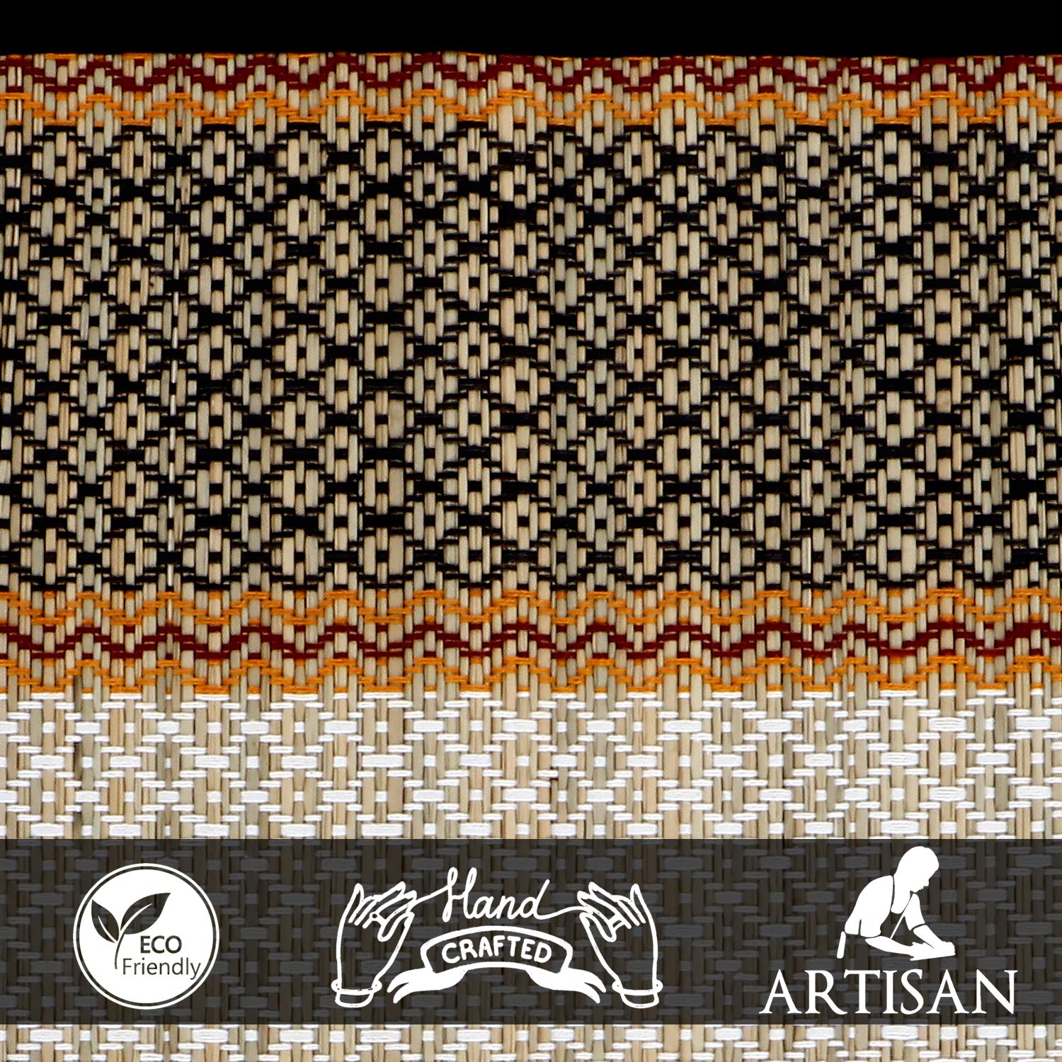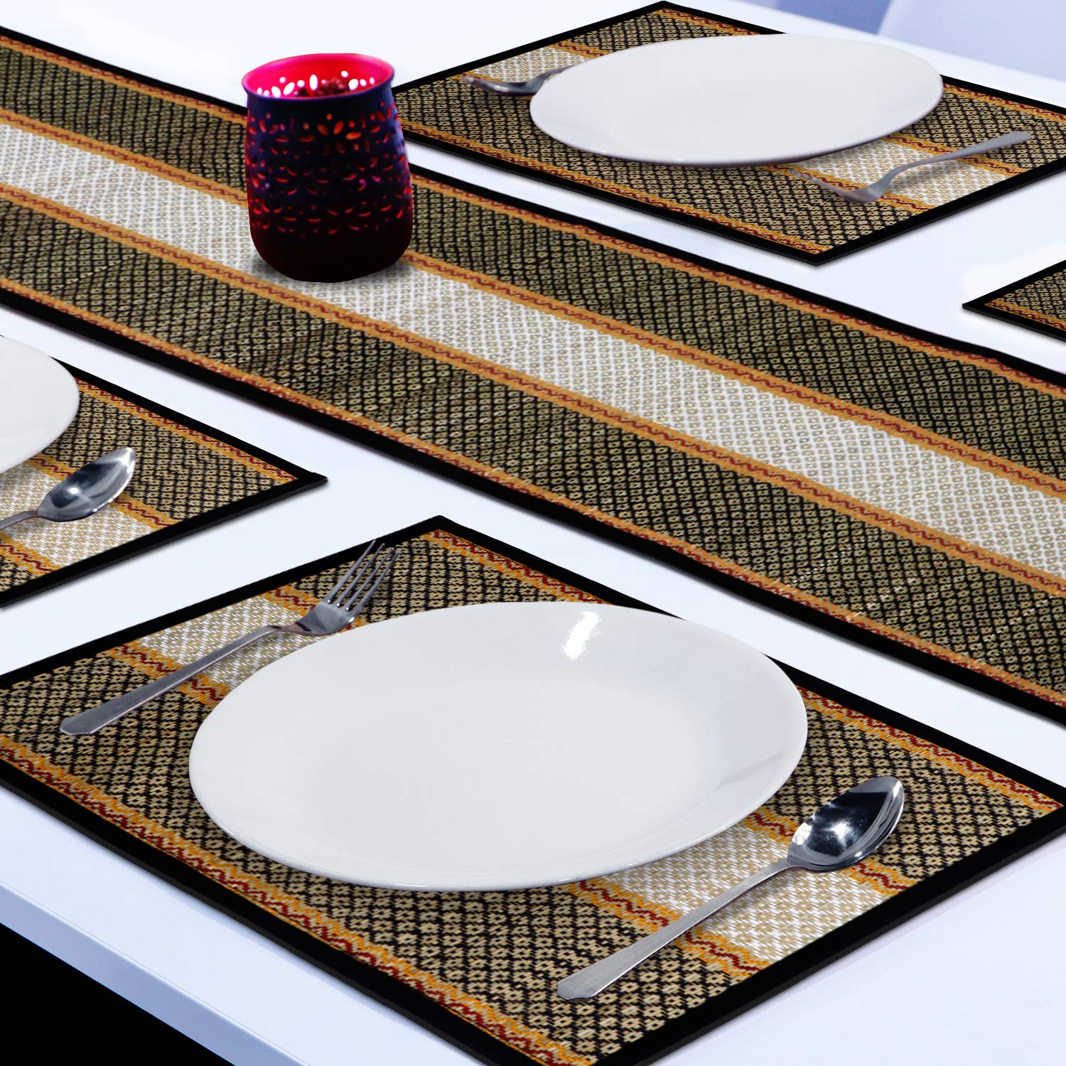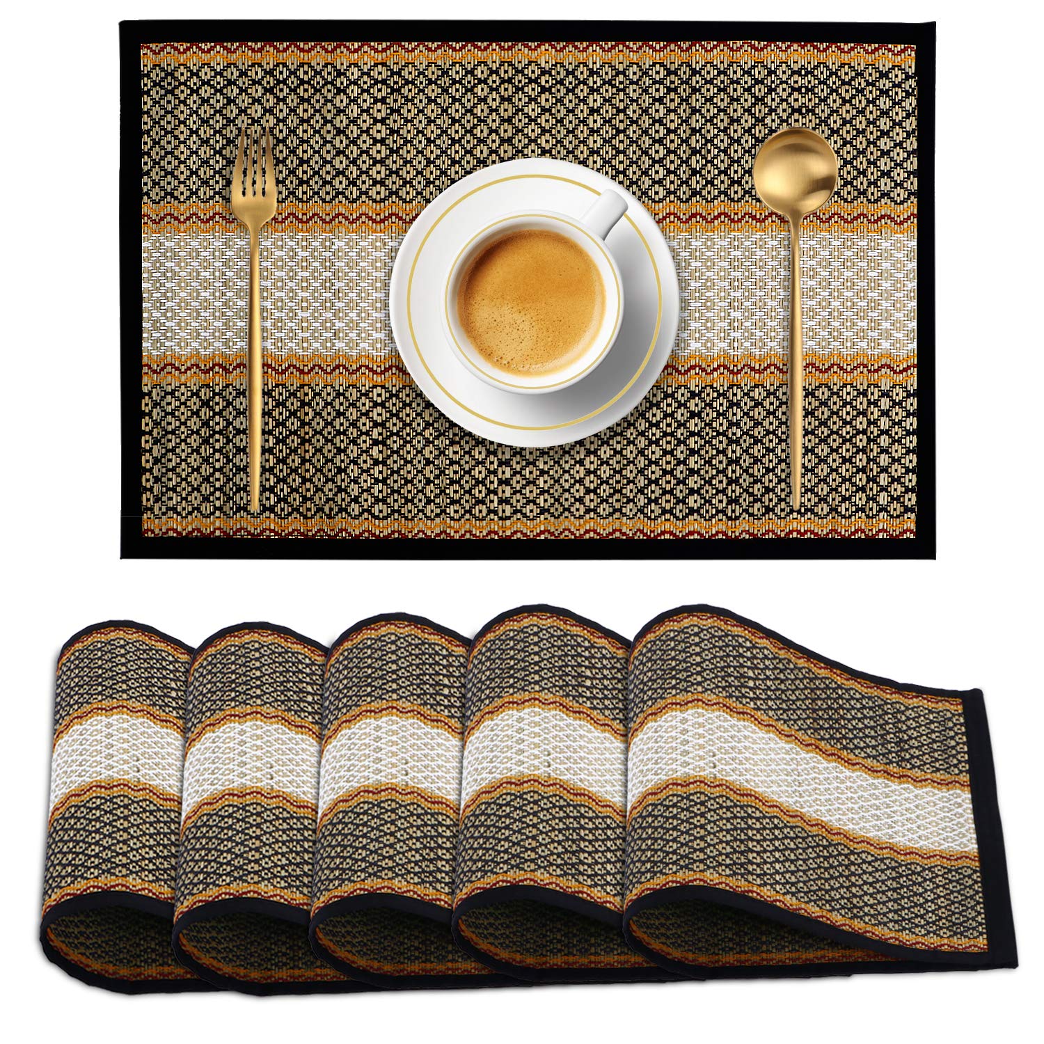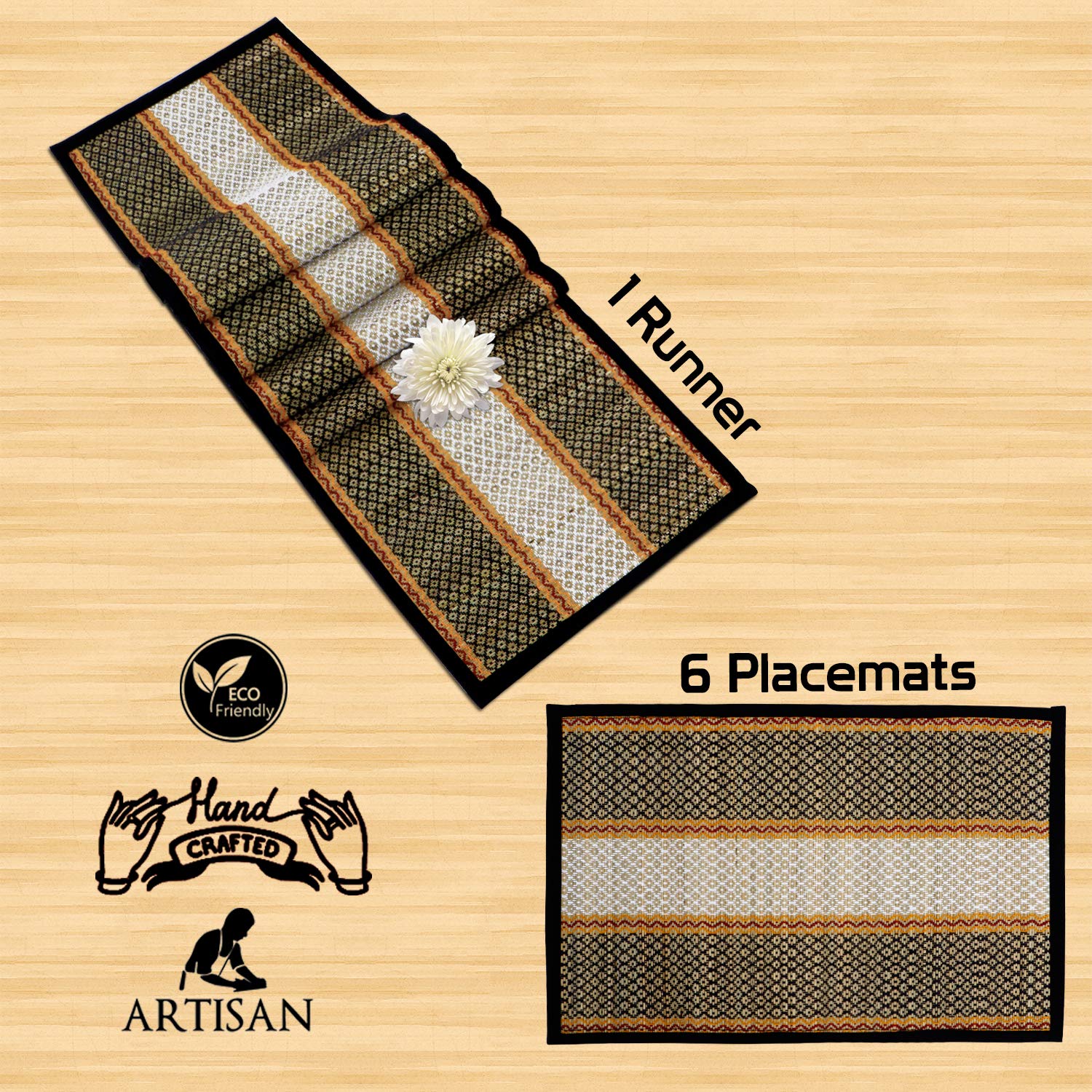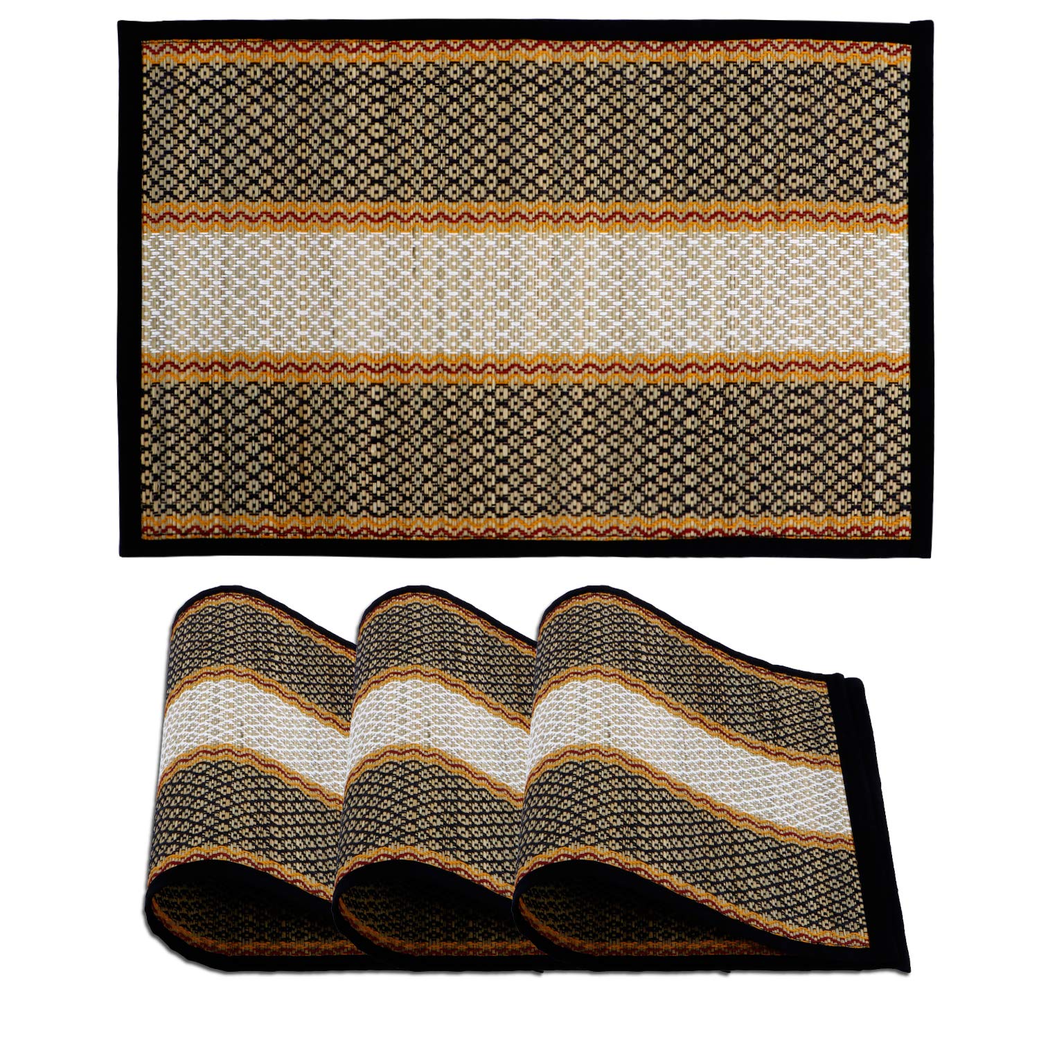 - These dining table mats are made from locally grown soft reed grass (Madurkathi) from West Bengal and woven on a bamboo loom. Cloth piping ensures zero splits on edges