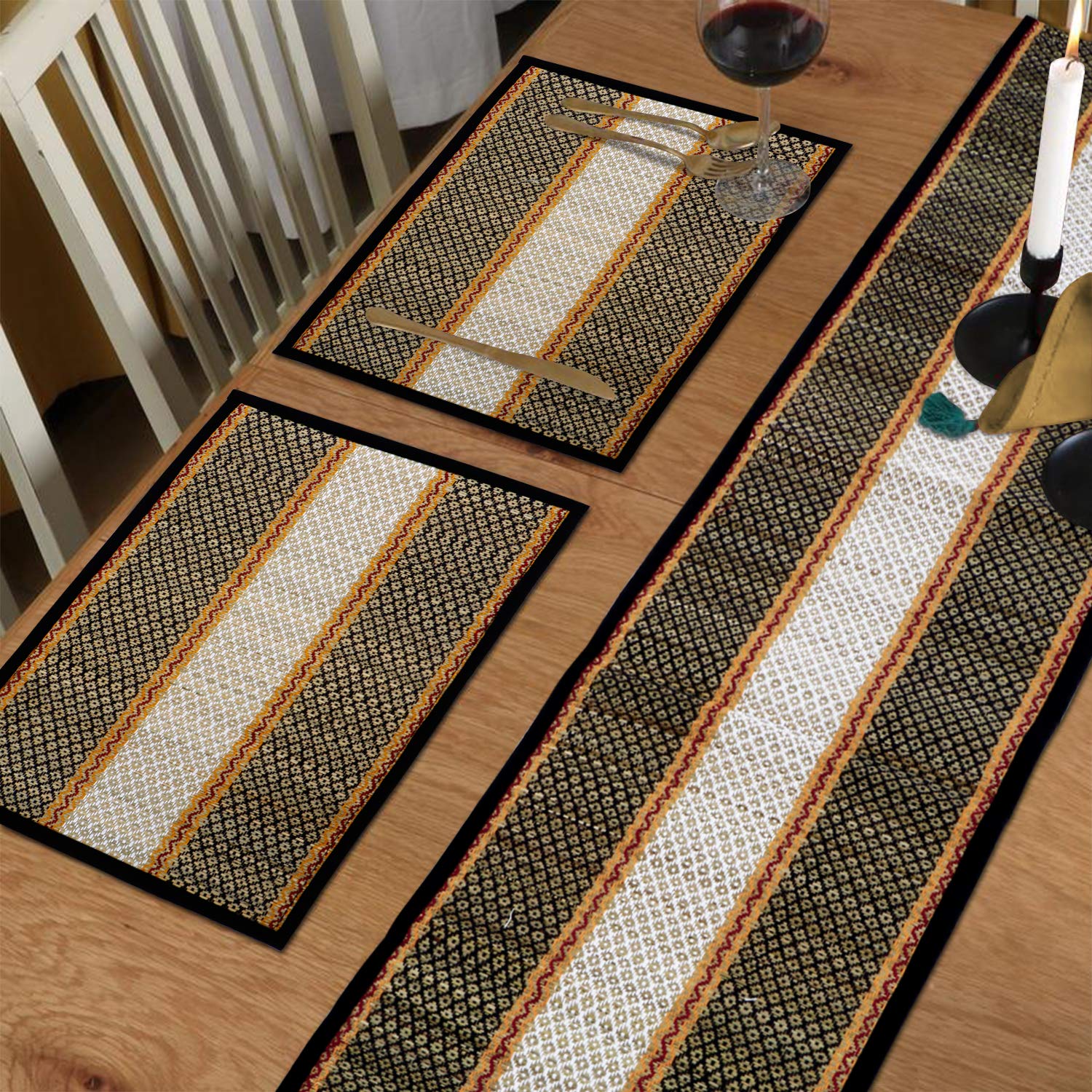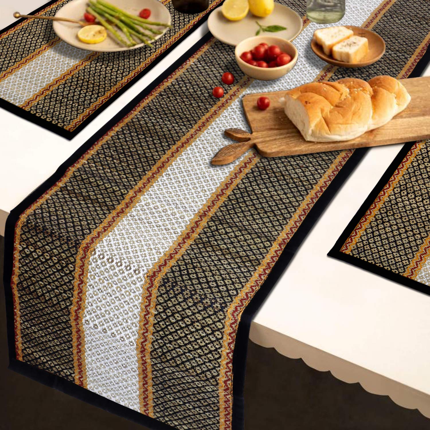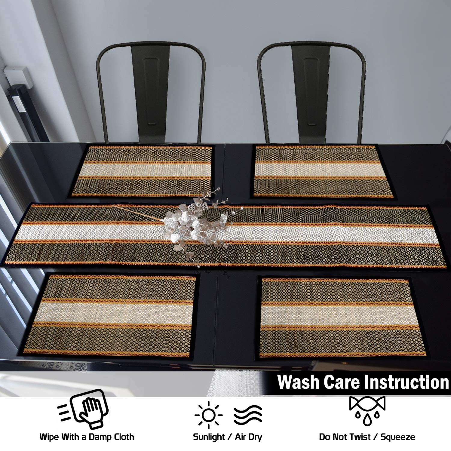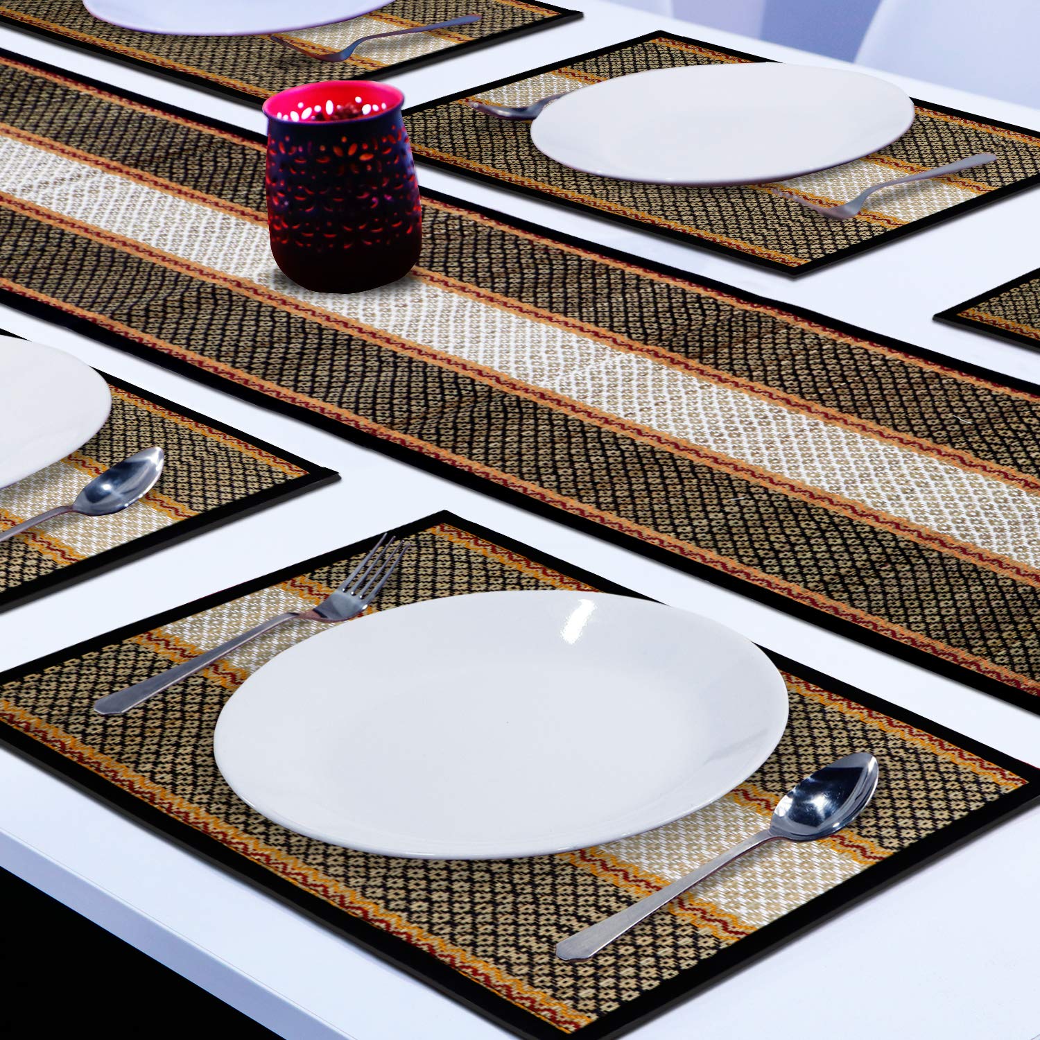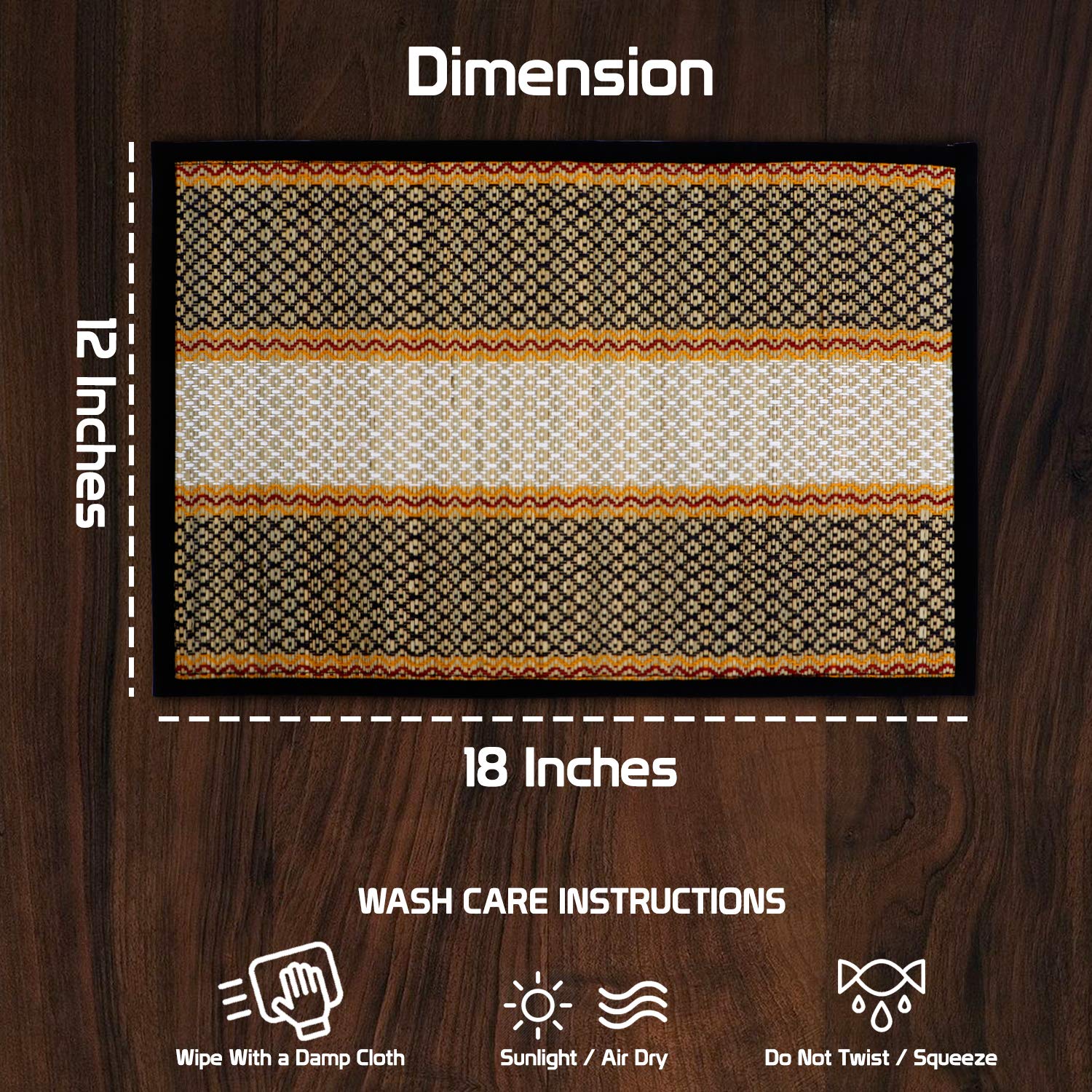 - These dining table mats are made from locally grown soft reed grass (Madurkathi) from West Bengal and woven on a bamboo loom. Cloth piping ensures zero splits on edges