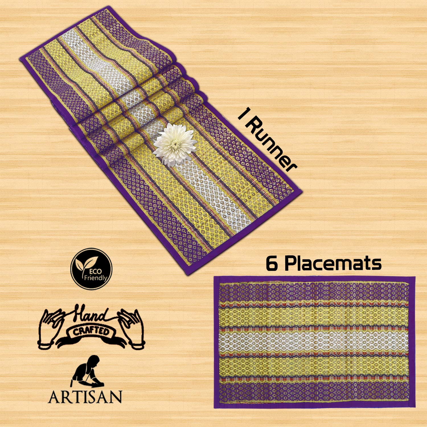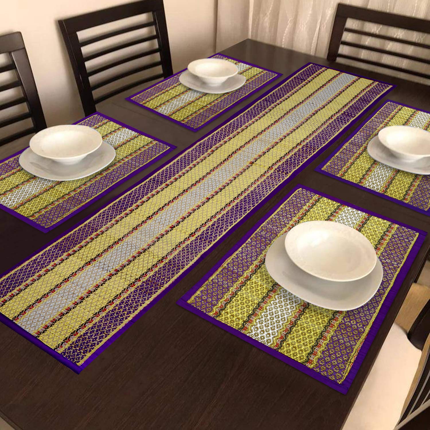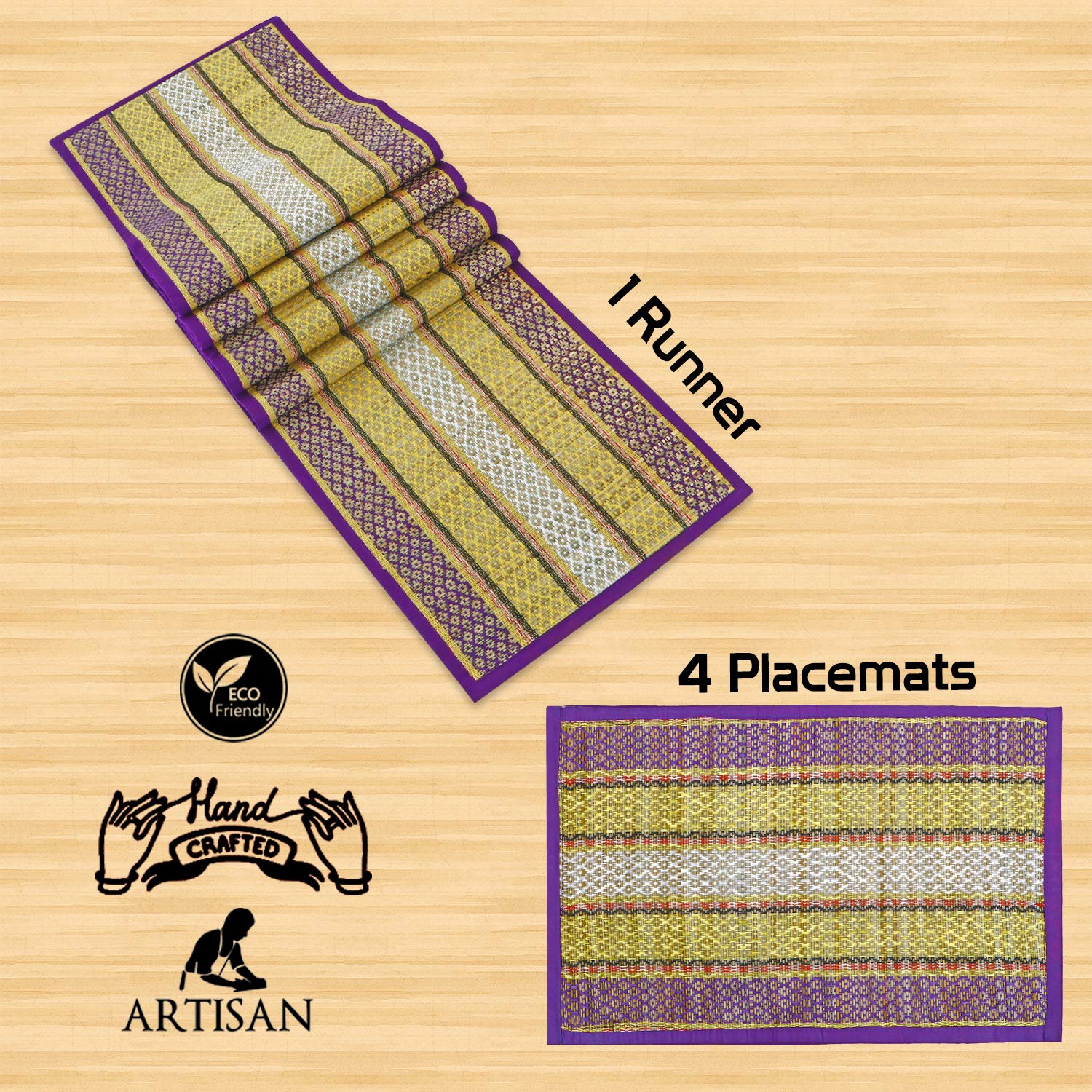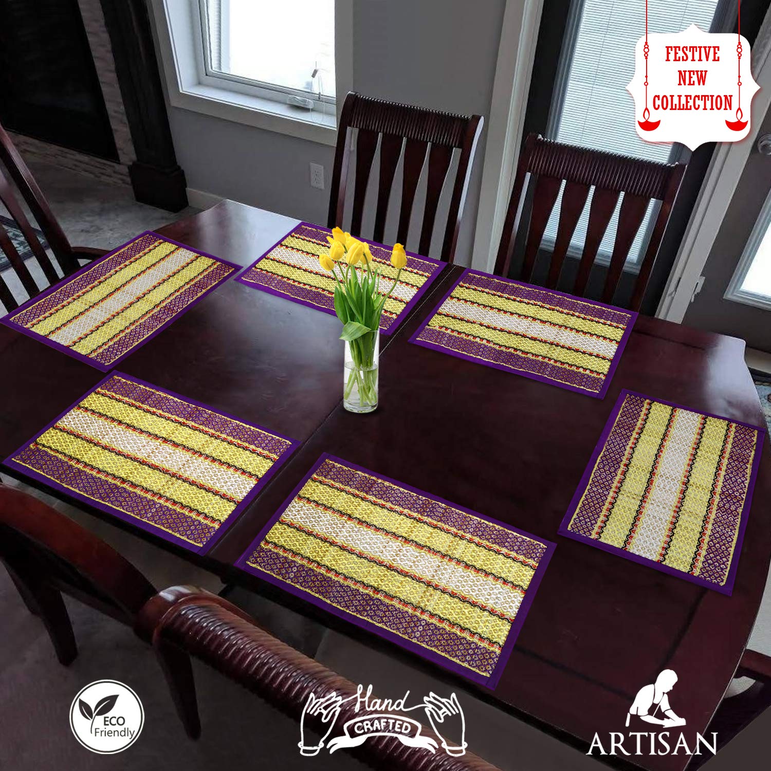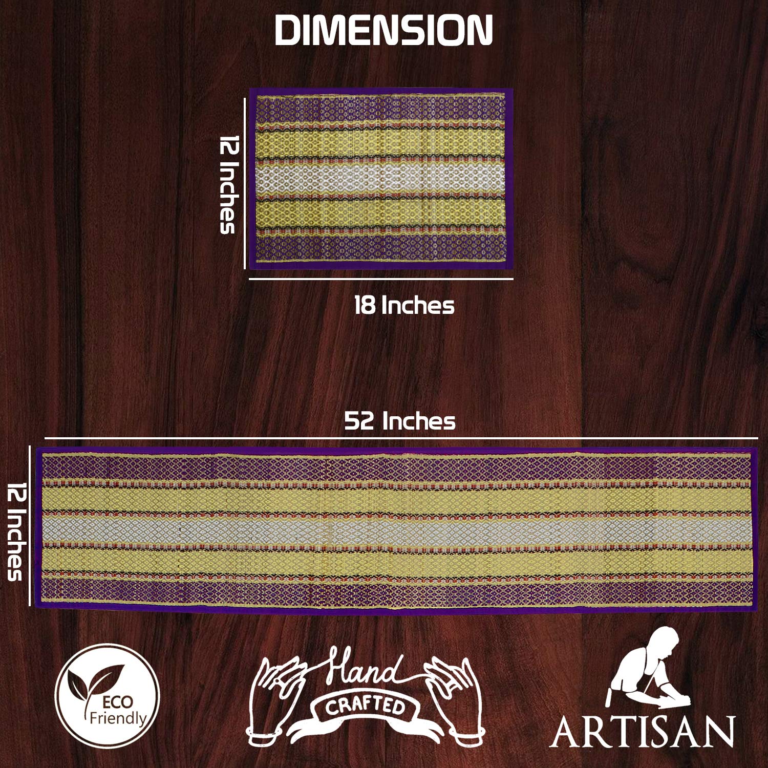 - These dining table mats are made from locally grown soft reed grass (Madurkathi) from West Bengal and woven on a bamboo loom. Cloth piping ensures zero splits on edges