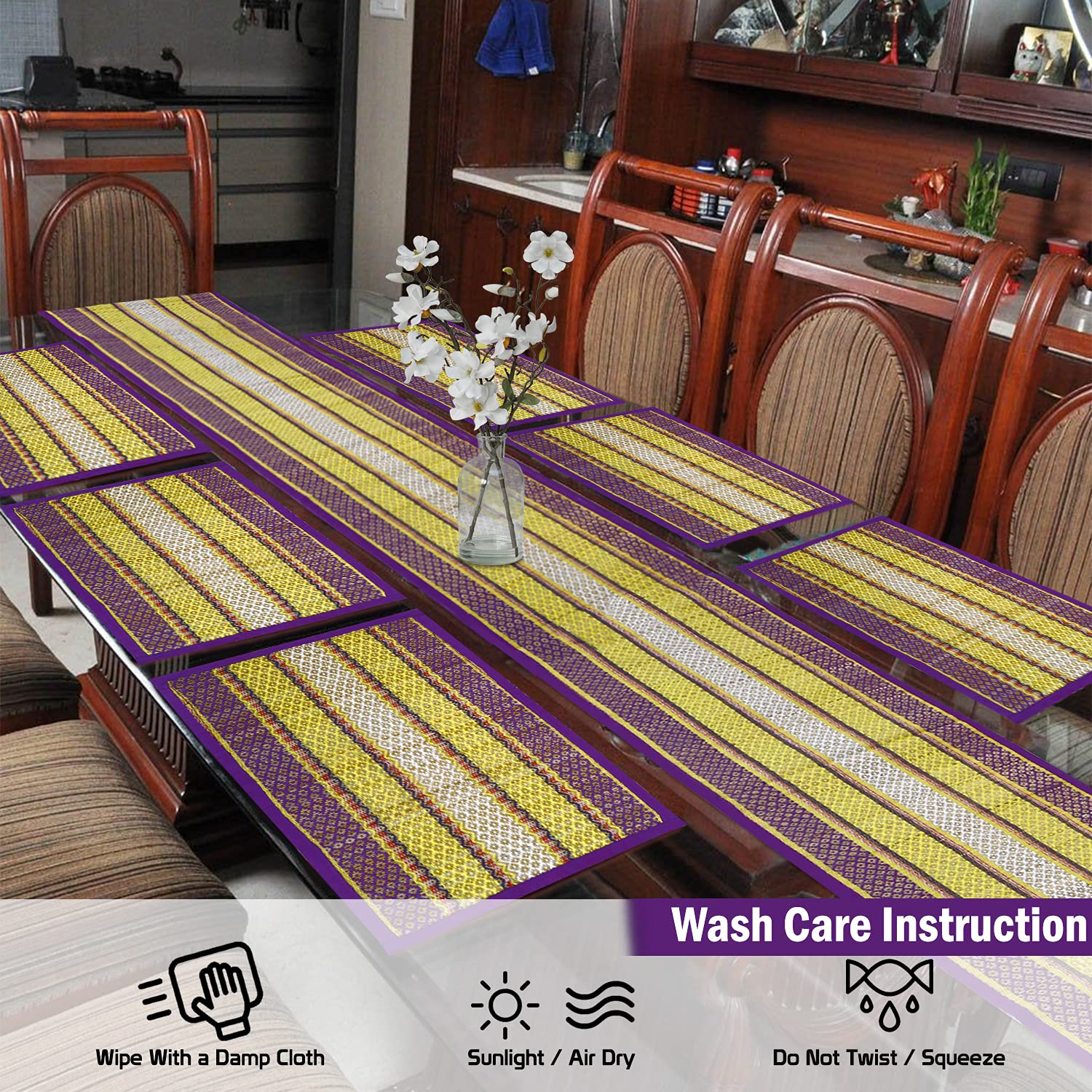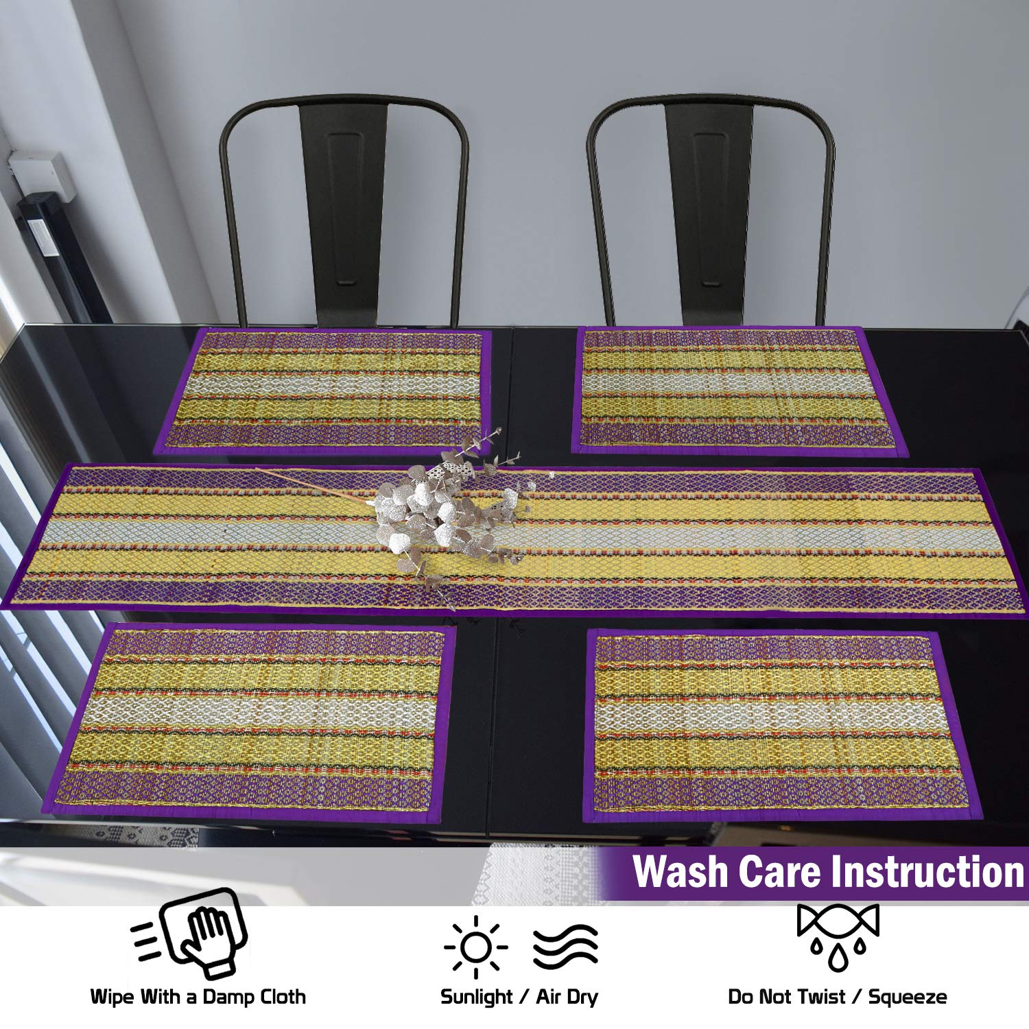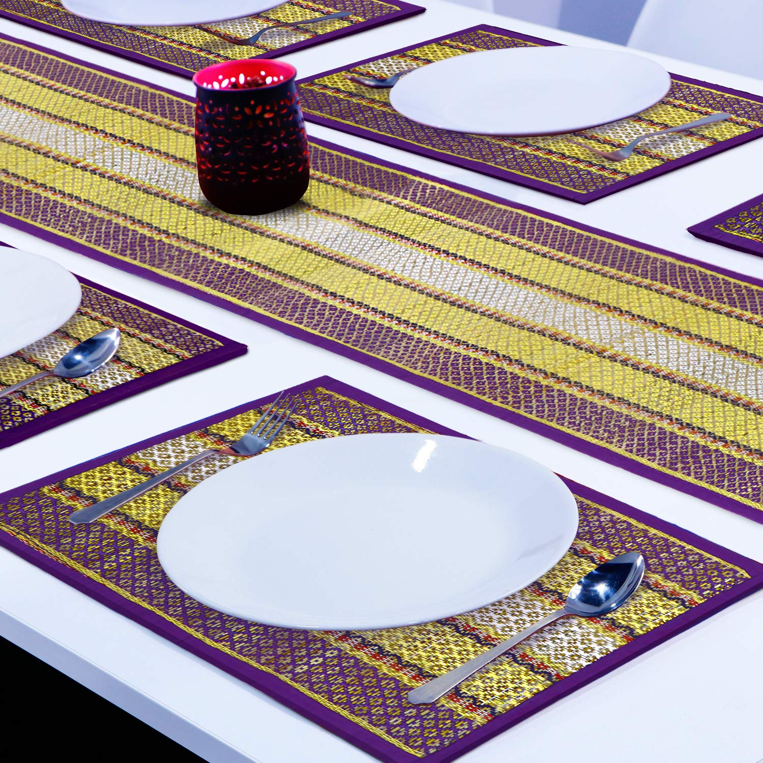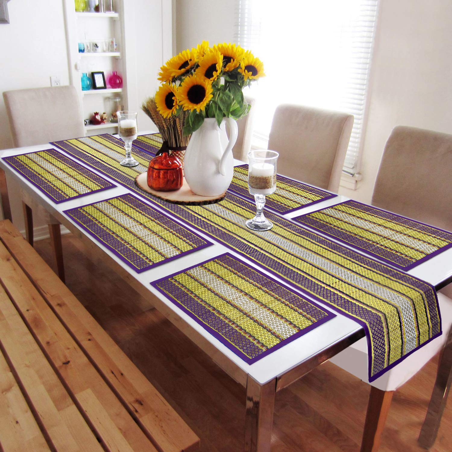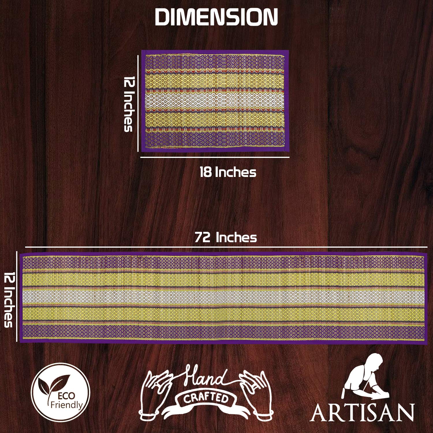 - These dining table mats are made from locally grown soft reed grass (Madurkathi) from West Bengal and woven on a bamboo loom. Cloth piping ensures zero splits on edges