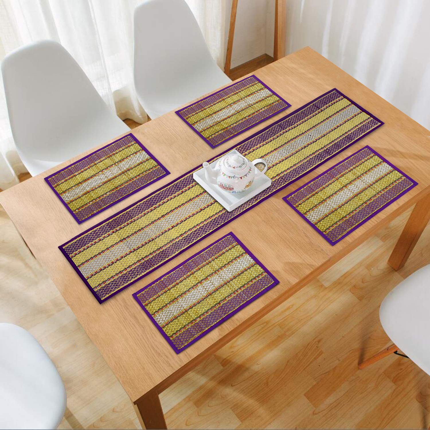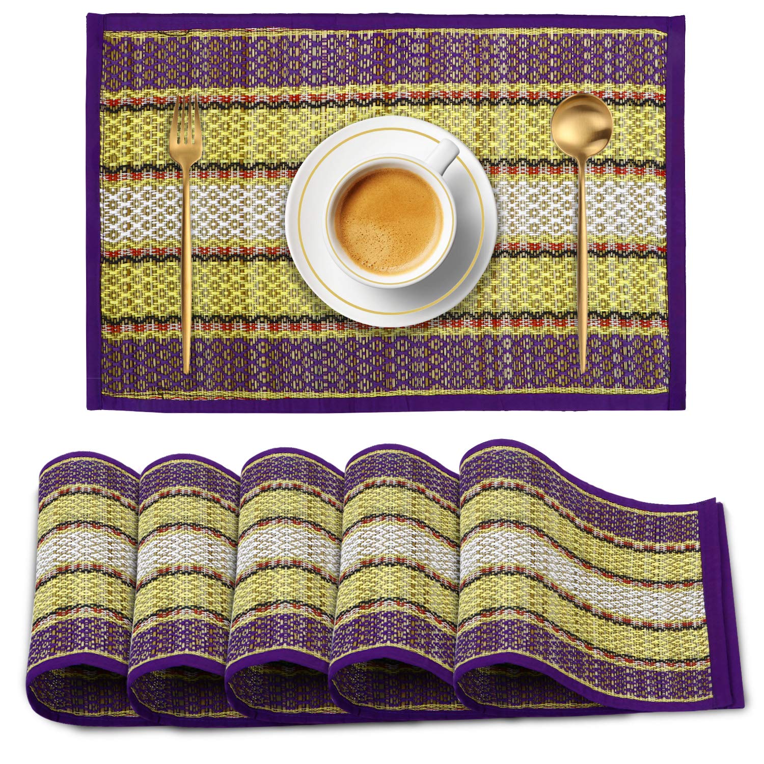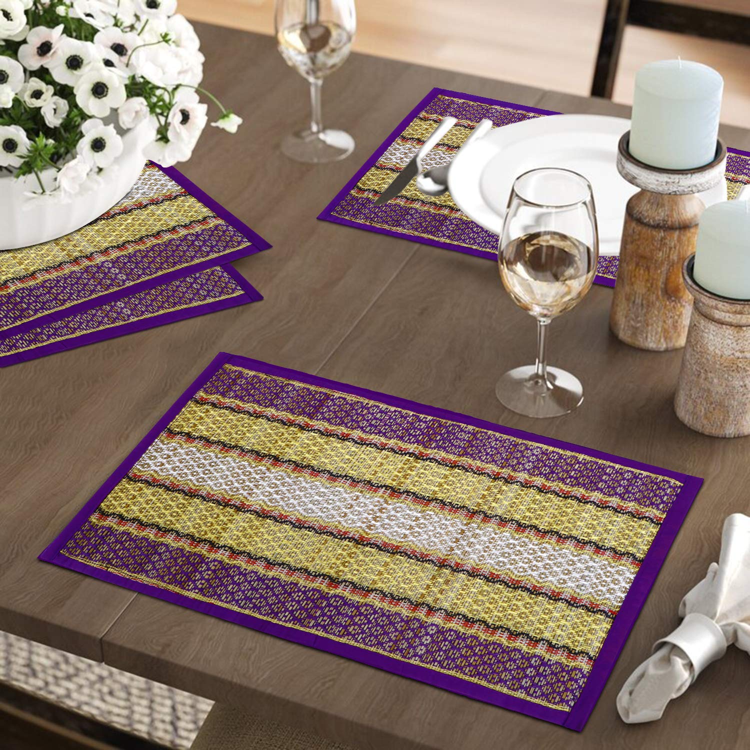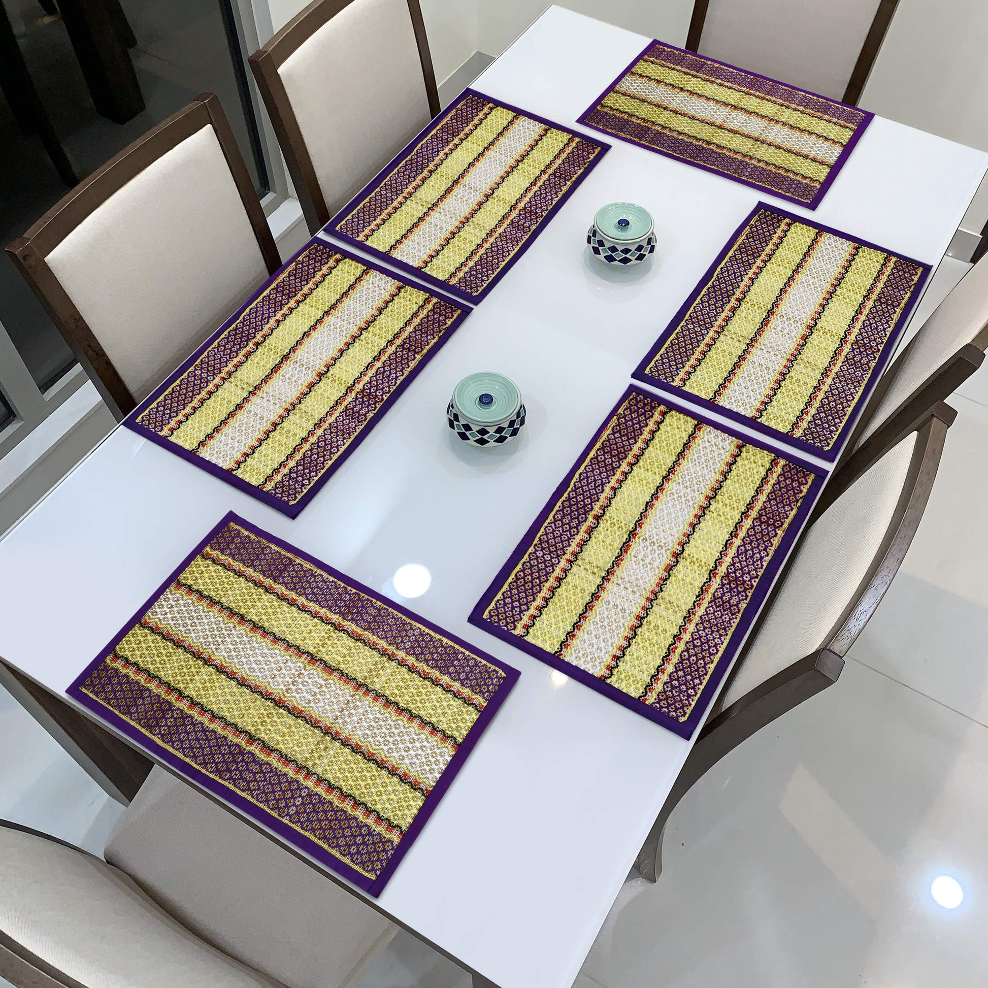 Handmade Madurkathi River Grass Dining Table Mats, Purple