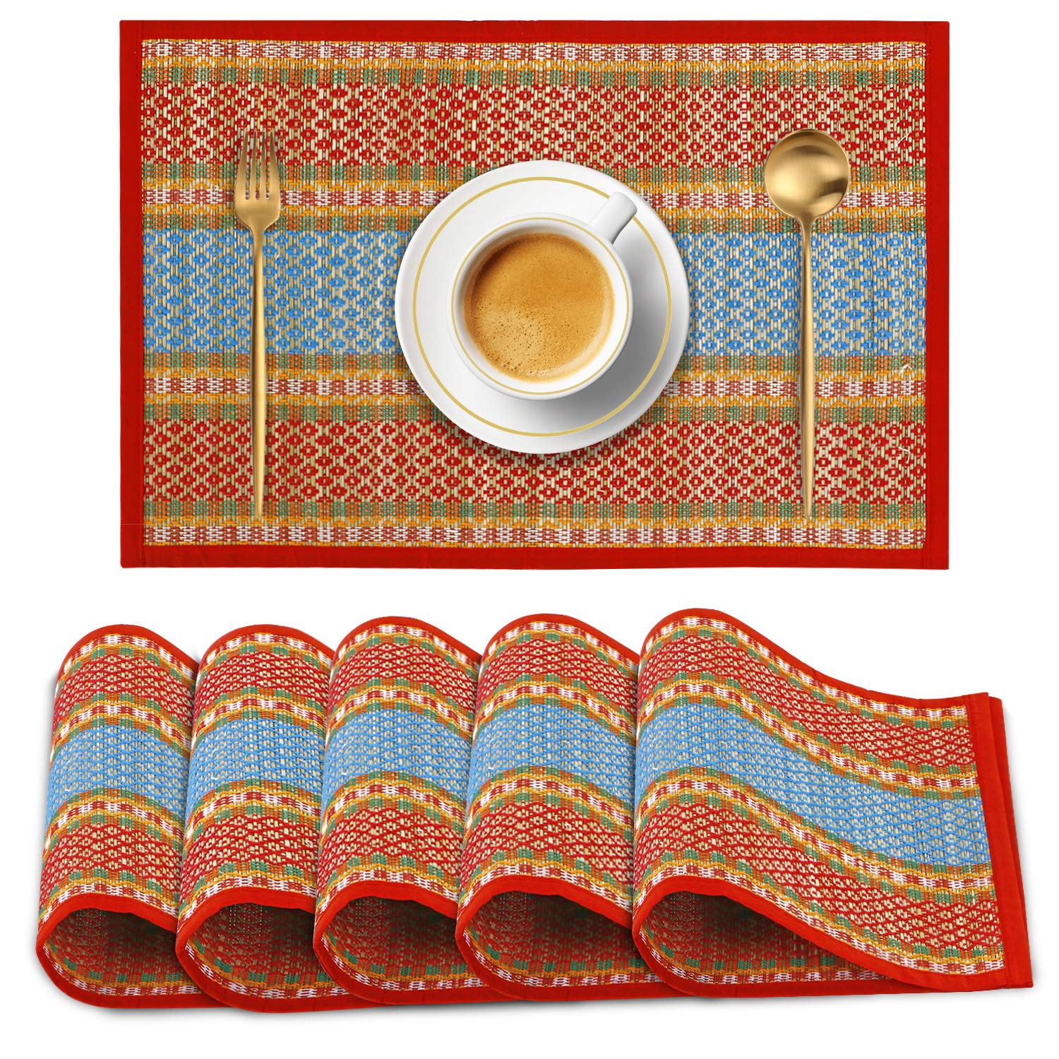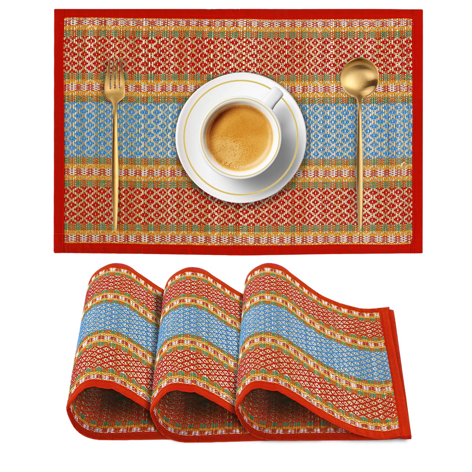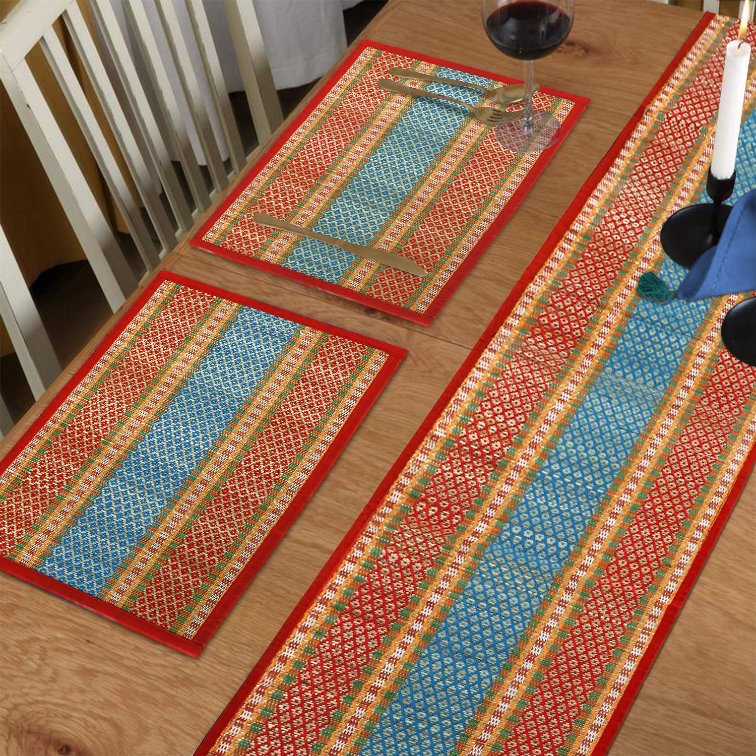 - These dining table mats are made from locally grown soft reed grass (Madurkathi) from West Bengal and woven on a bamboo loom. Cloth piping ensures zero splits on edges