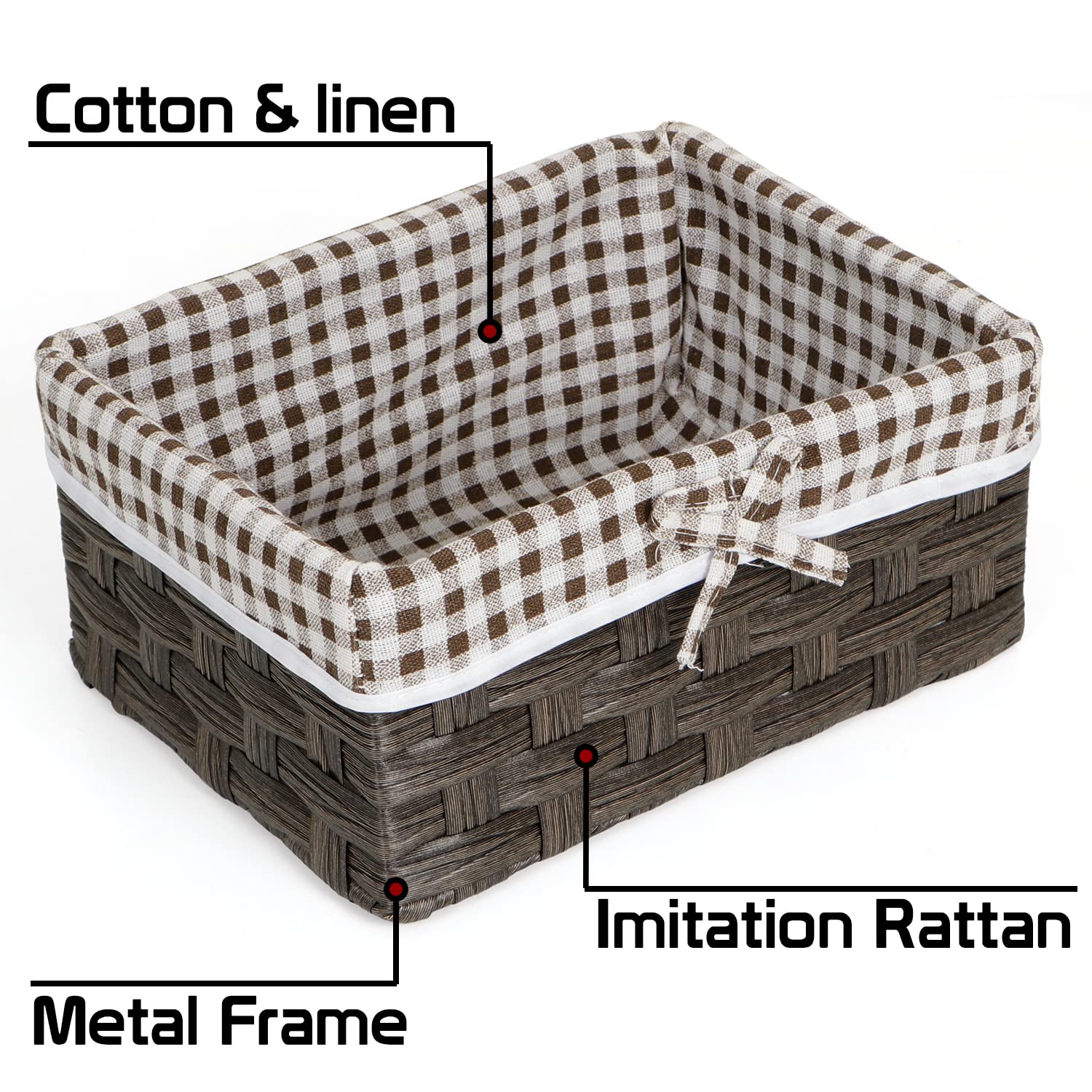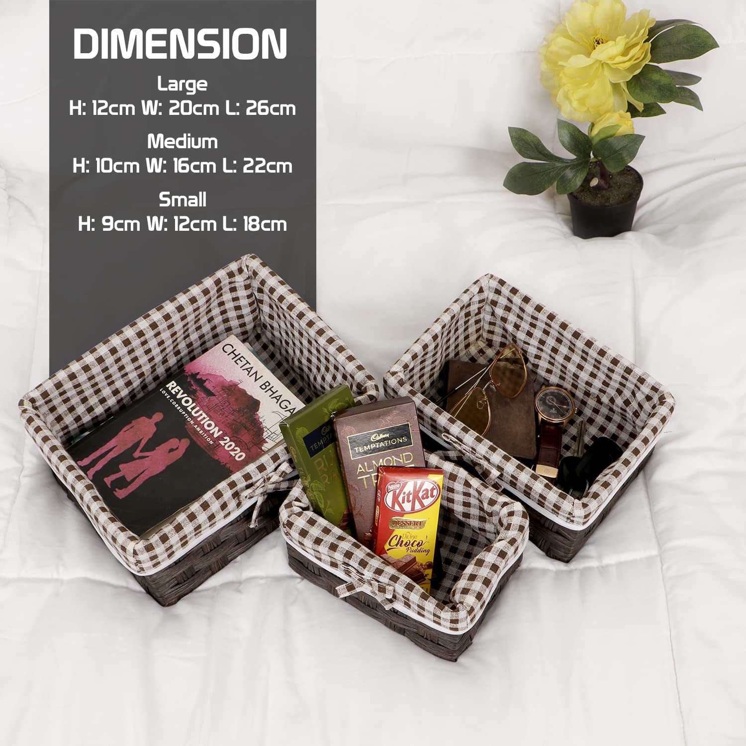 Handwoven Imitation Rattan Wicker Rectangular Basket For Home, Office, Wardrobe. Pack Of 3, Copper Brown