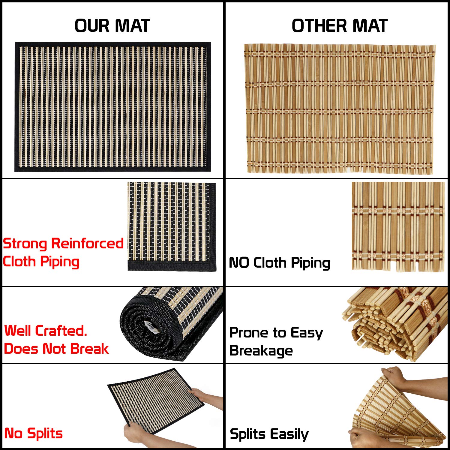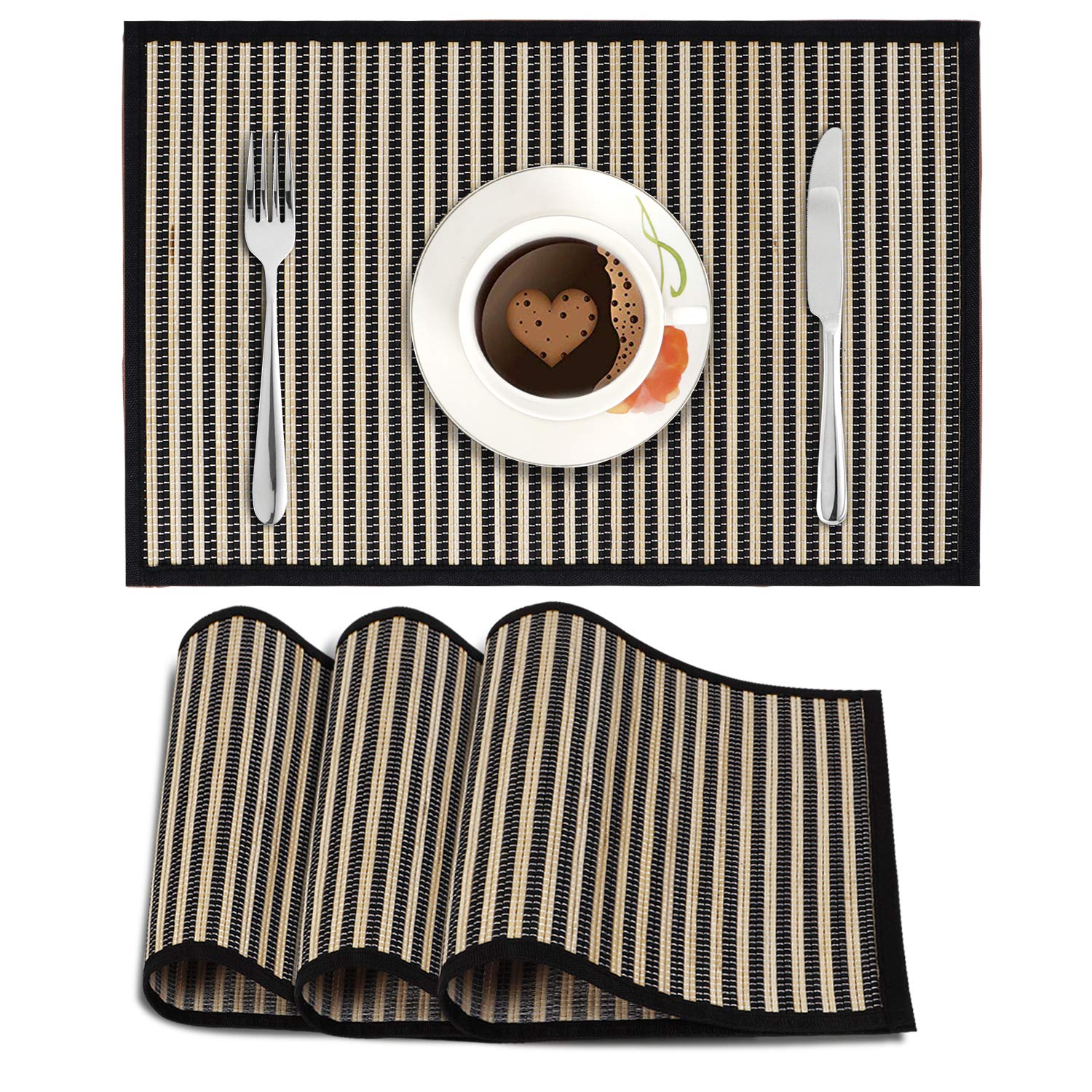 Heat Resistant Bamboo Dinner Mats, Black