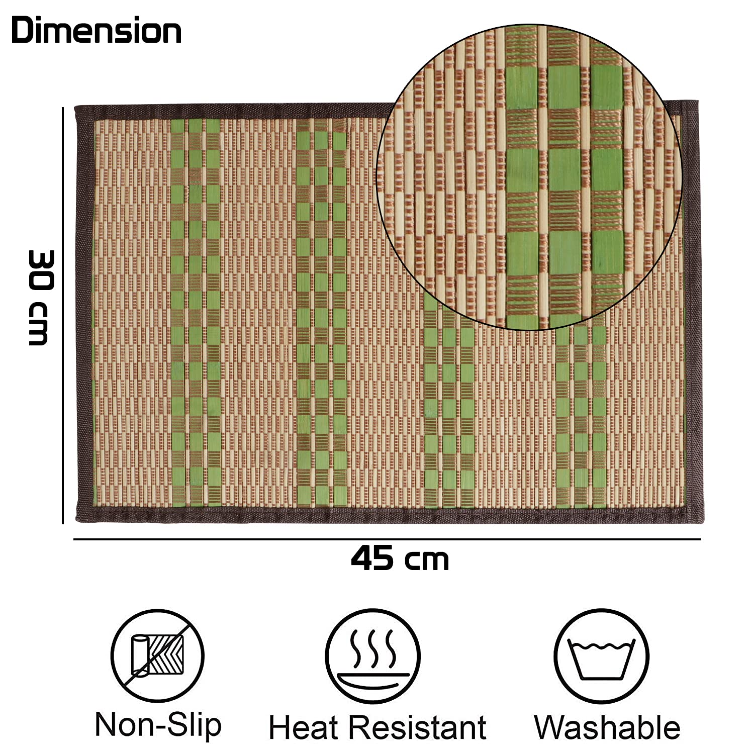 Heat Resistant Bamboo Dinner Mats, Green