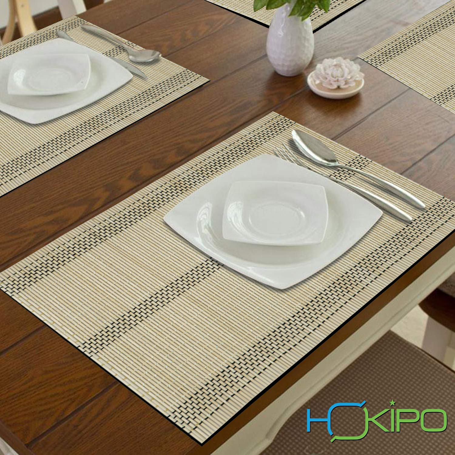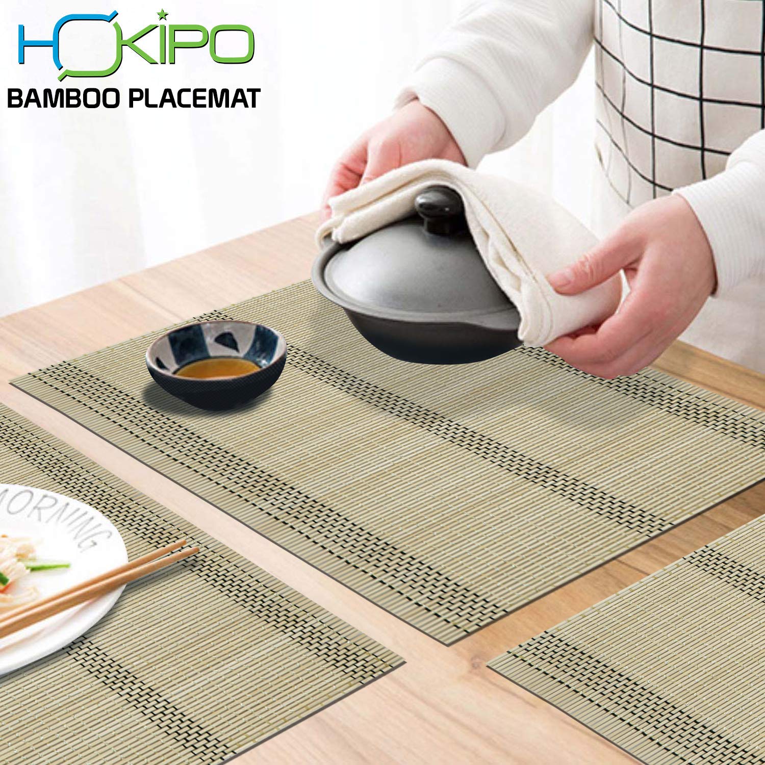 • HOKIPO Bamboo Placemats Set of 6 – Stylish, heat-resistant, and easy-to-clean dining table mats made from 100% natural bamboo.