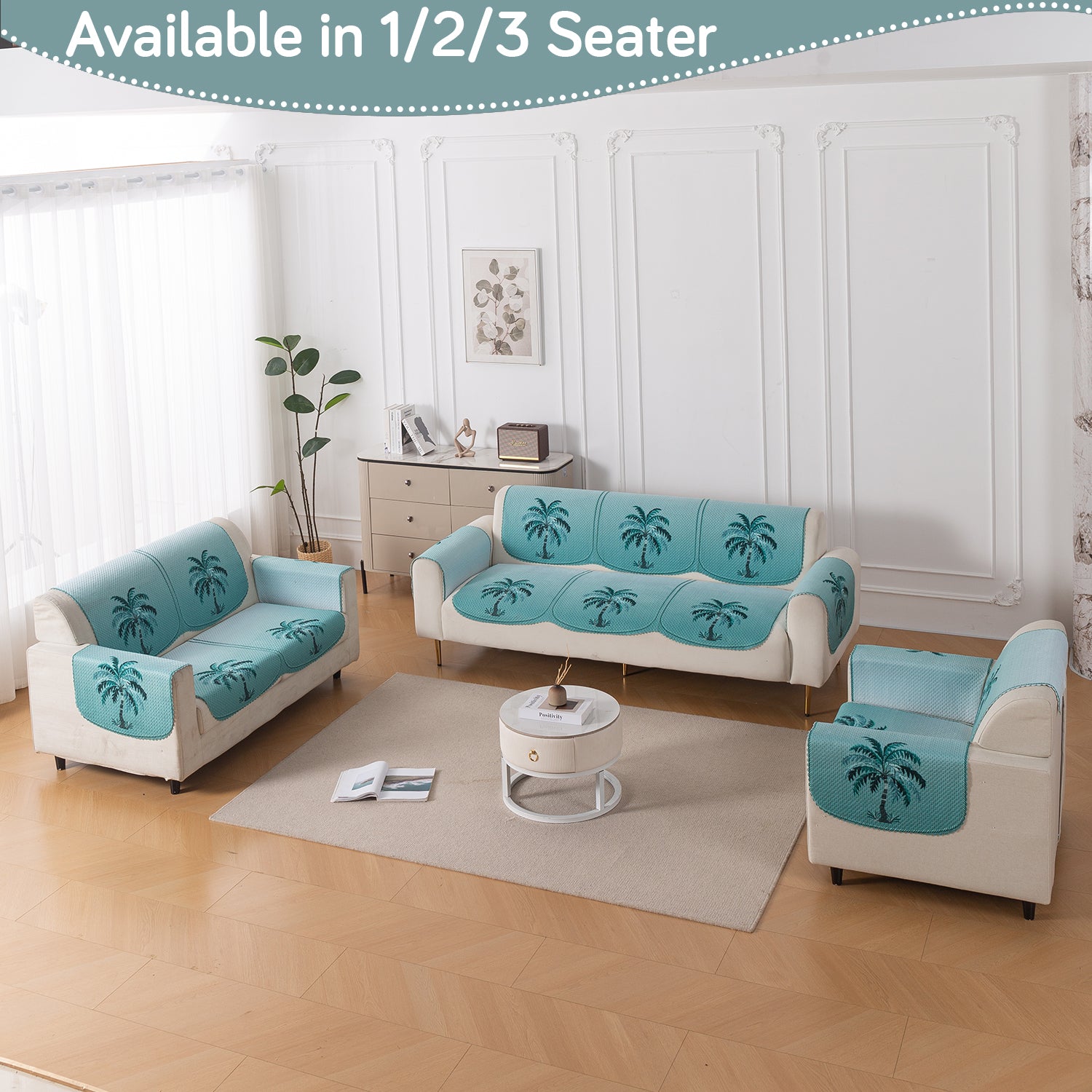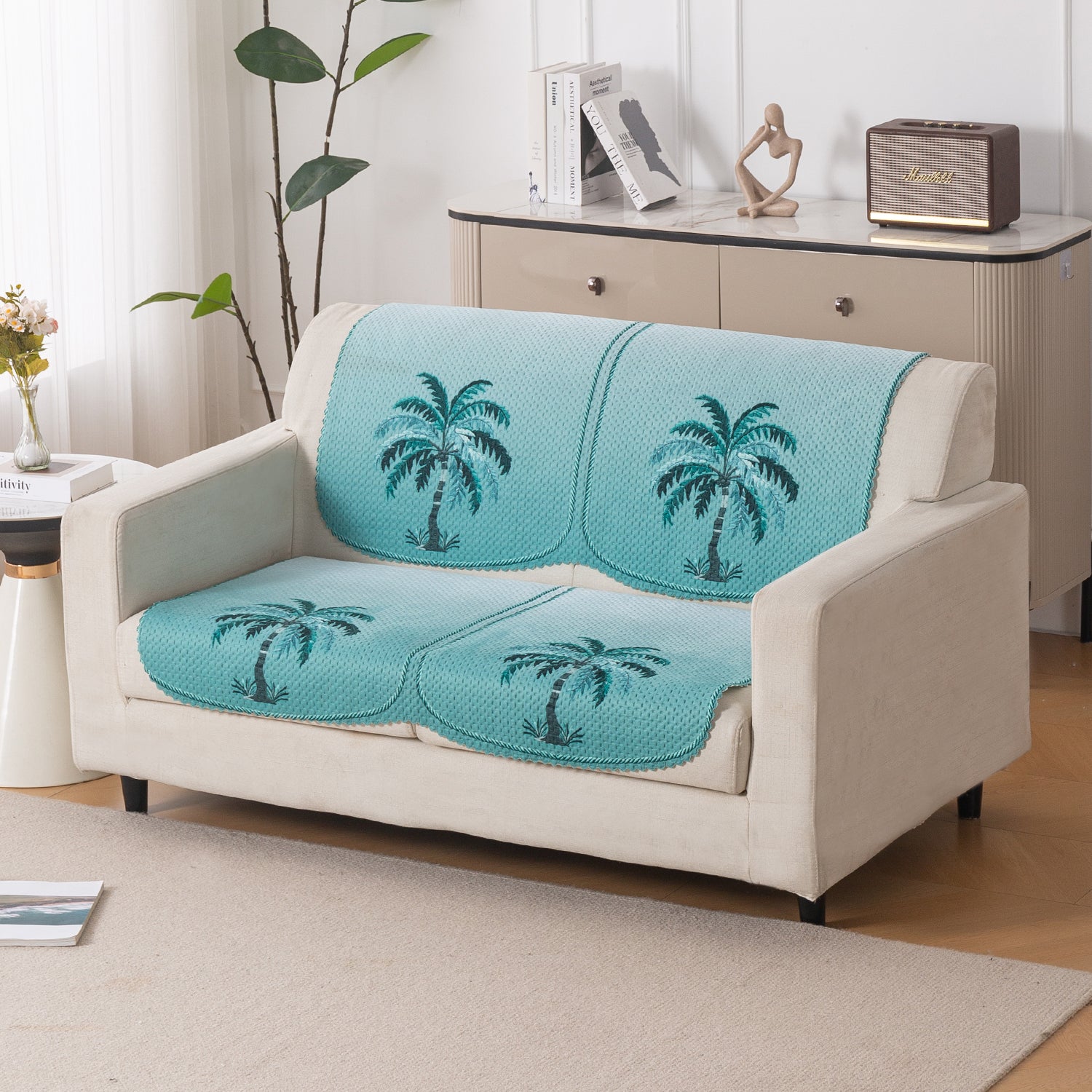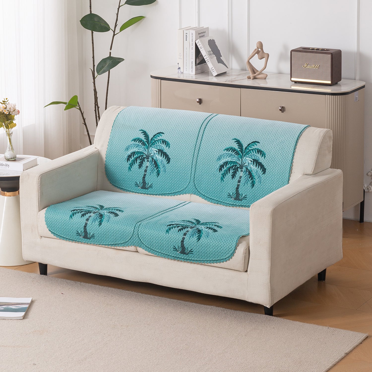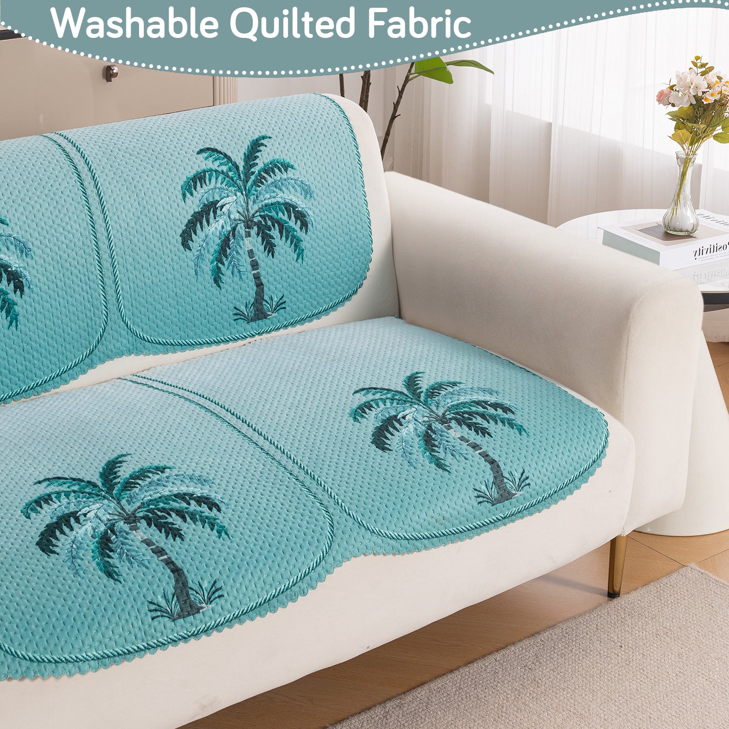 HeavenHue Fleece Soft Touch Quilted Sofa Cover Set Washable Sofa Panel for Seat & Back - Island Breeze