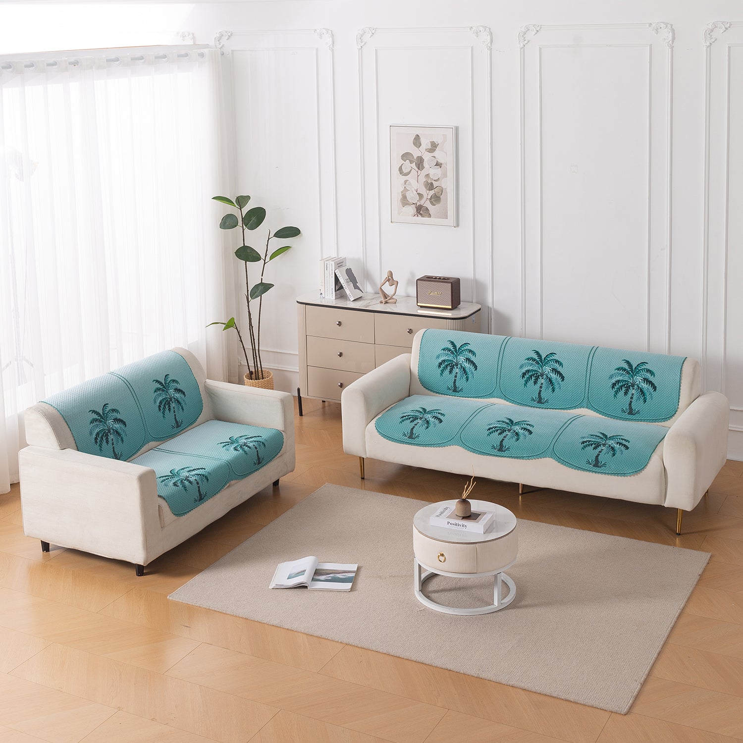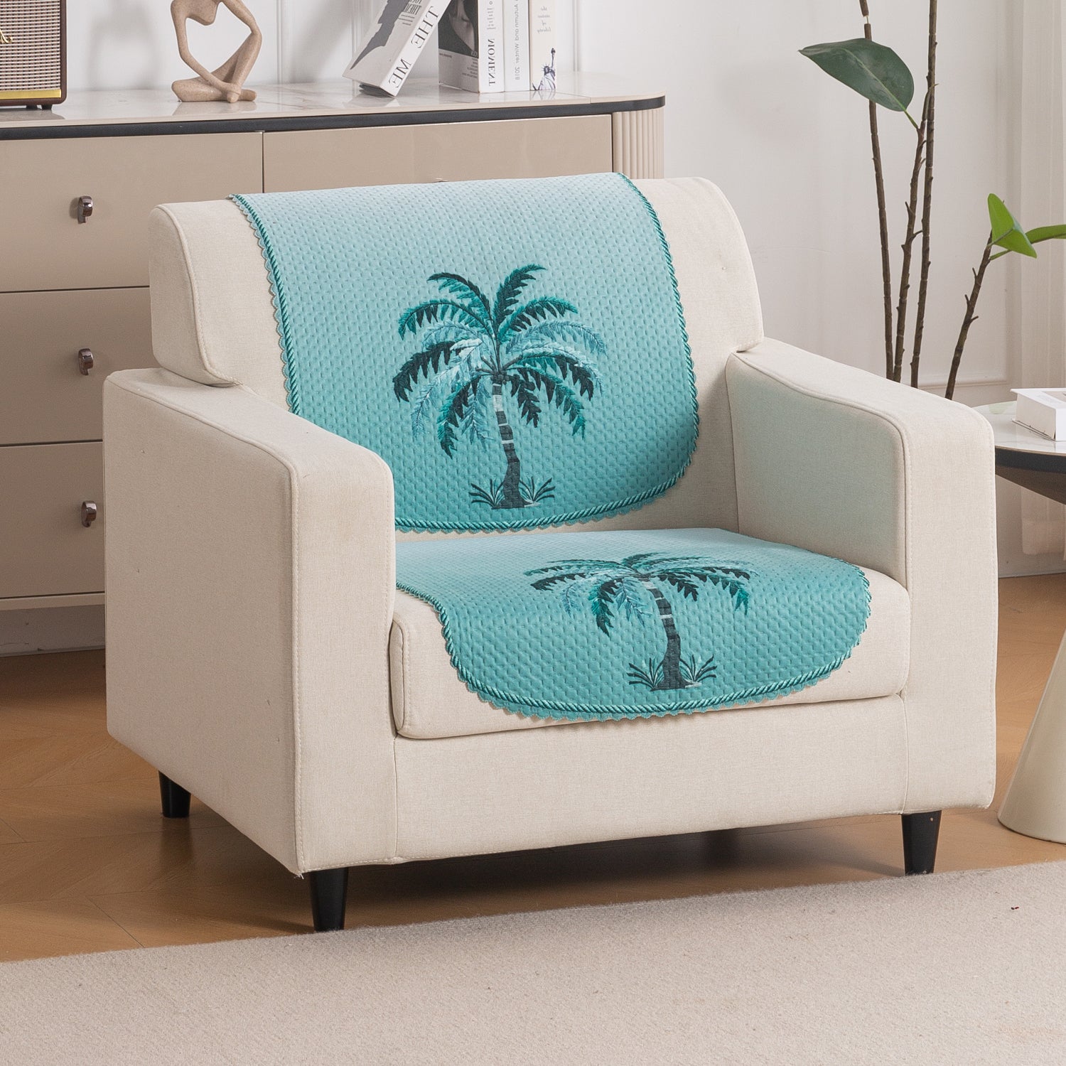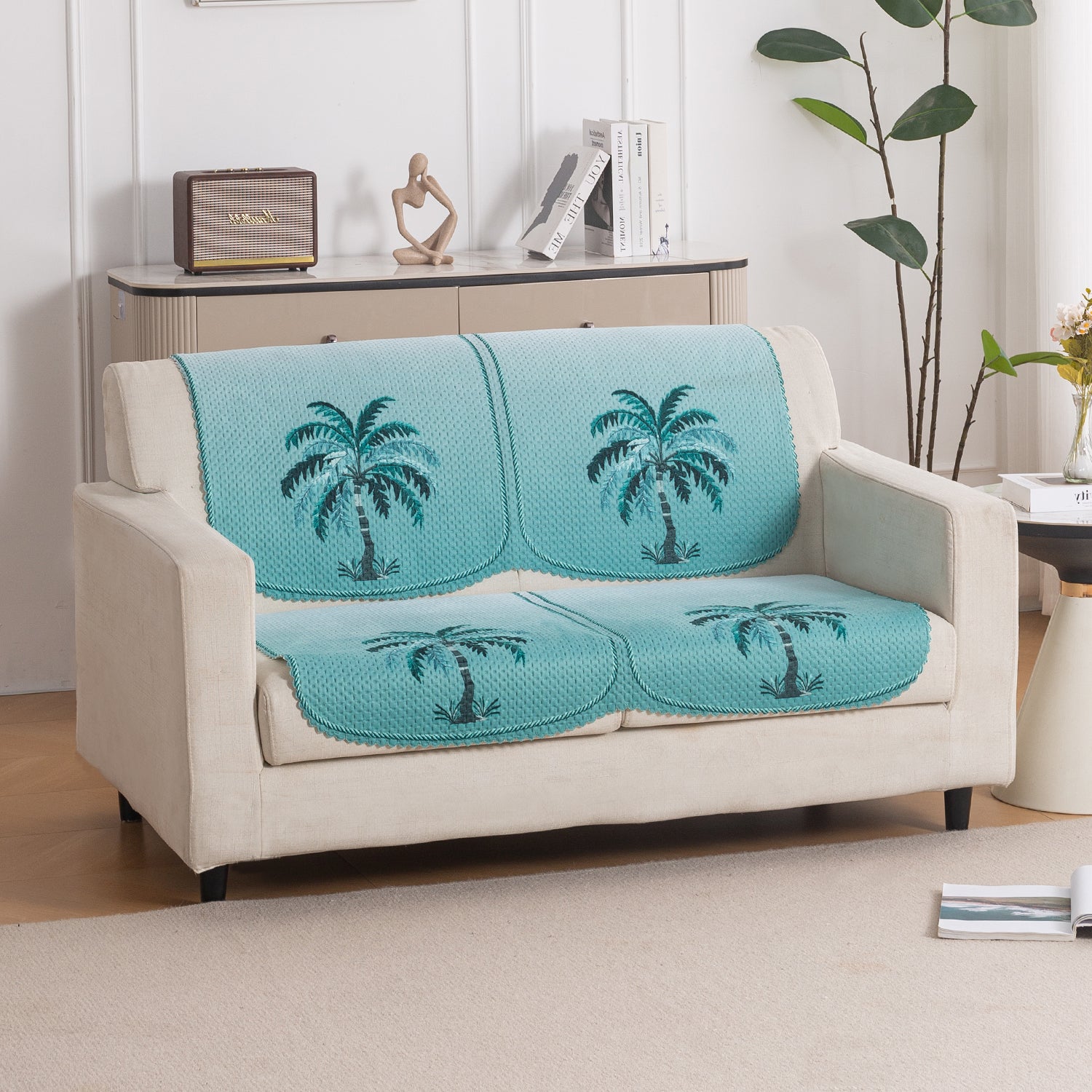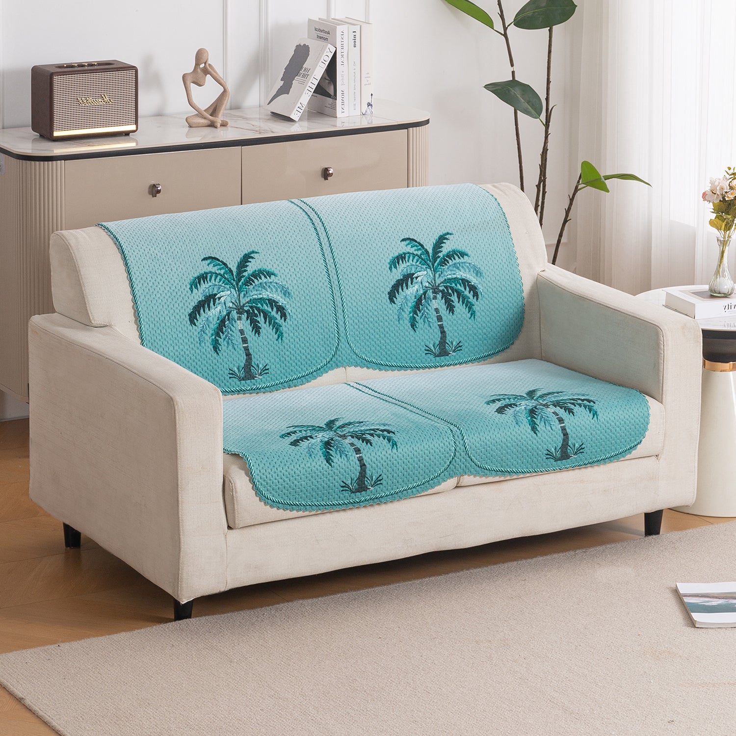 HeavenHue Fleece Soft Touch Quilted Sofa Cover Set Washable Sofa Panel for Seat & Back - Island Breeze