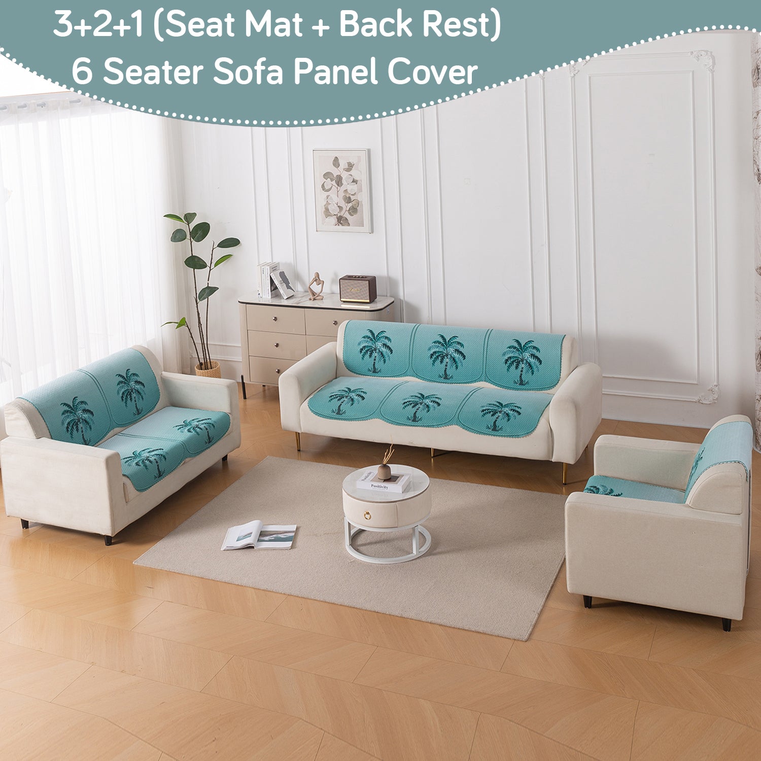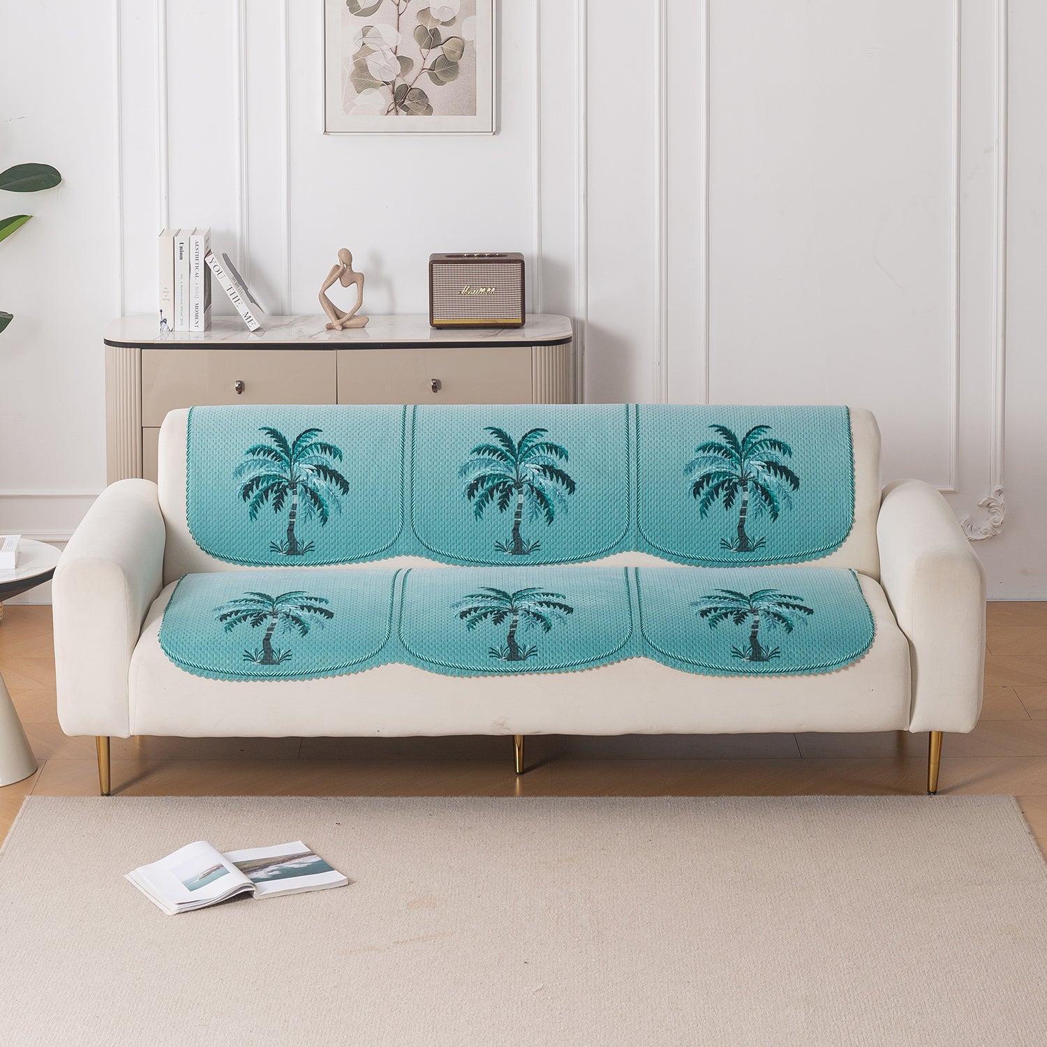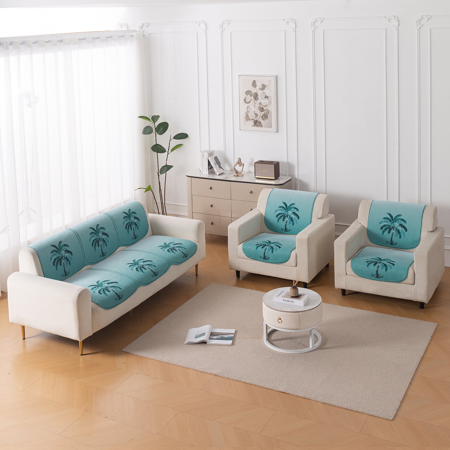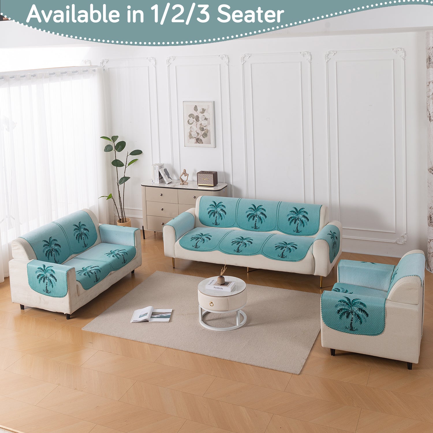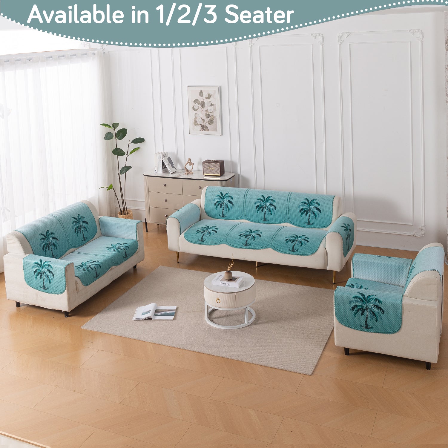 HeavenHue Fleece Soft Touch Quilted Sofa Cover Set Washable Sofa Panel for Seat & Back - Island Breeze