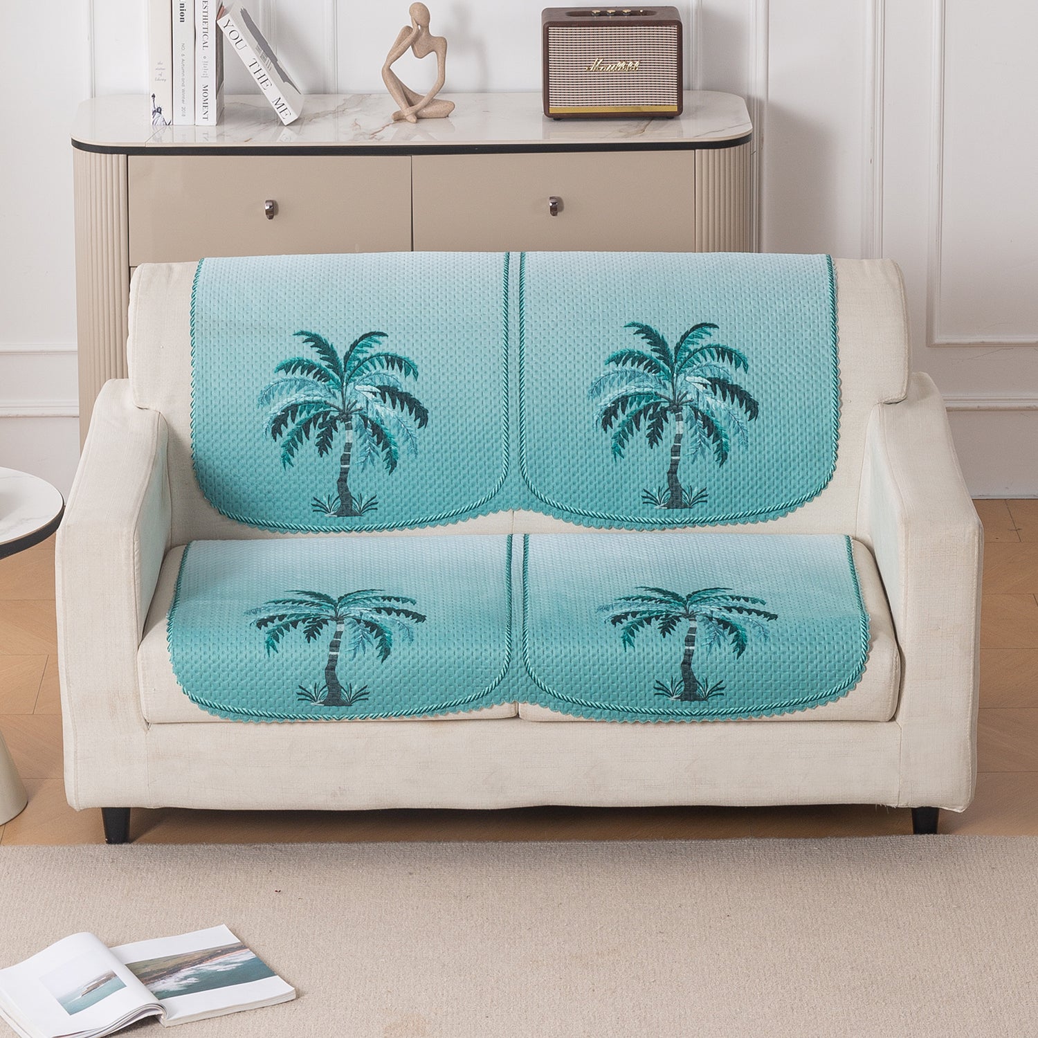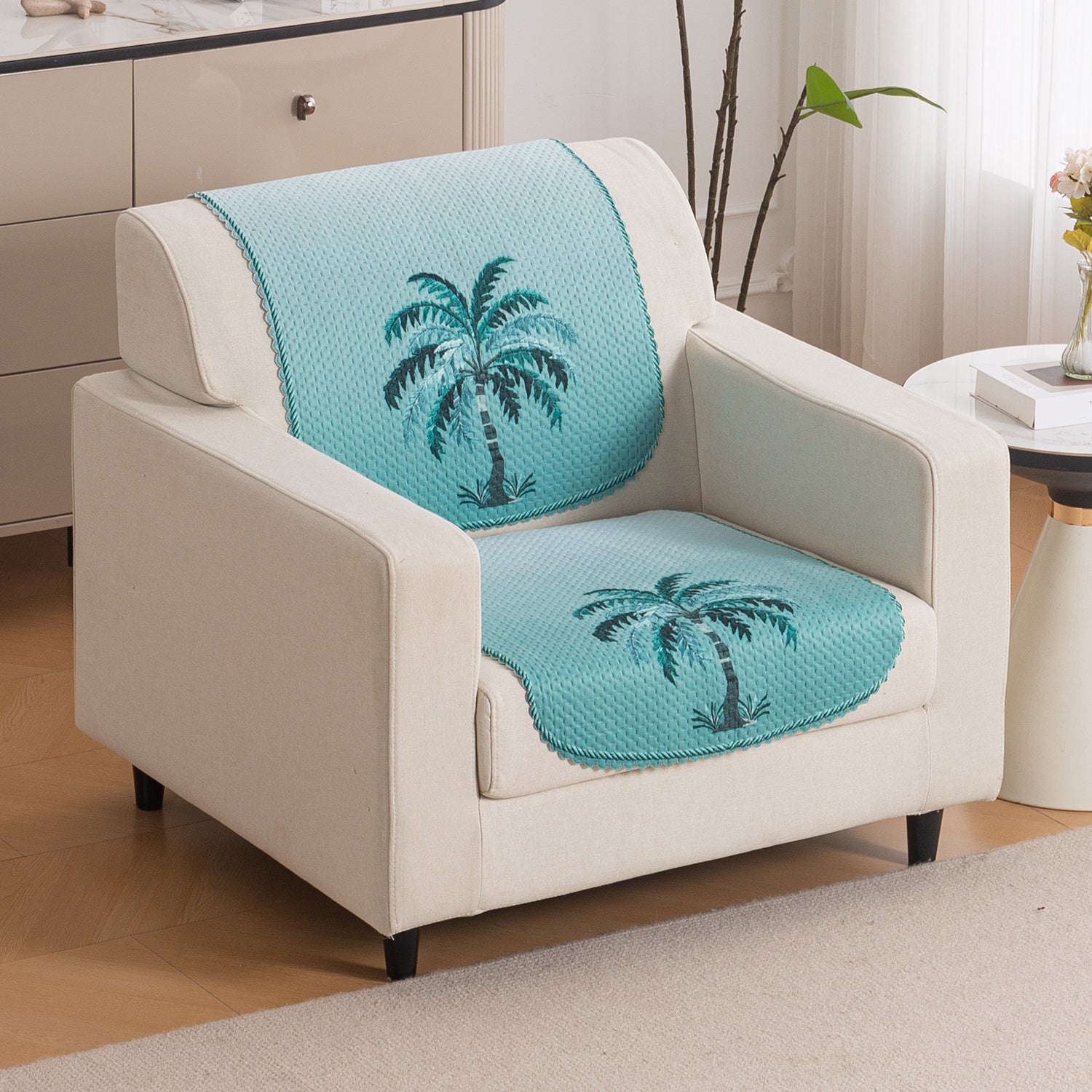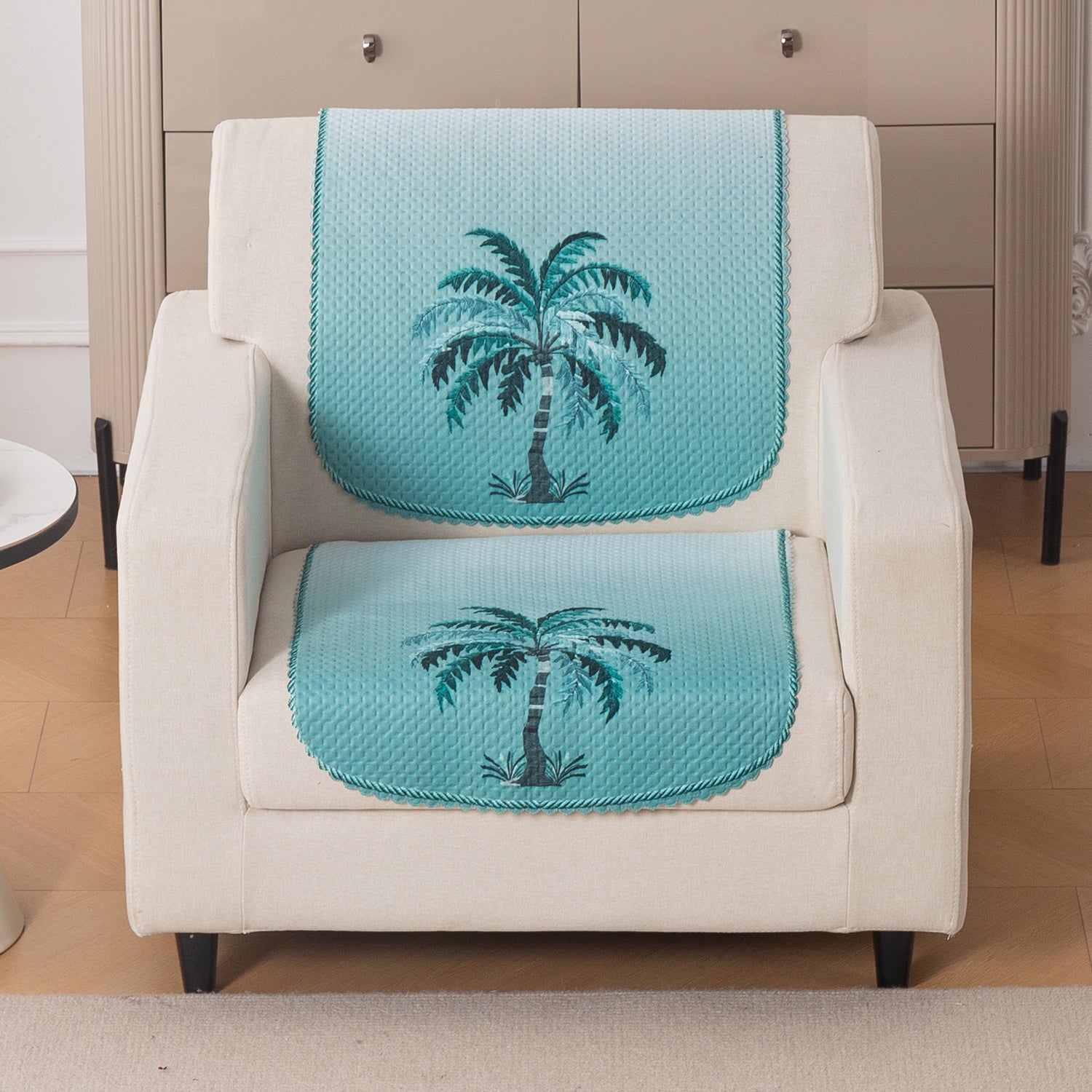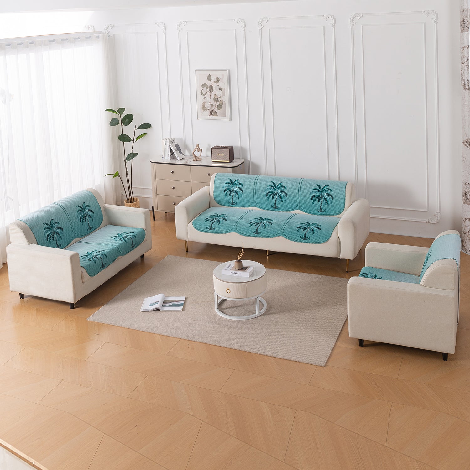 HeavenHue Fleece Soft Touch Quilted Sofa Cover Set Washable Sofa Panel for Seat & Back - Island Breeze