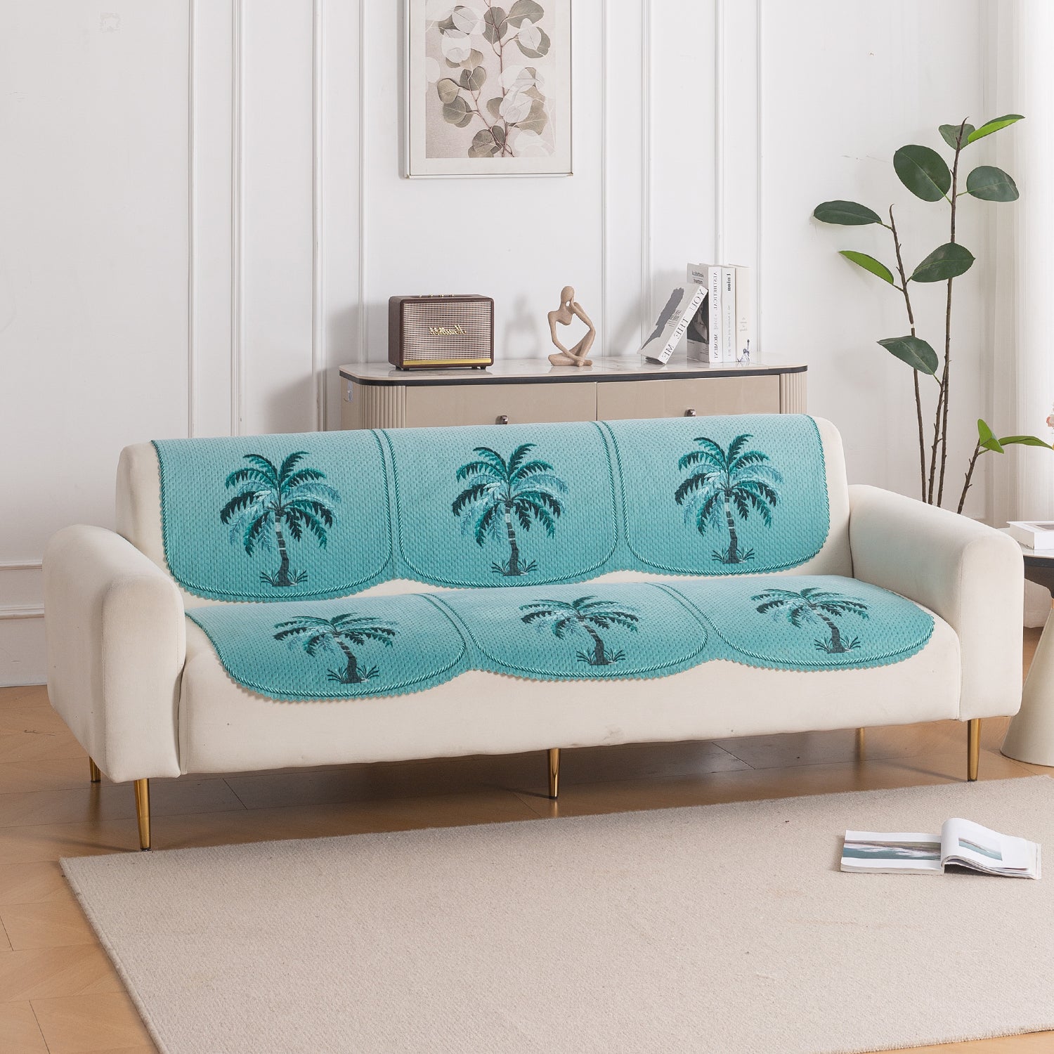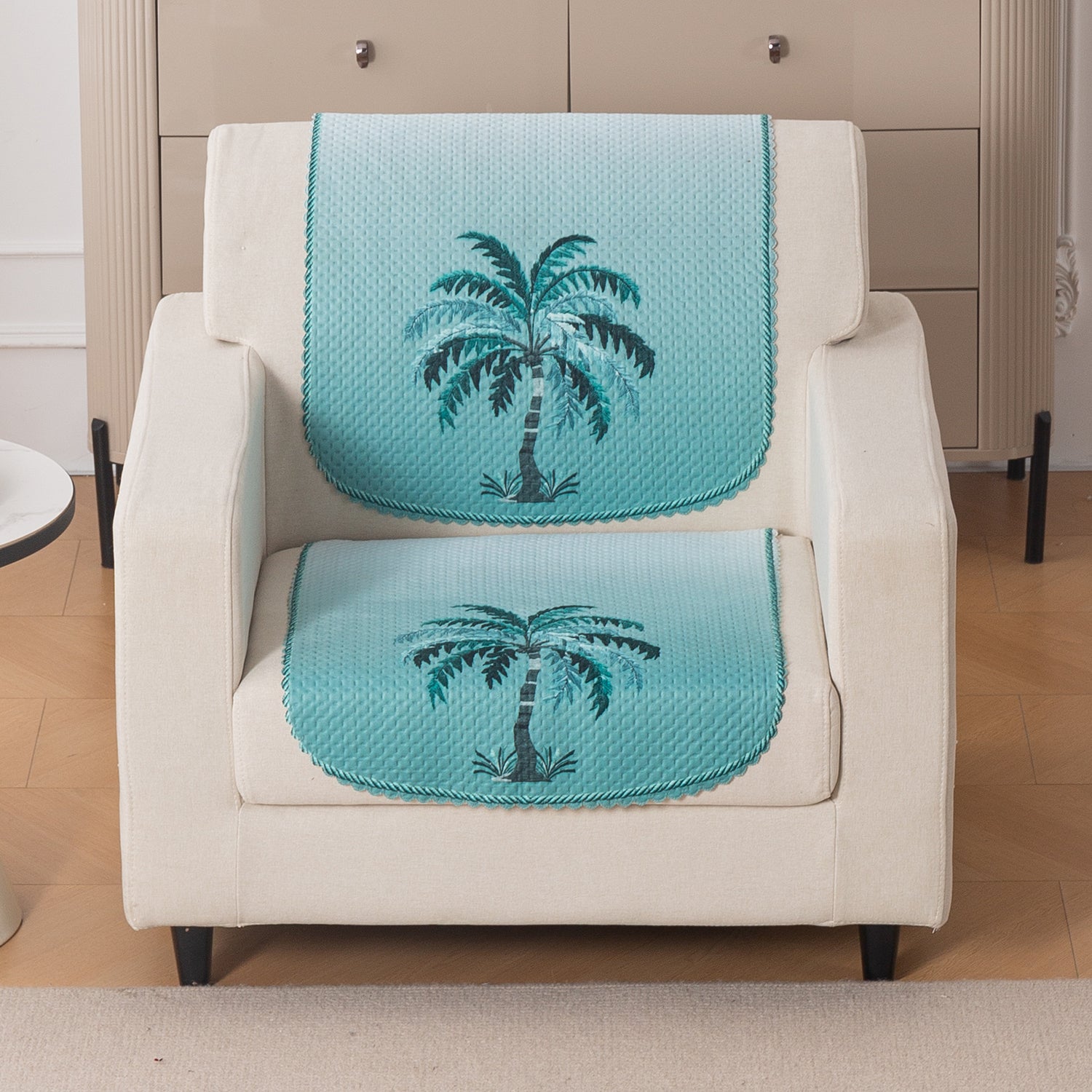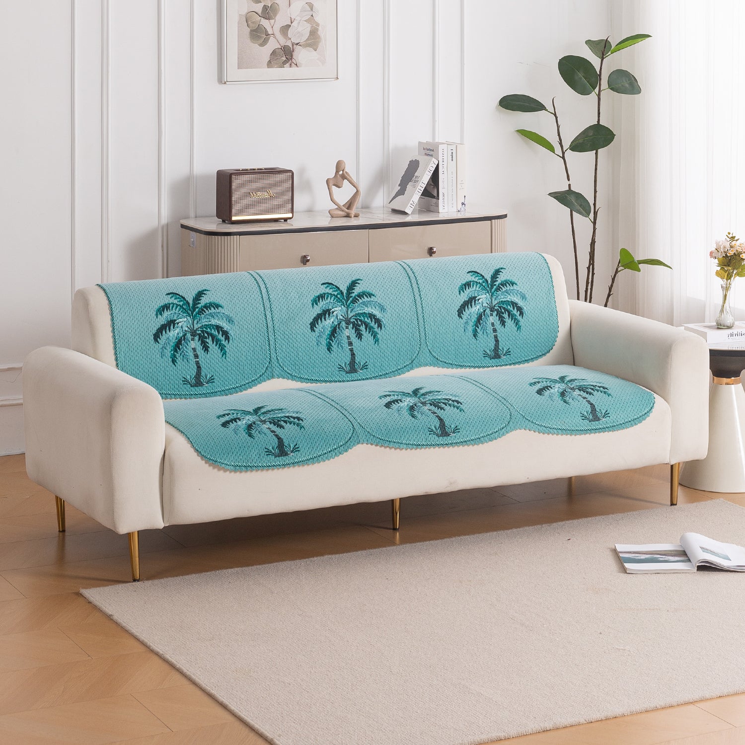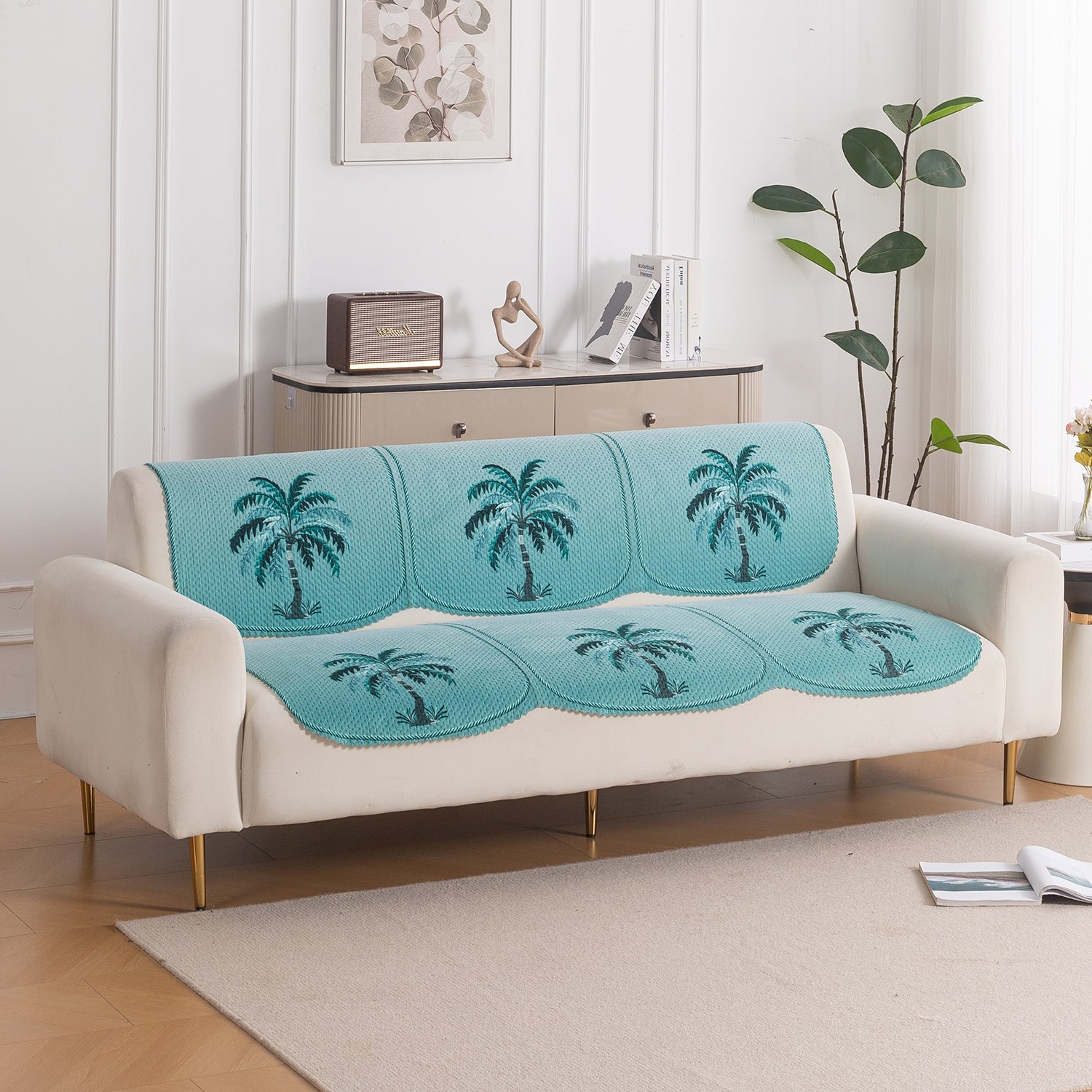 HeavenHue Fleece Soft Touch Quilted Sofa Cover Set Washable Sofa Panel for Seat & Back - Island Breeze