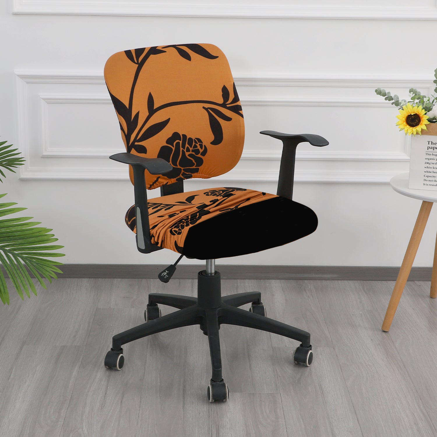 Printed Office Chair Cover for Task Chair – 140 GSM Stretchable Fabric – Washable & Anti-Slip – Fits Small Office Chairs Without Headrest, Copper Brown Floral
