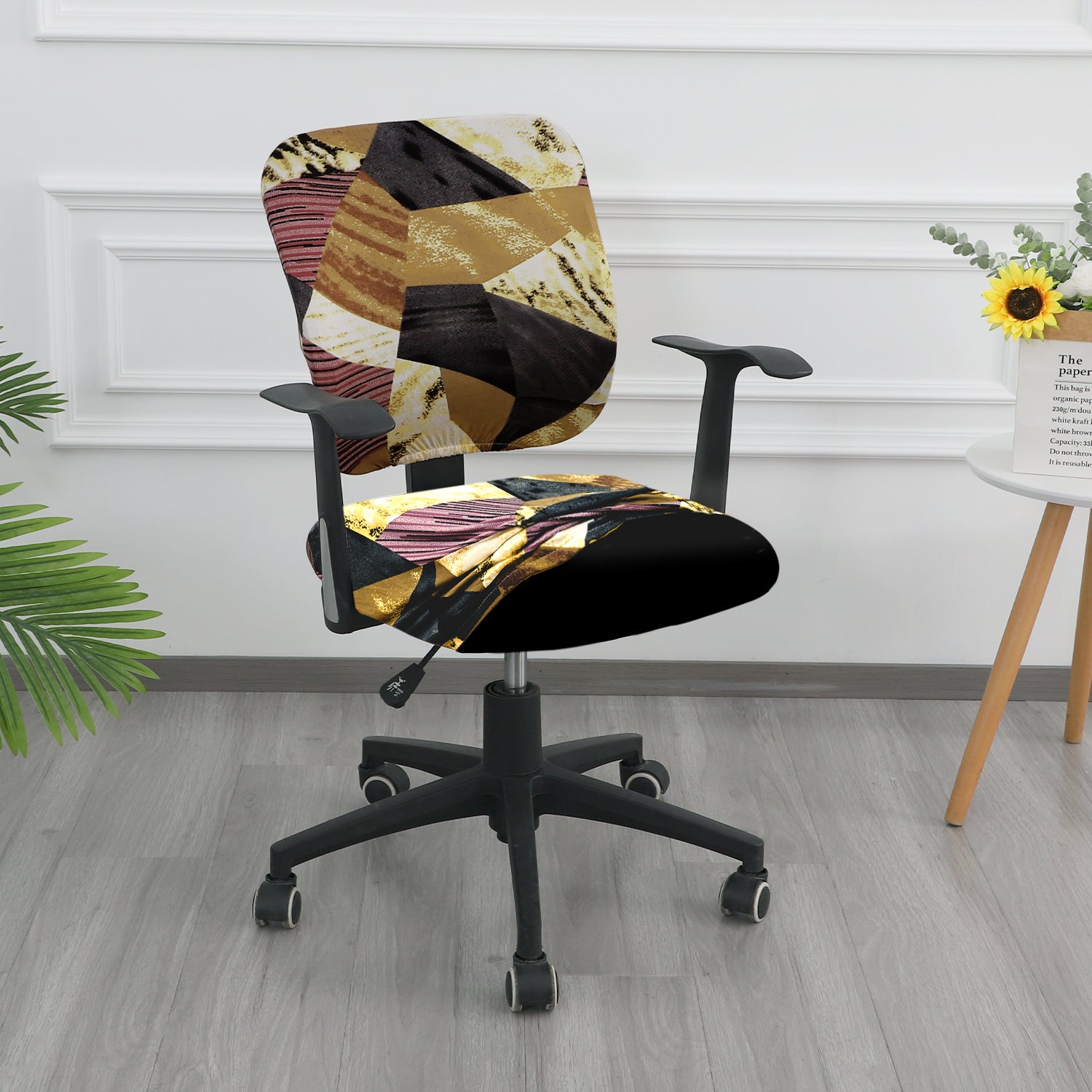 Printed Office Chair Cover for Task Chair – 140 GSM Stretchable Fabric – Washable & Anti-Slip – Fits Small Office Chairs Without Headrest, Wine Abstract Geometry