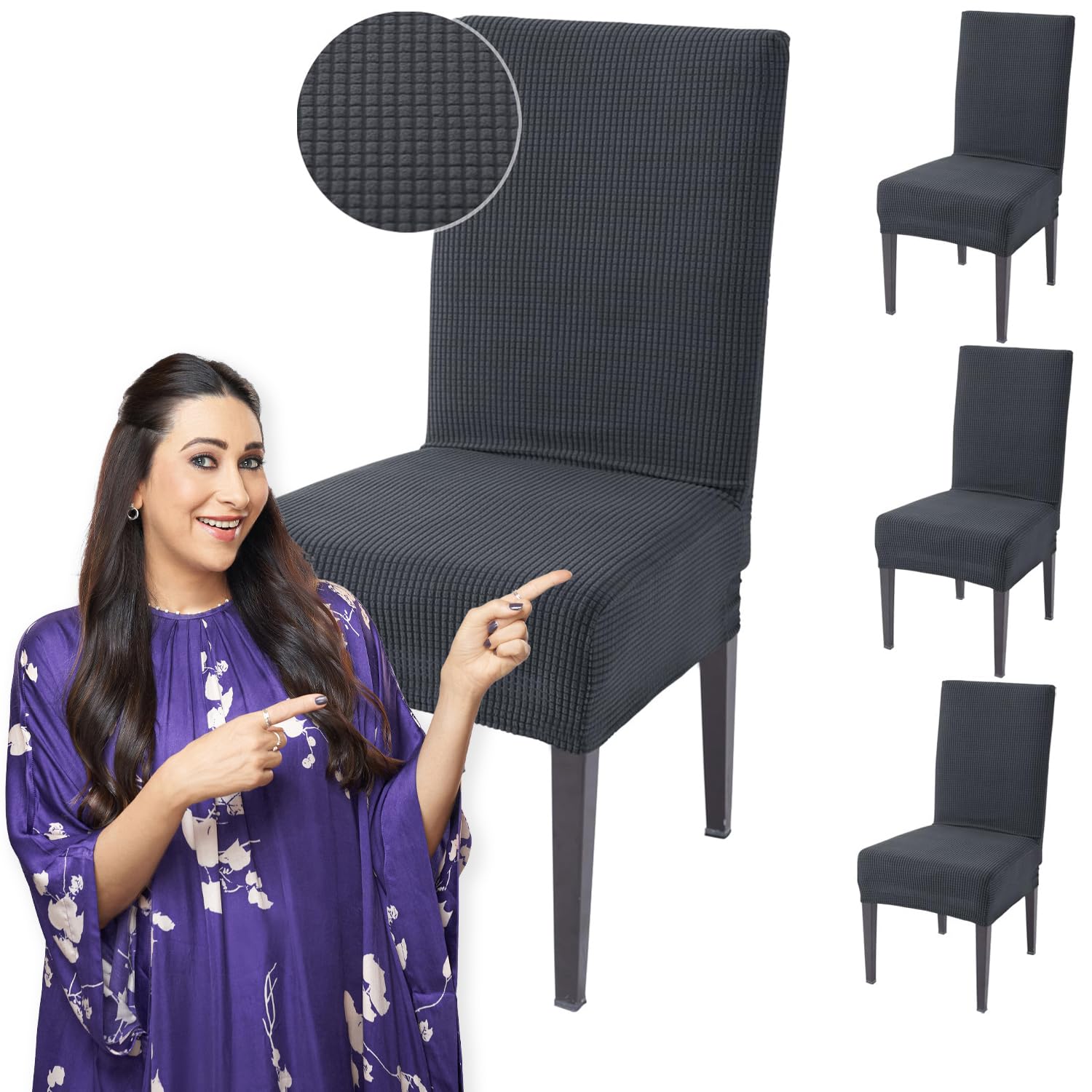 200 GSM Jacquard Set of 1/2/4/6 Dining Chair Cover, Dark Grey