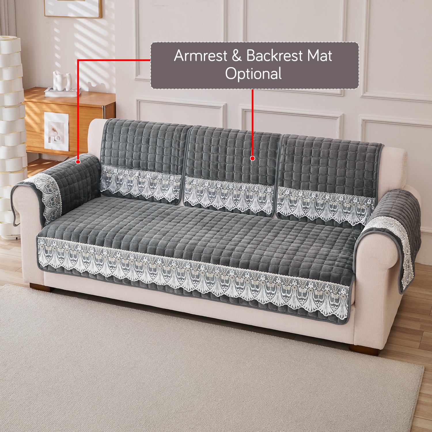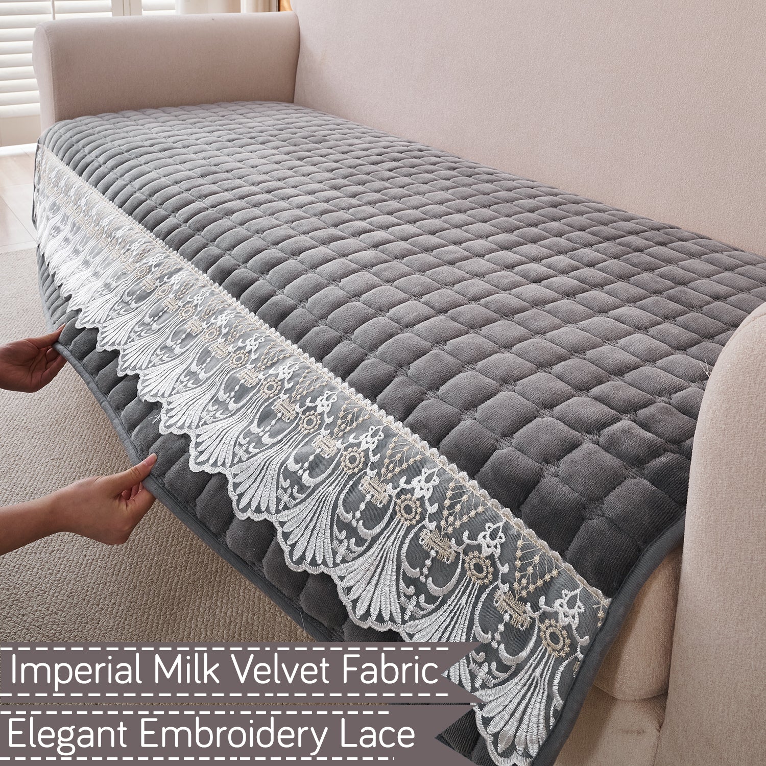 - Elegant Lace Design: HOKIPO Luxury Imperial Milk Velvet Sofa Cover Mats feature a graceful lace detailing that adds a rich and sophisticated charm to your living space.