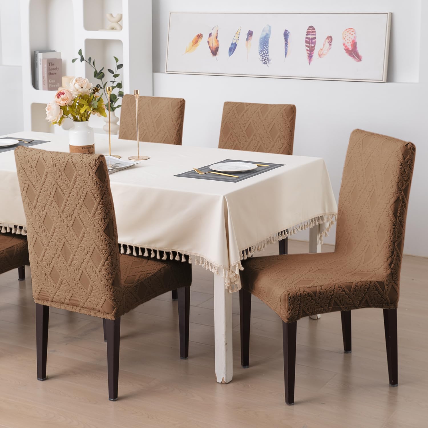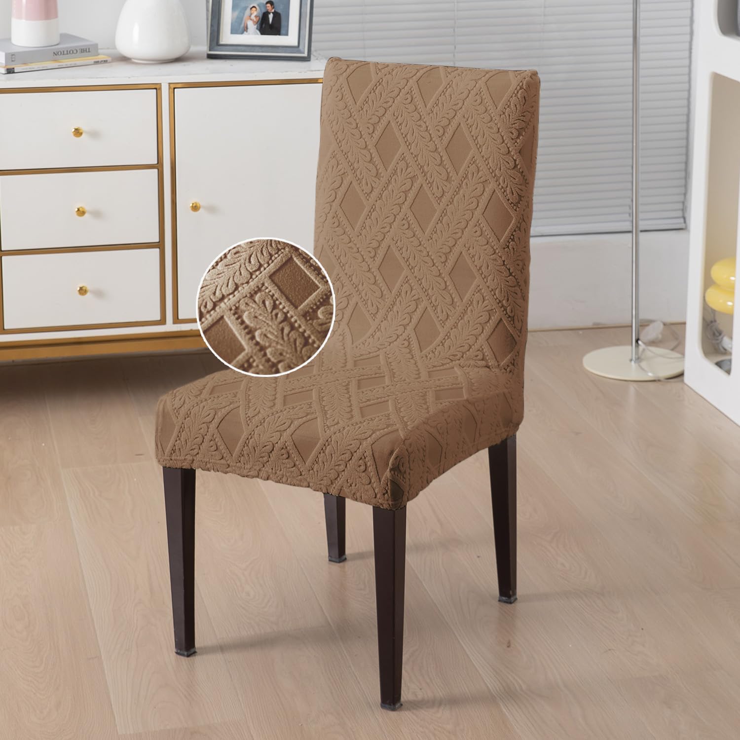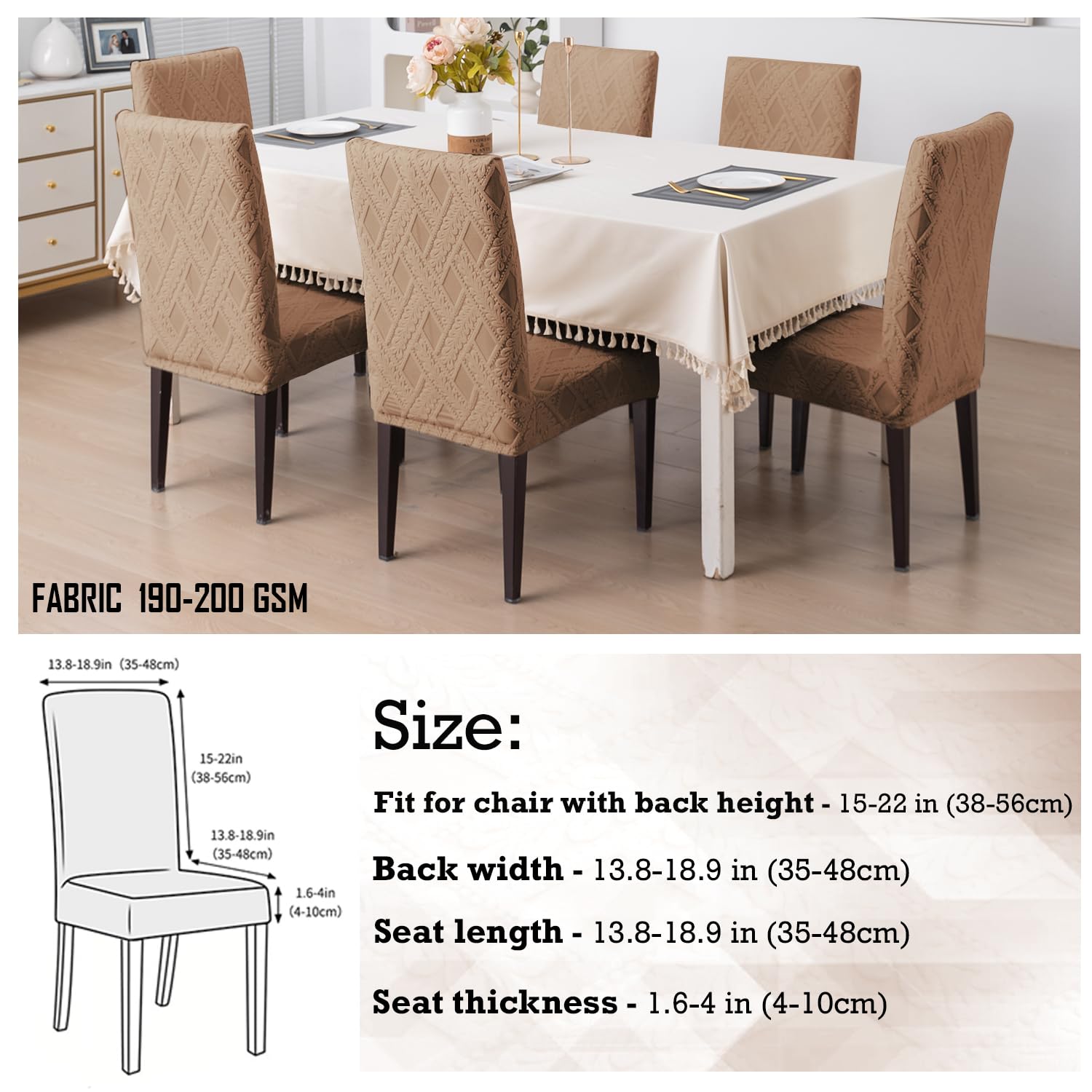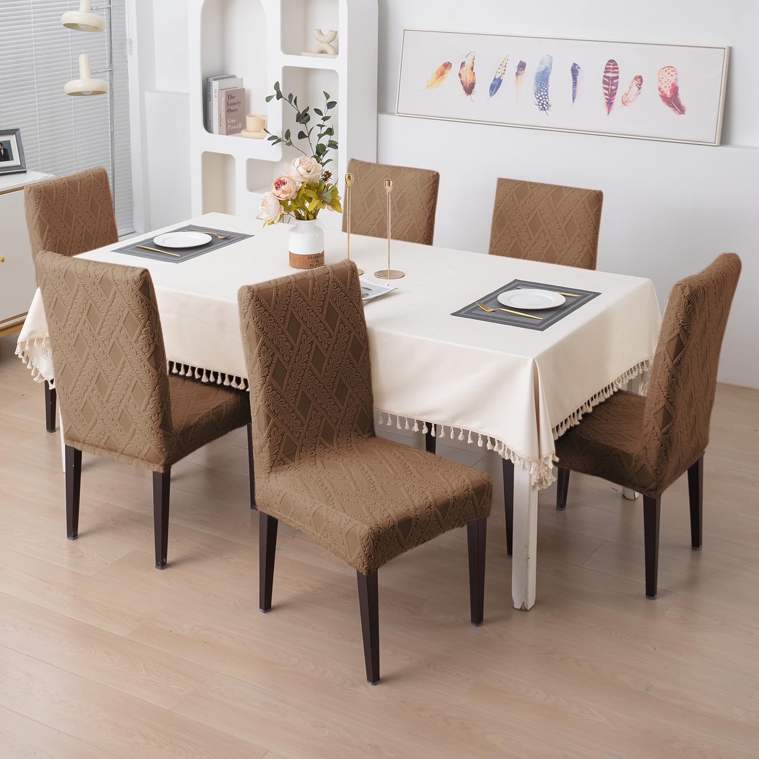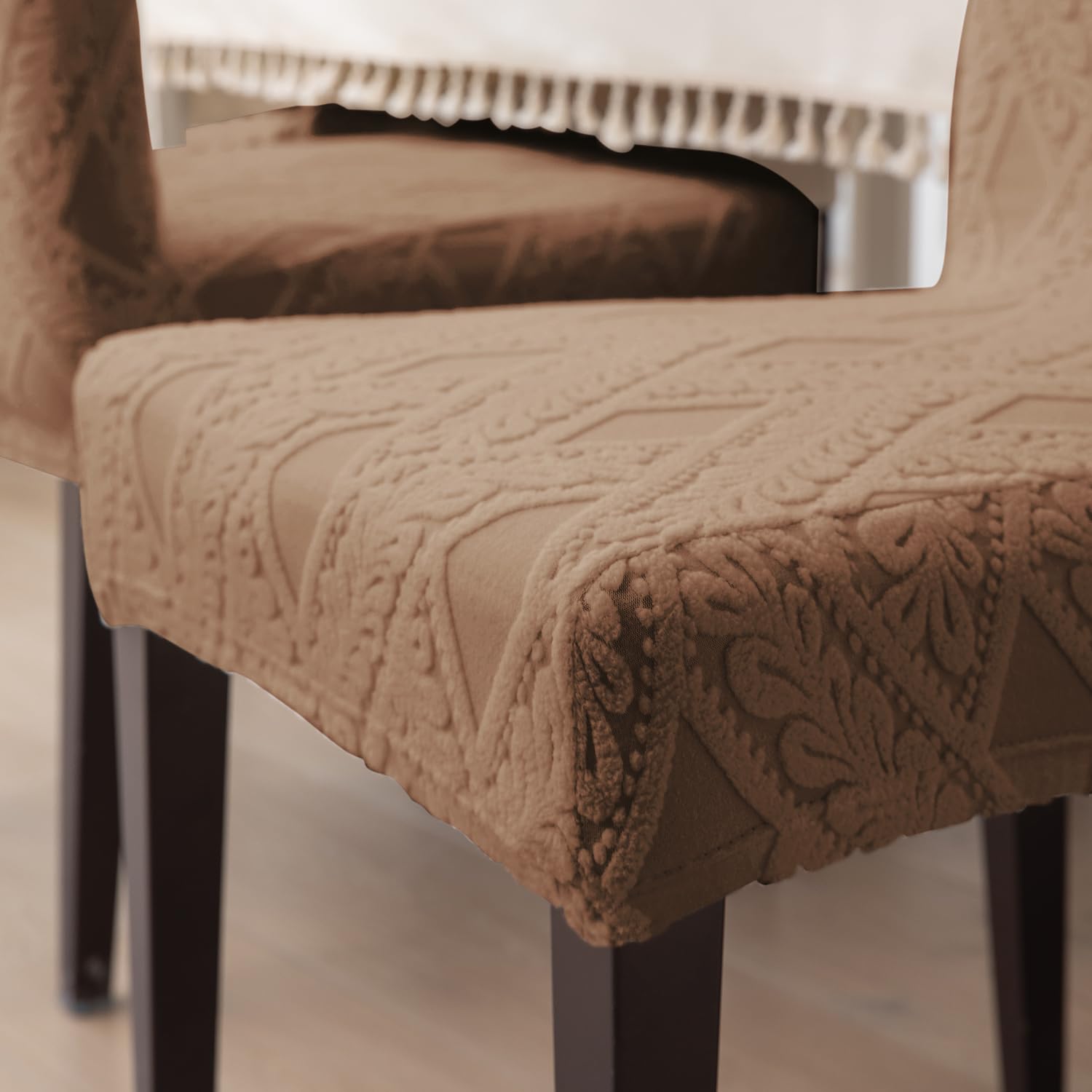 Chair Cover Set of 1/2/4/6, 190 GSM Jacquard, Brown