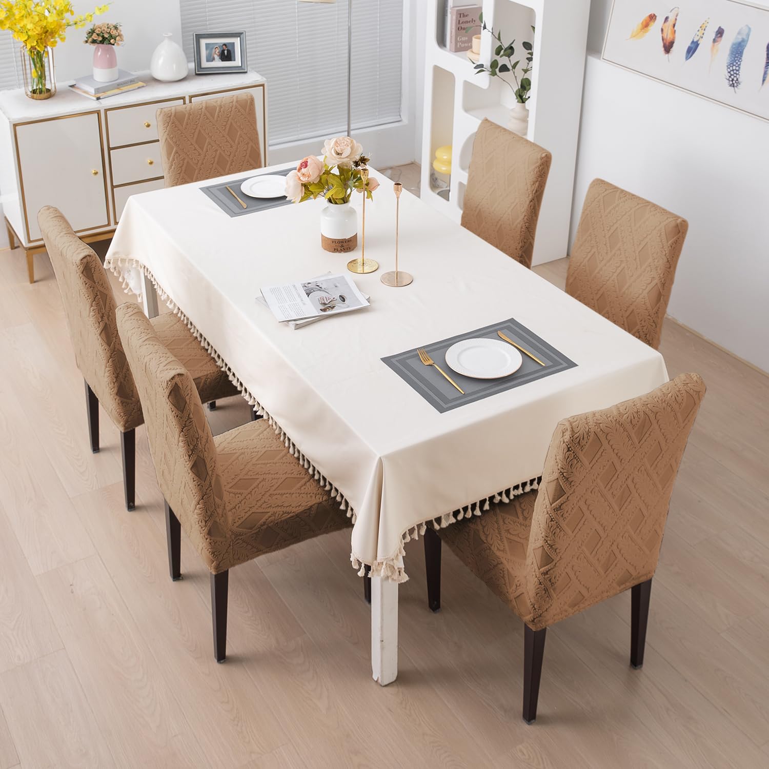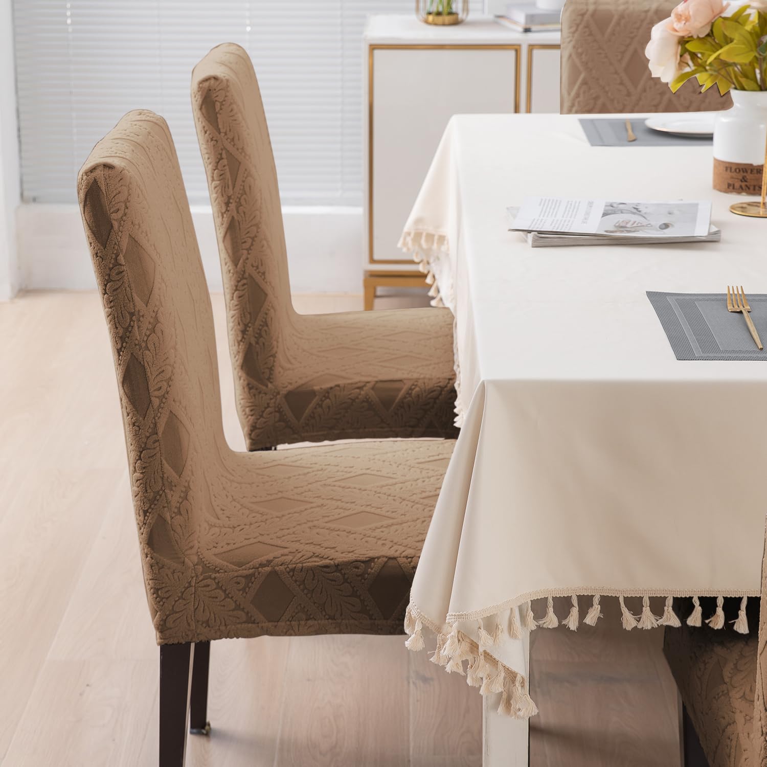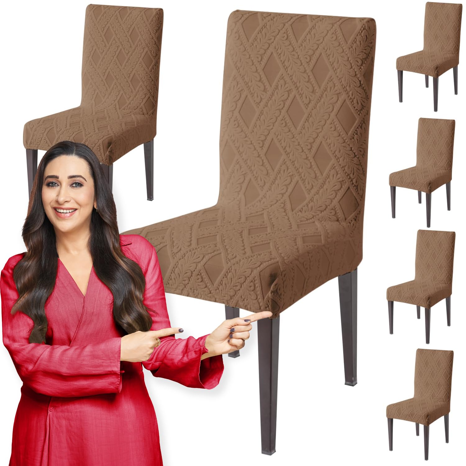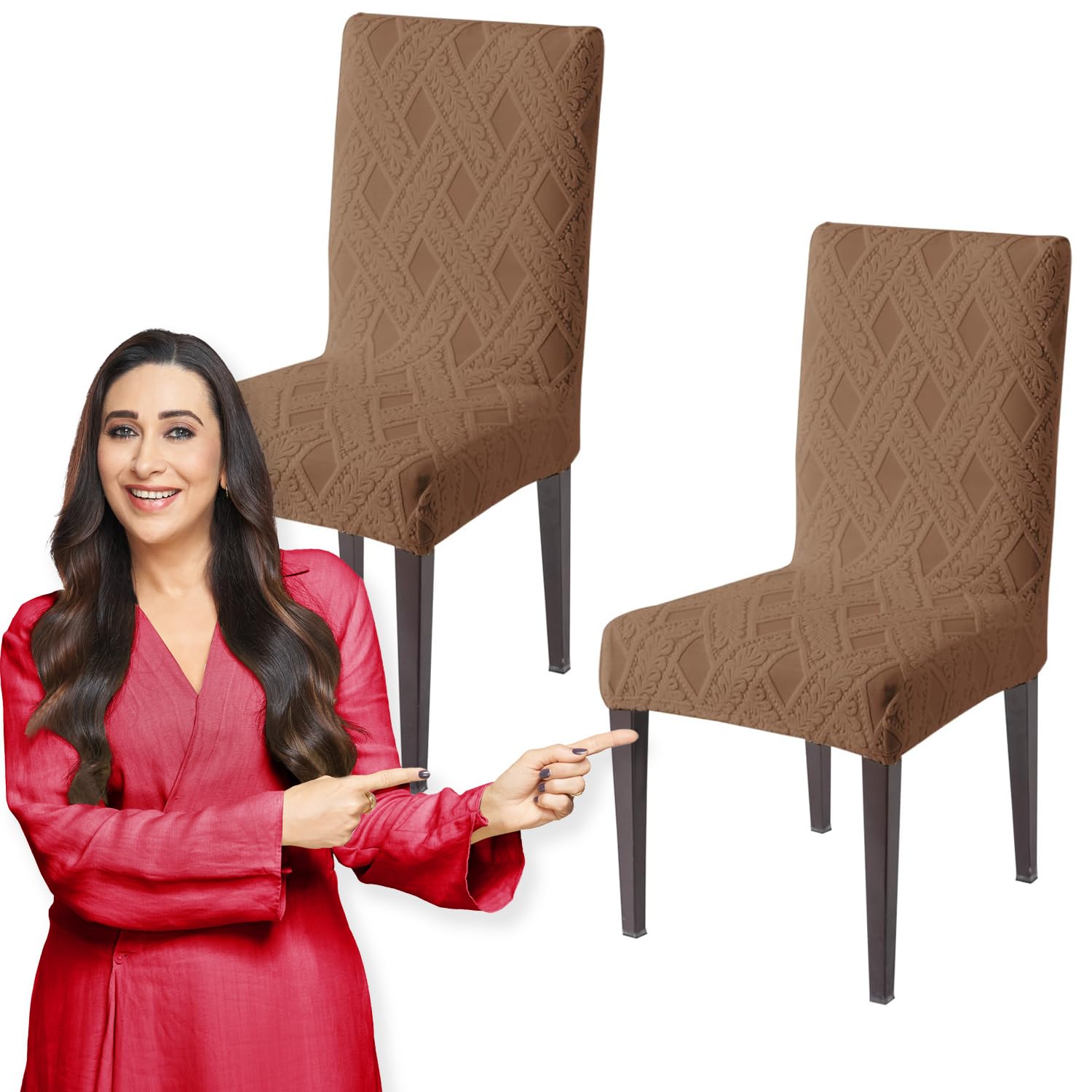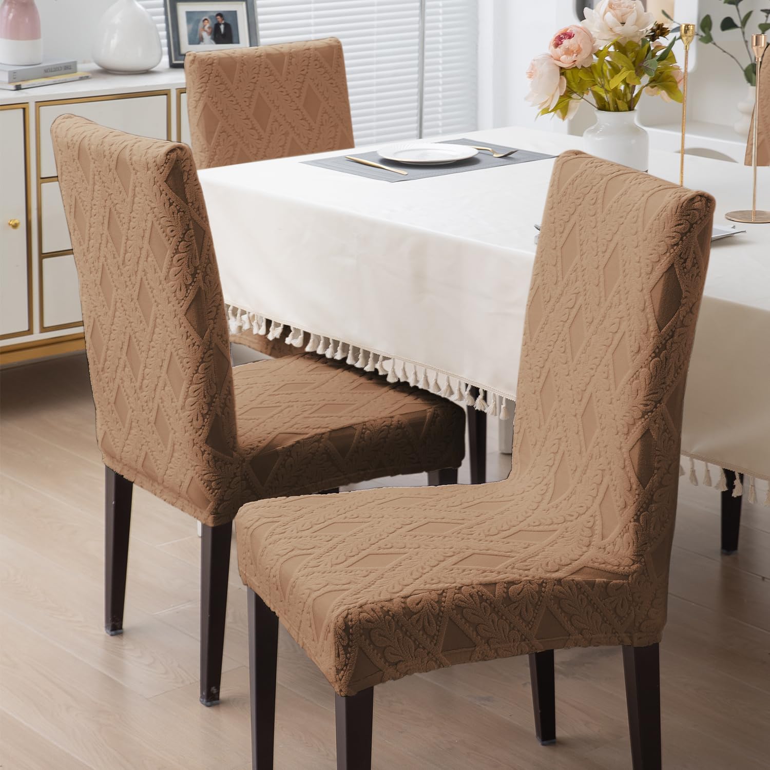 Chair Cover Set of 1/2/4/6, 190 GSM Jacquard, Brown