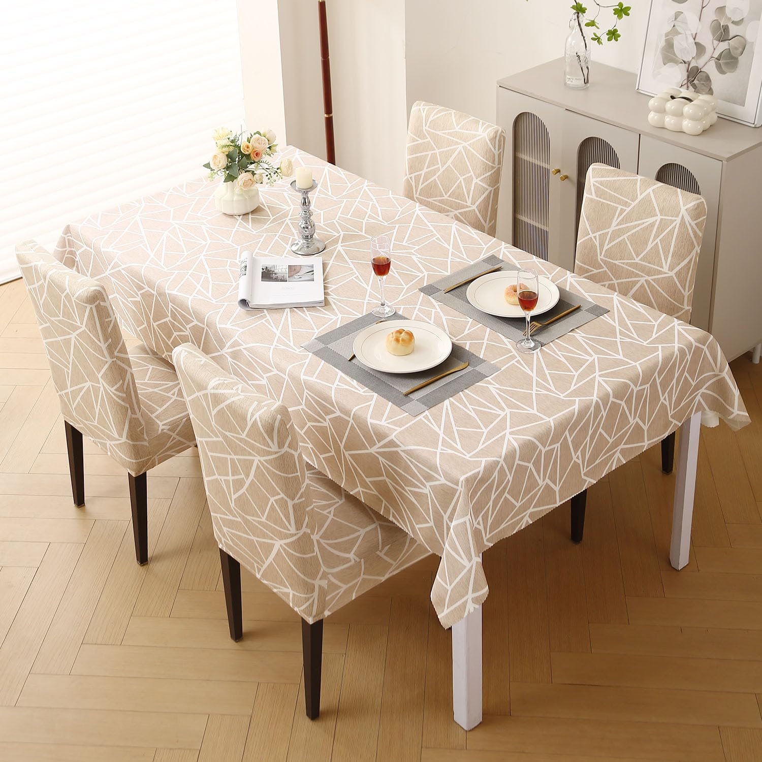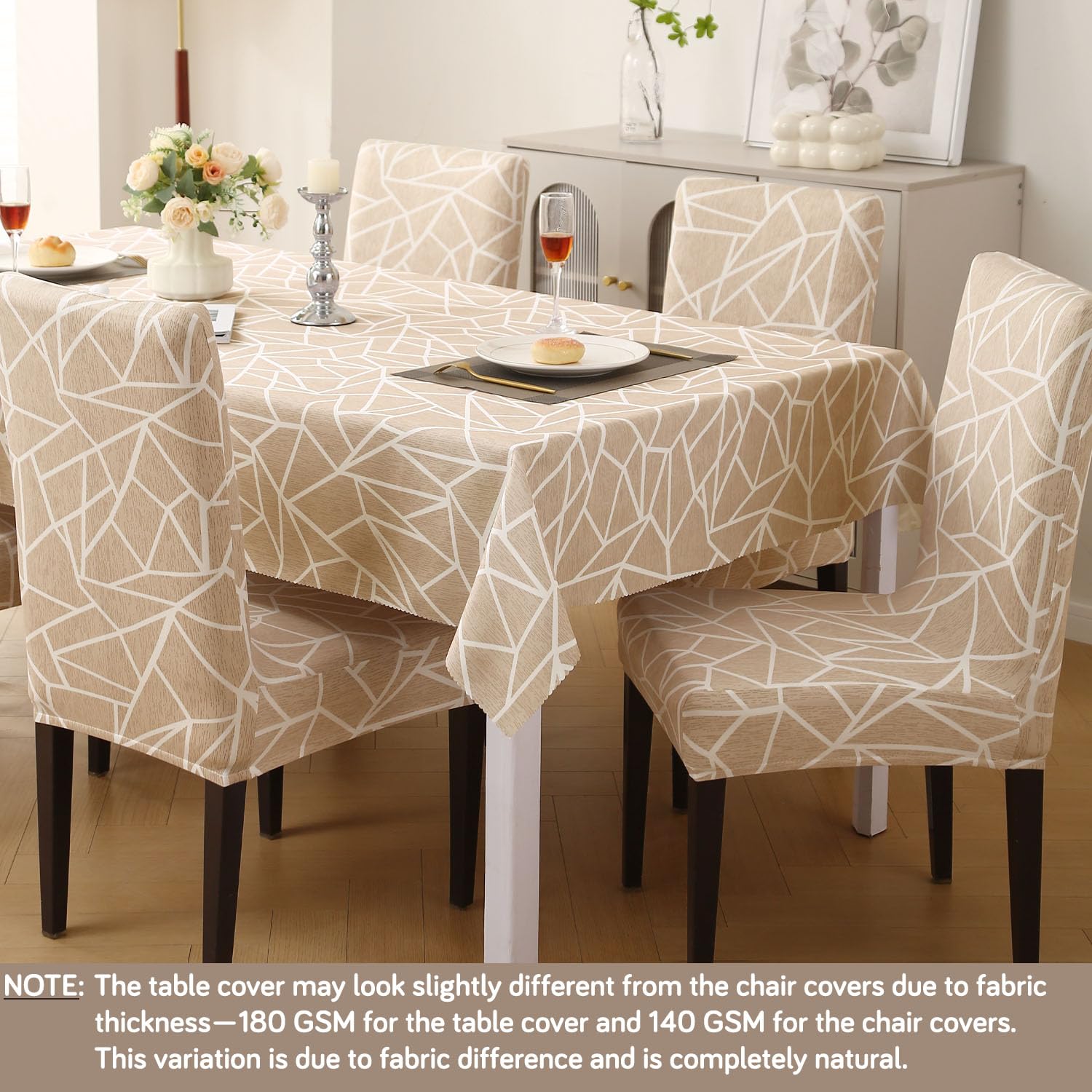 Elastic Dining Chair Covers with Matching Tablecloth, Beige Abstract Geometry