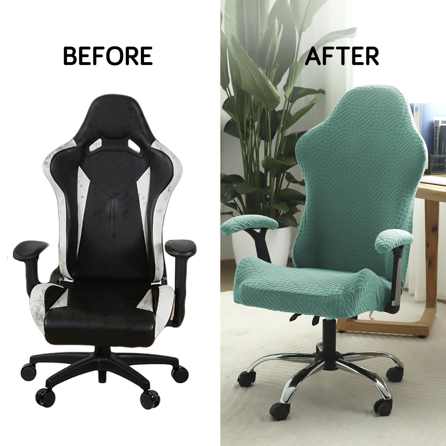 Gaming Chair Cover Elastic Jacquard Computer Rotating Chair Seat Covers Slipcover, Green