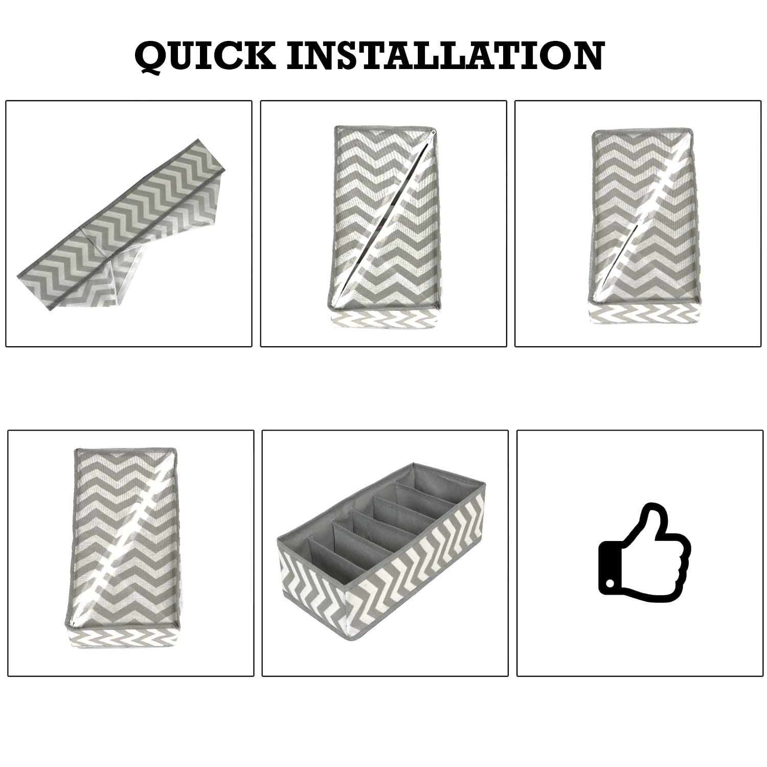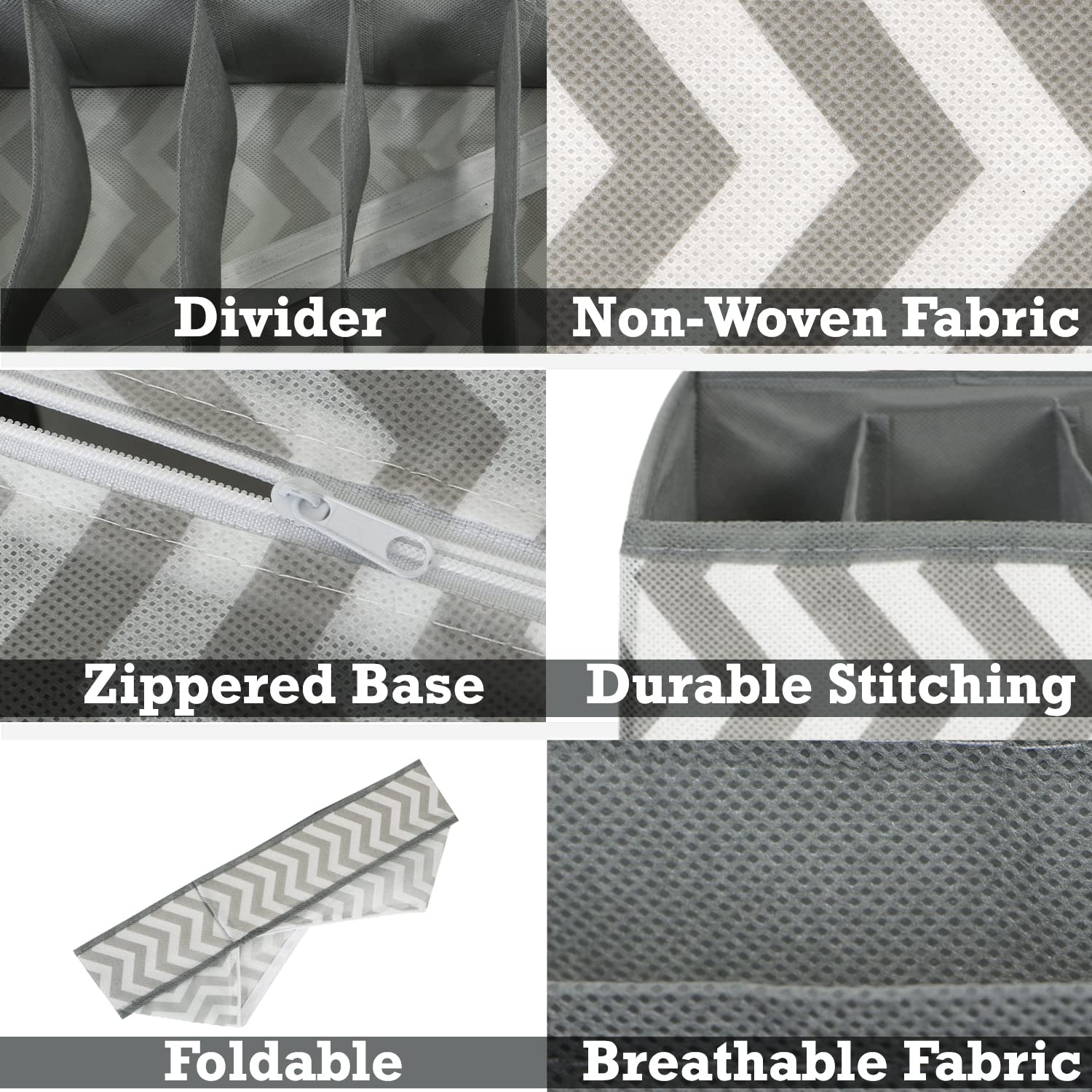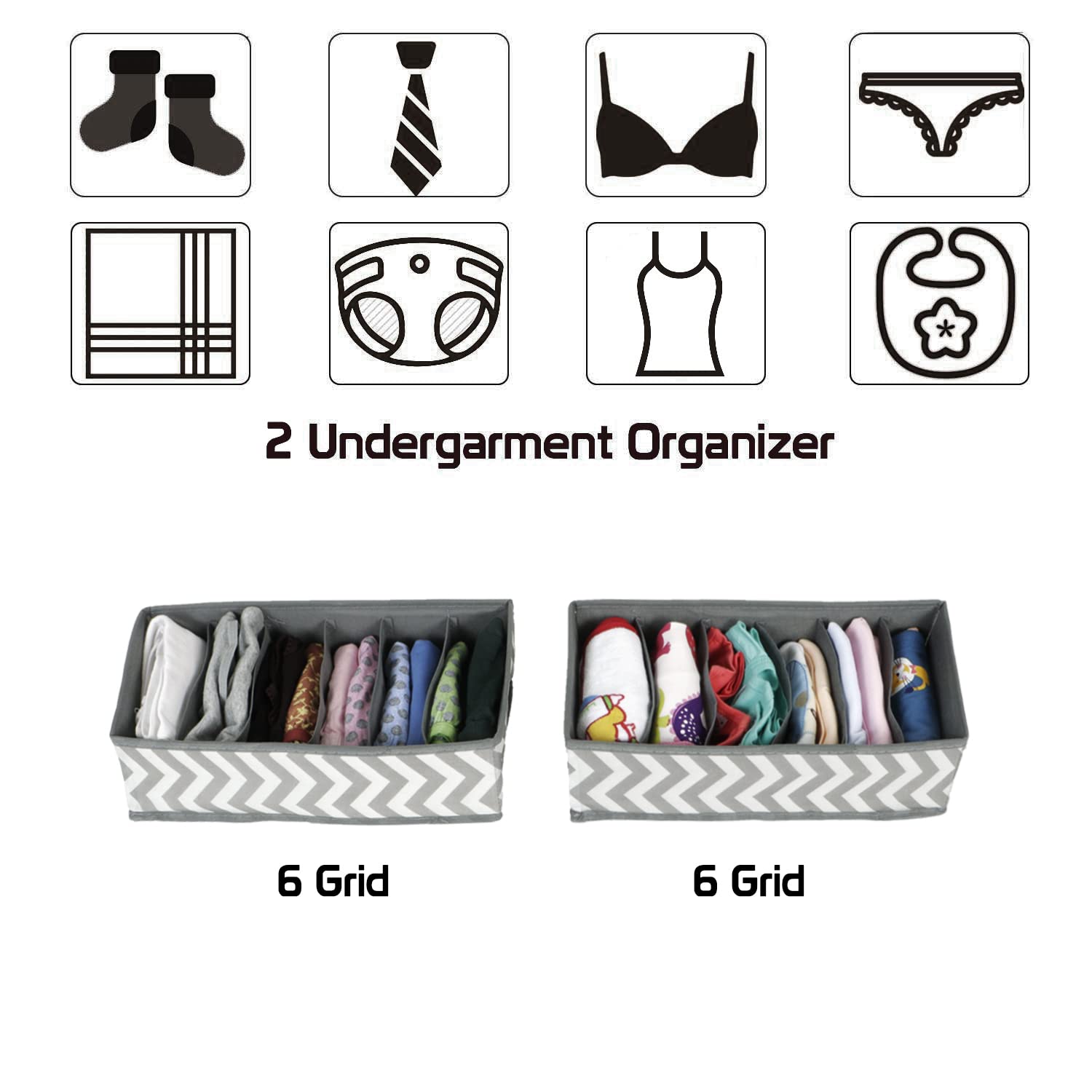Fabric Undergarment Organizer Storage Box For Drawers Bra Panty Socks Tie Lingerie Organizer For Wardrobe, 6 Grid*2, Grey, Drawer Organizers