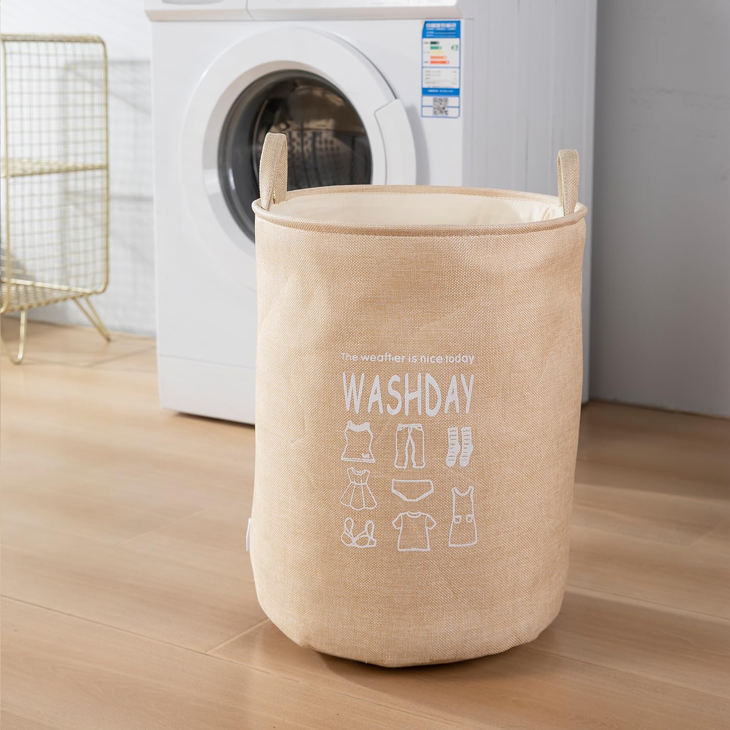 Folding Laundry Basket for Clothes, 43L - Beige