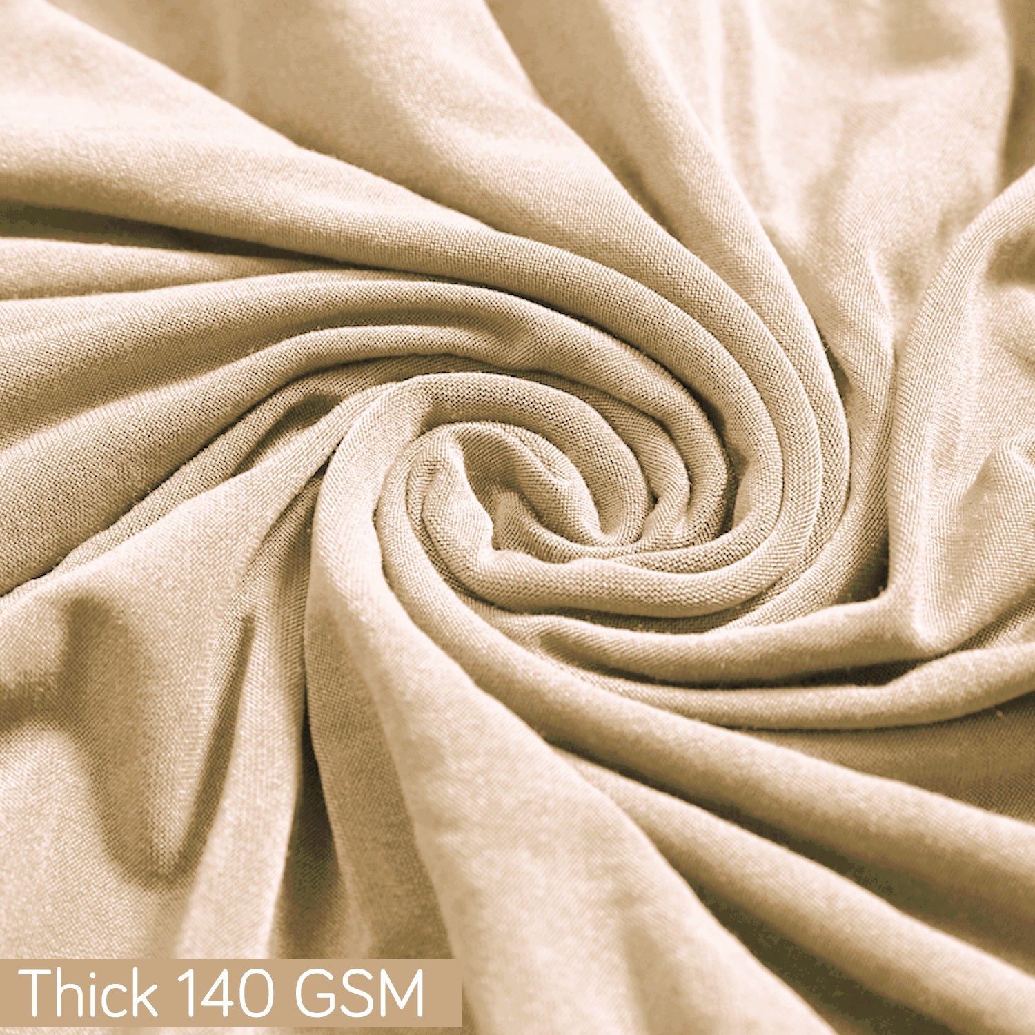 - Made of durable 140 GSM stretchable polyester for a snug fit.