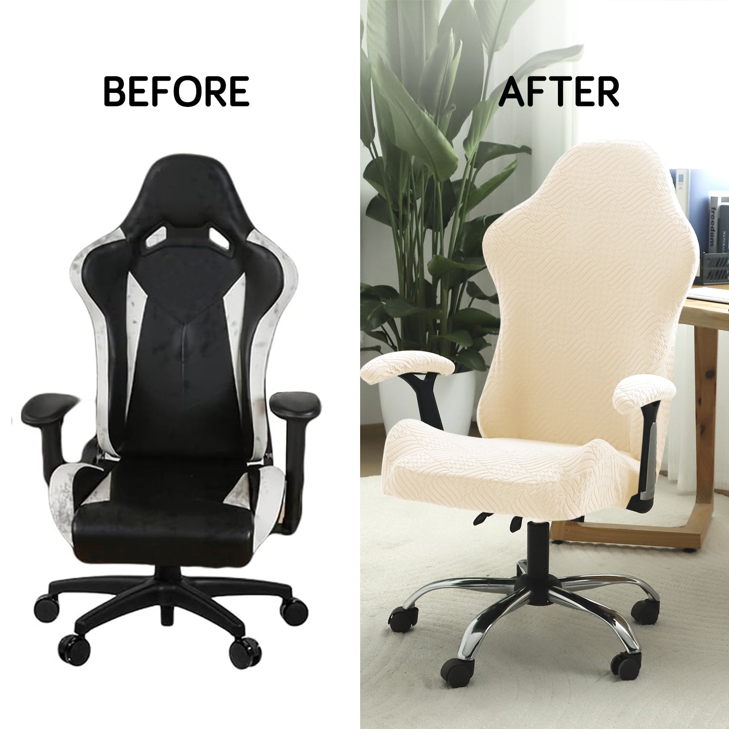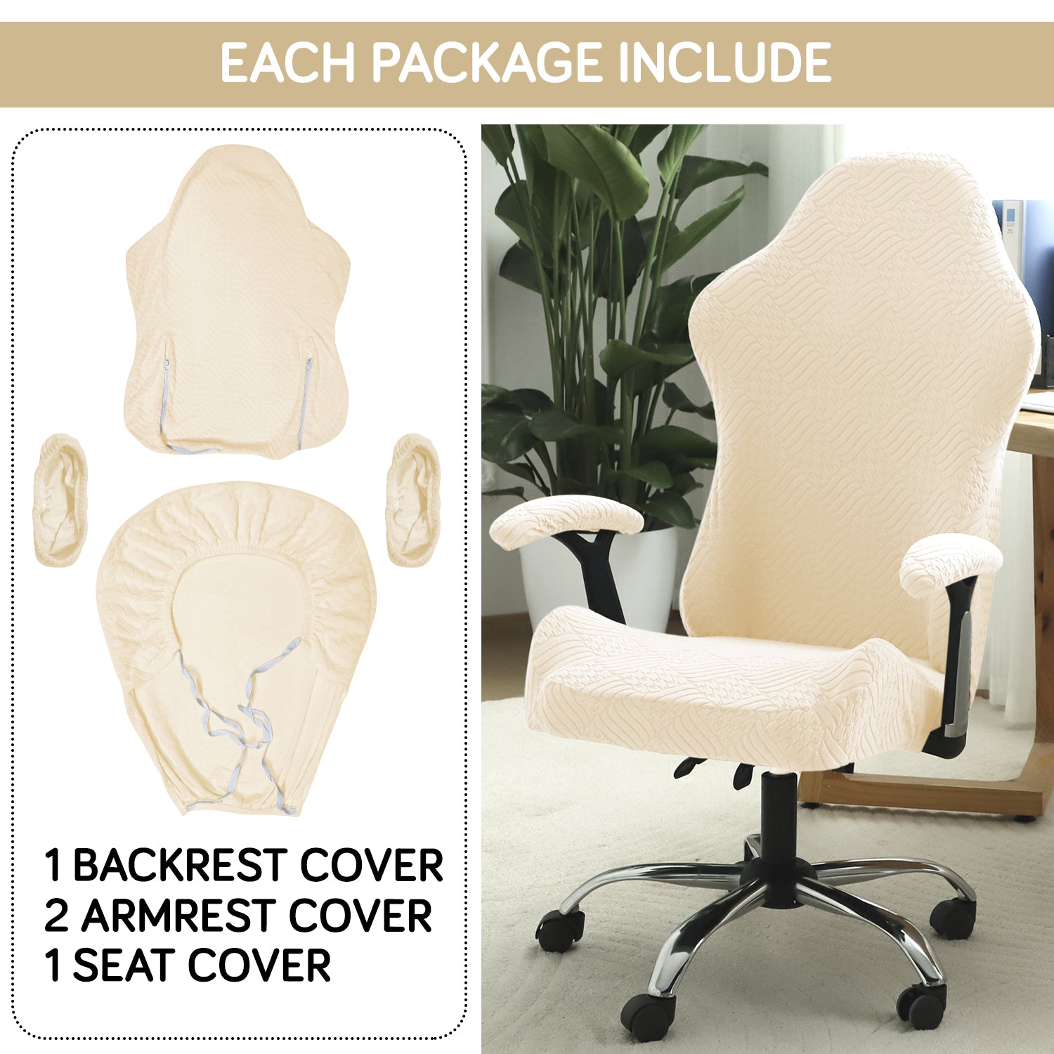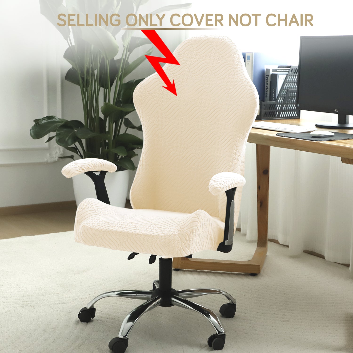 Gaming Chair Cover Elastic Jacquard Computer Rotating Chair Seat Covers Slipcover, Beige