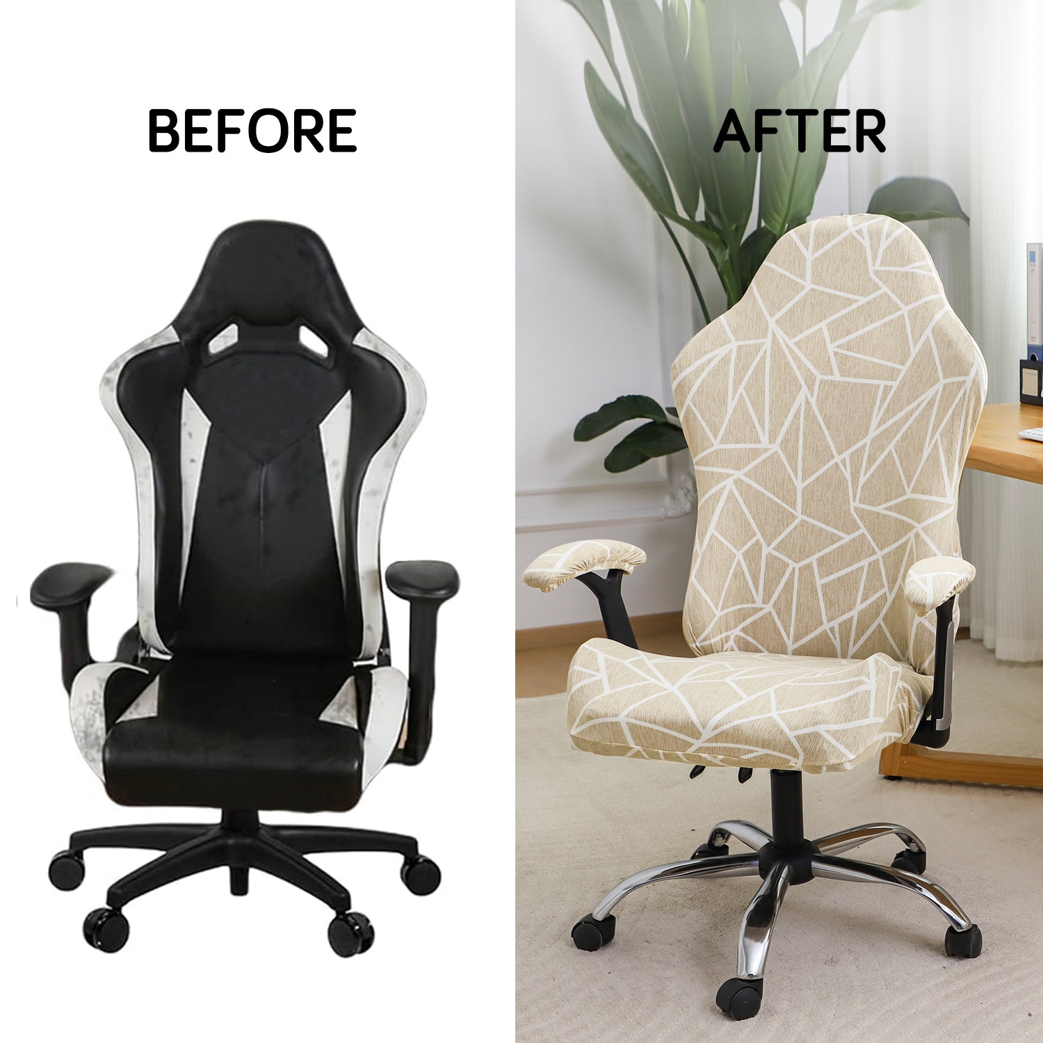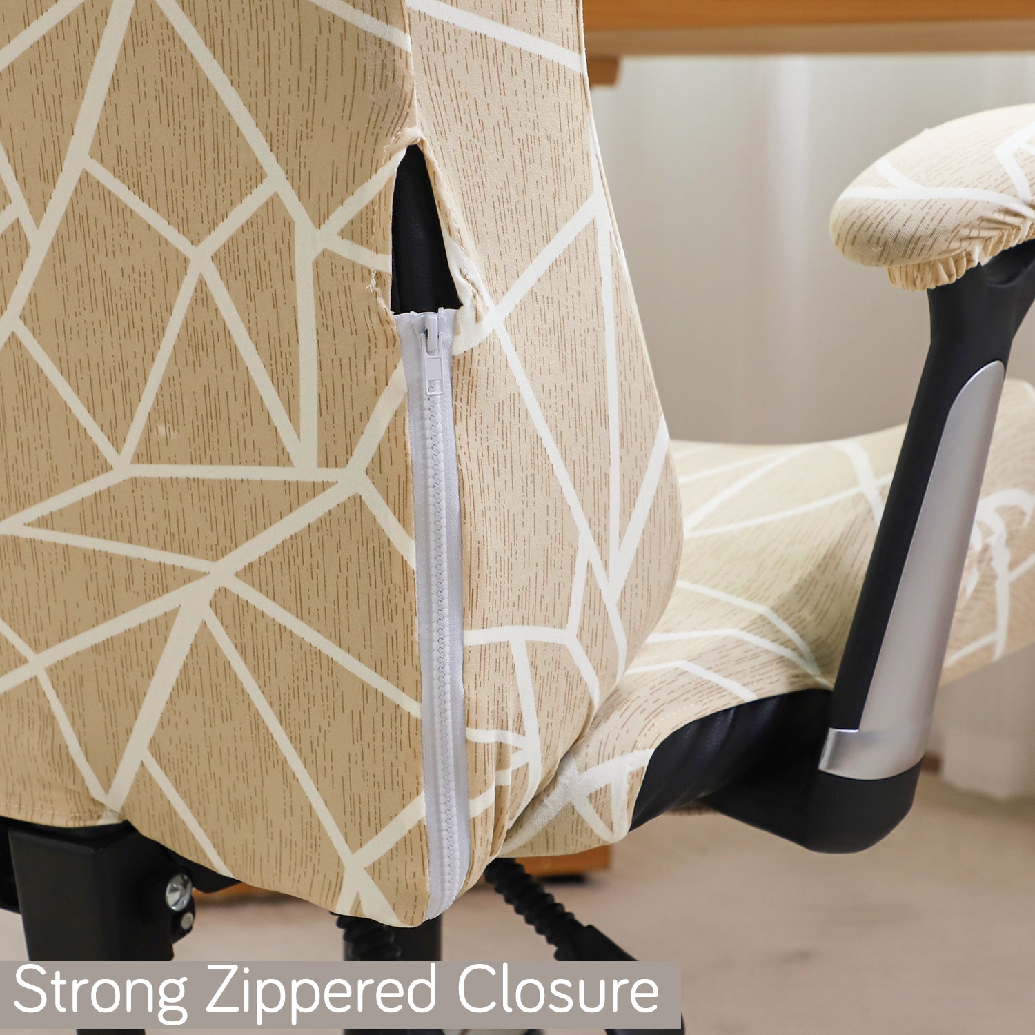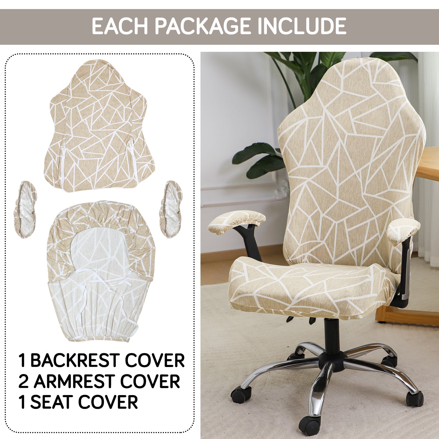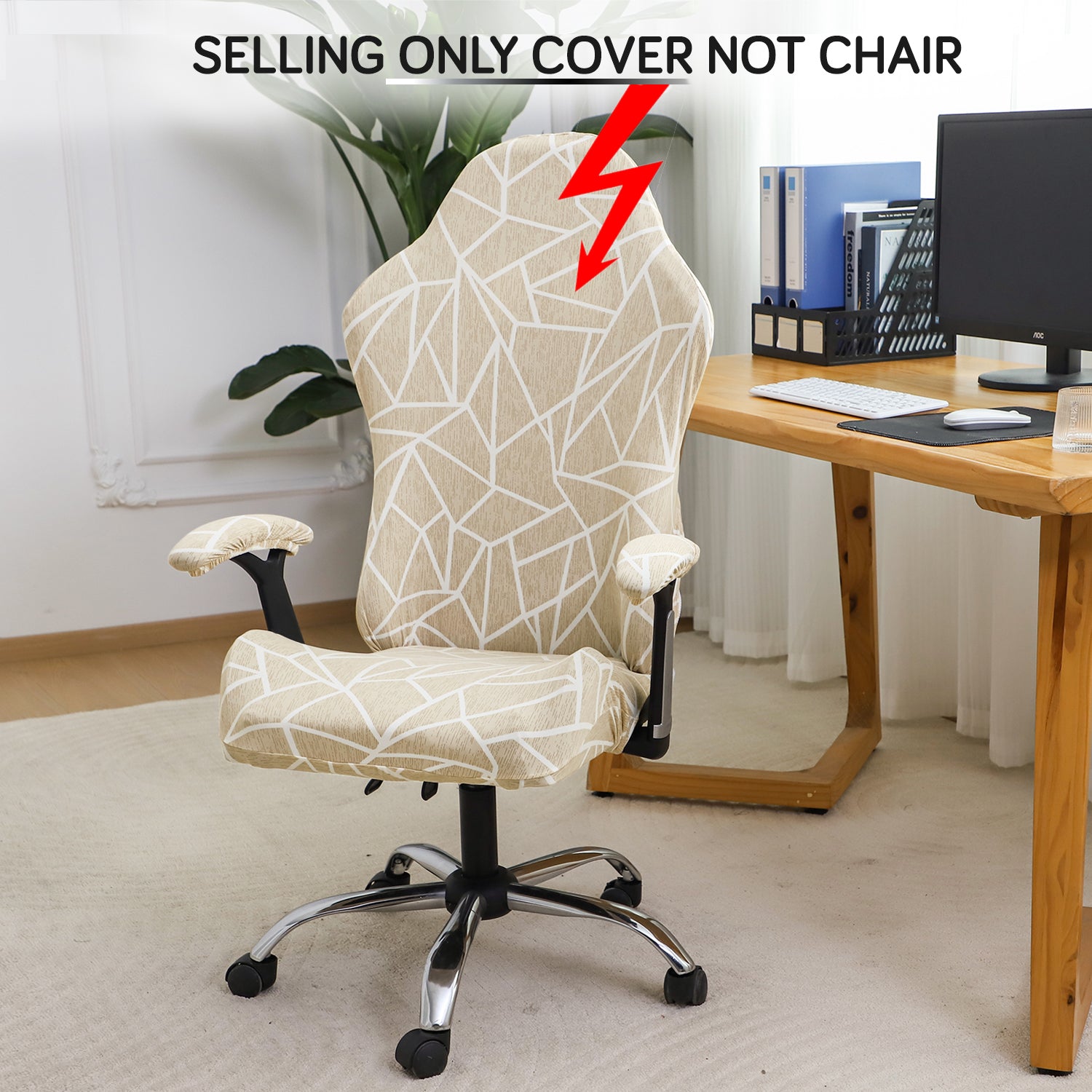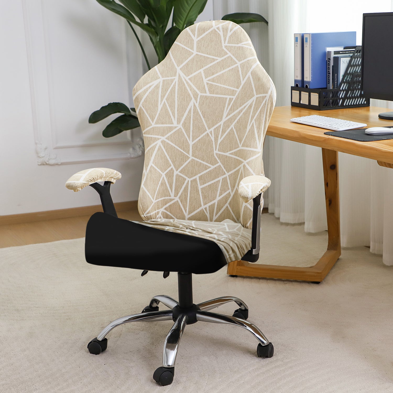 Printed Gaming Chair Seat Cover Elastic Computer Rotating Chair, Beige Abstract Geometry