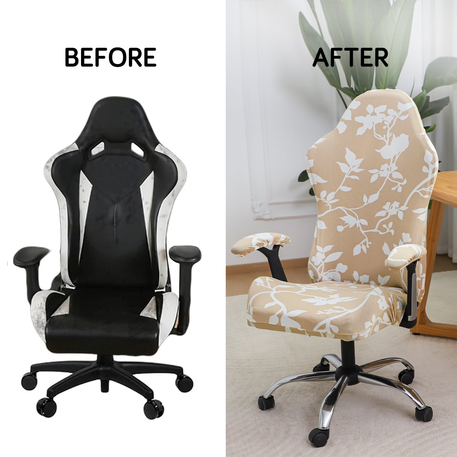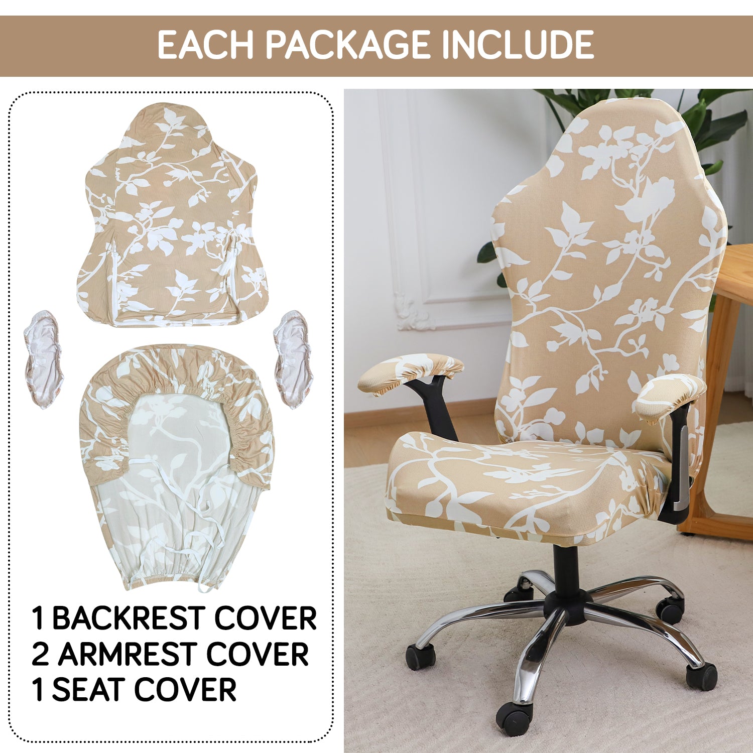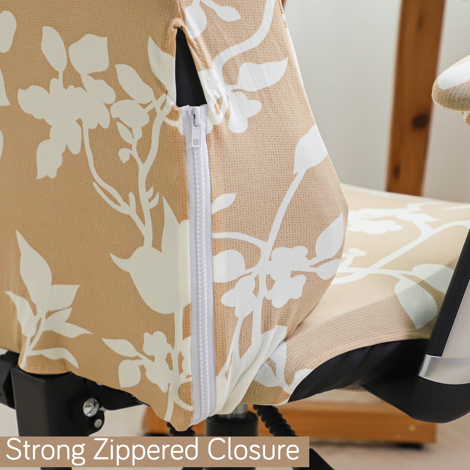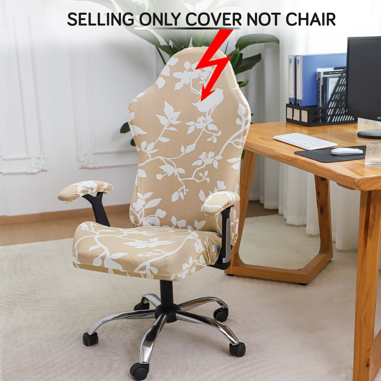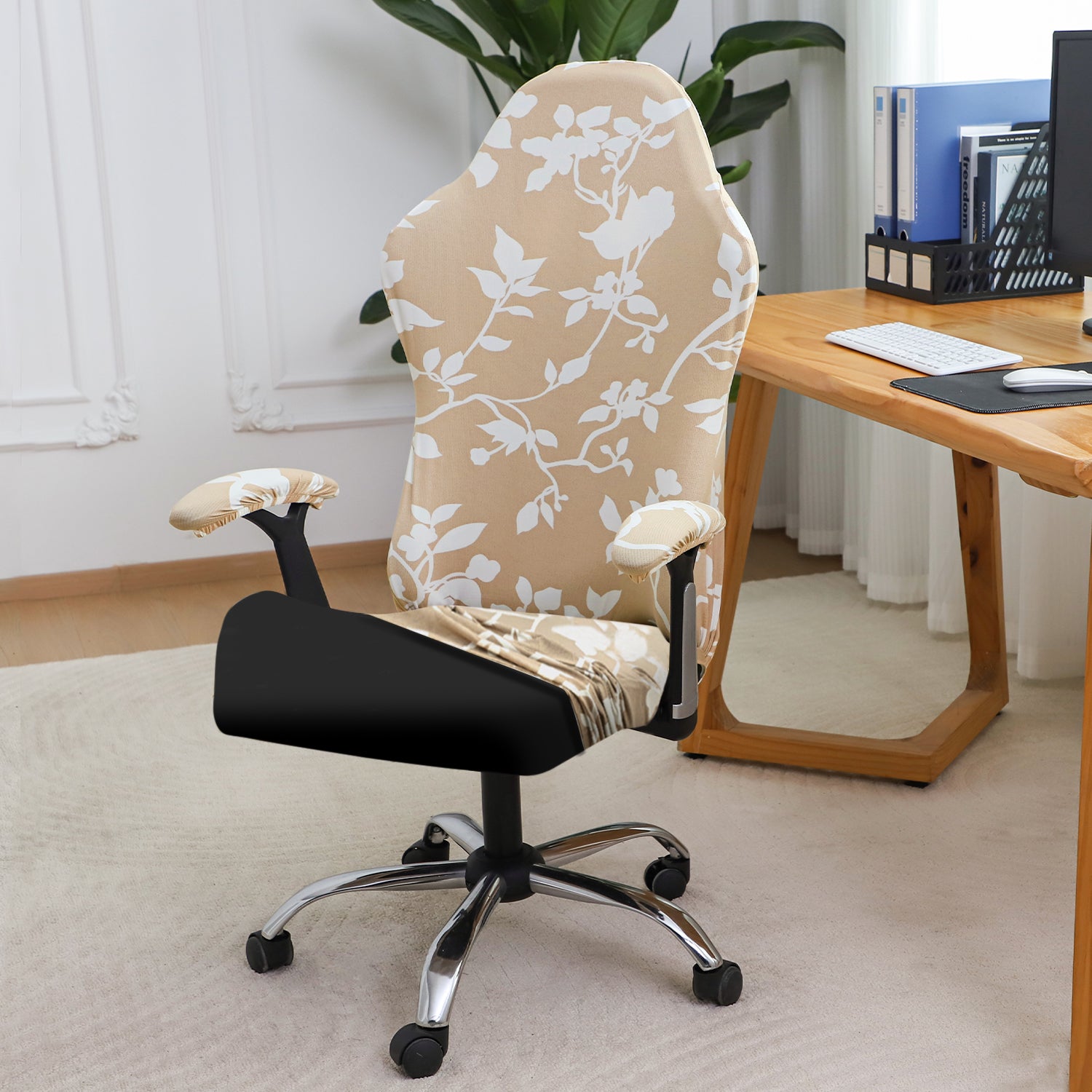 Printed Gaming Chair Seat Cover Elastic Computer Rotating Chair, Buff Brown Sillehoute Floral