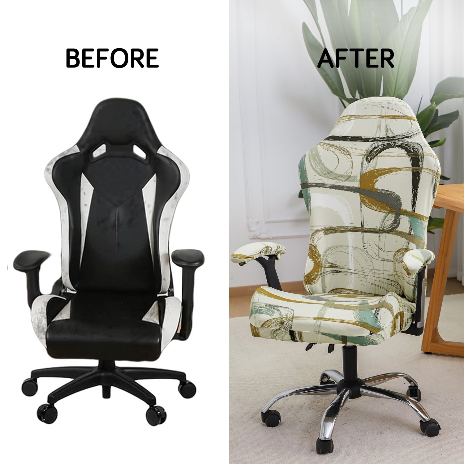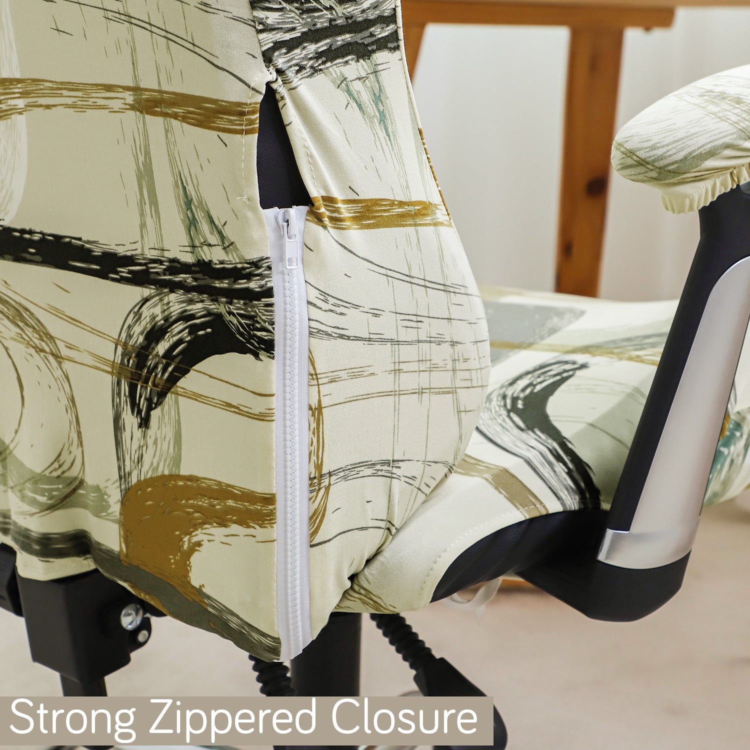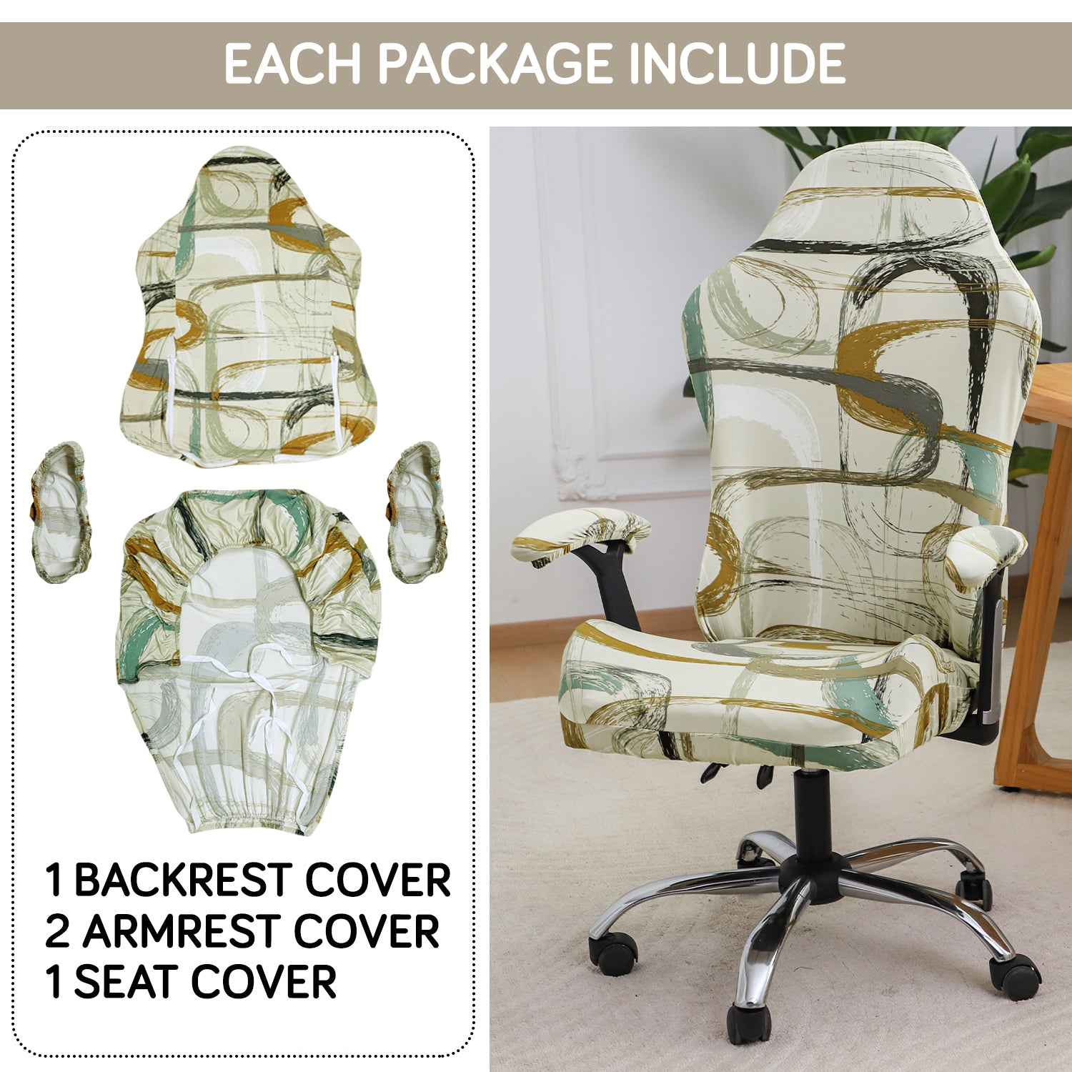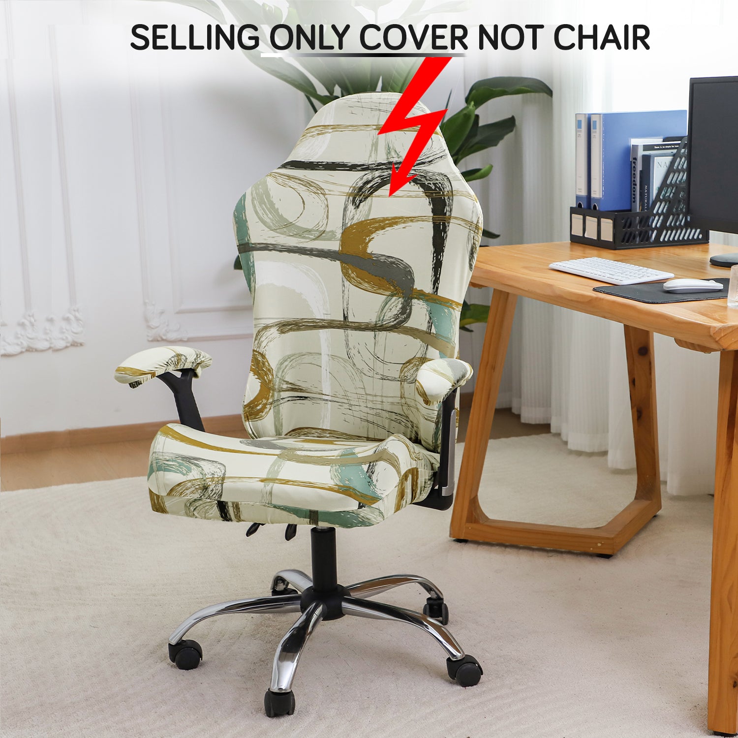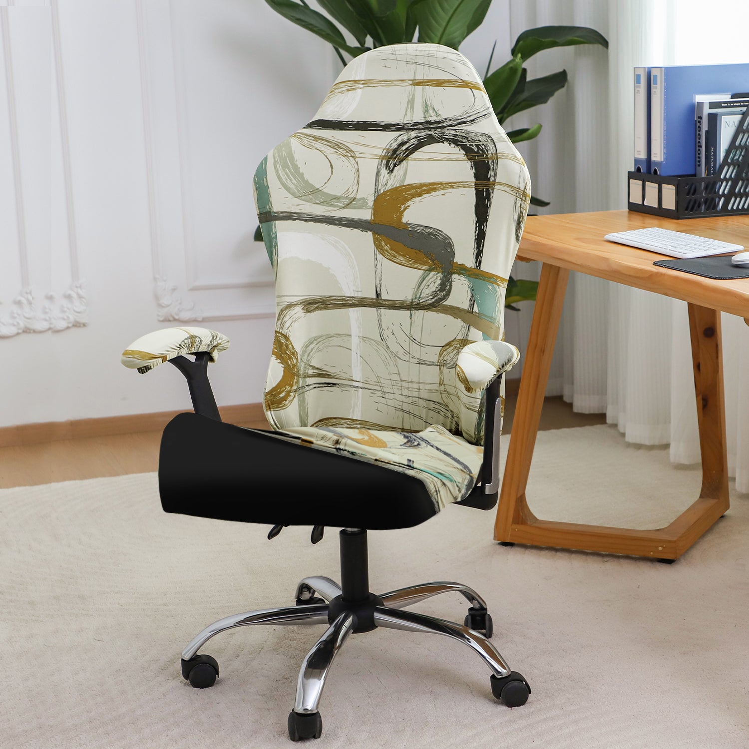 Printed Gaming Chair Seat Cover Elastic Computer Rotating Chair, Parchement Beige Abstract Art