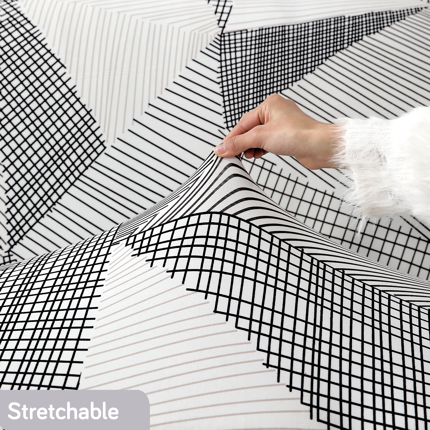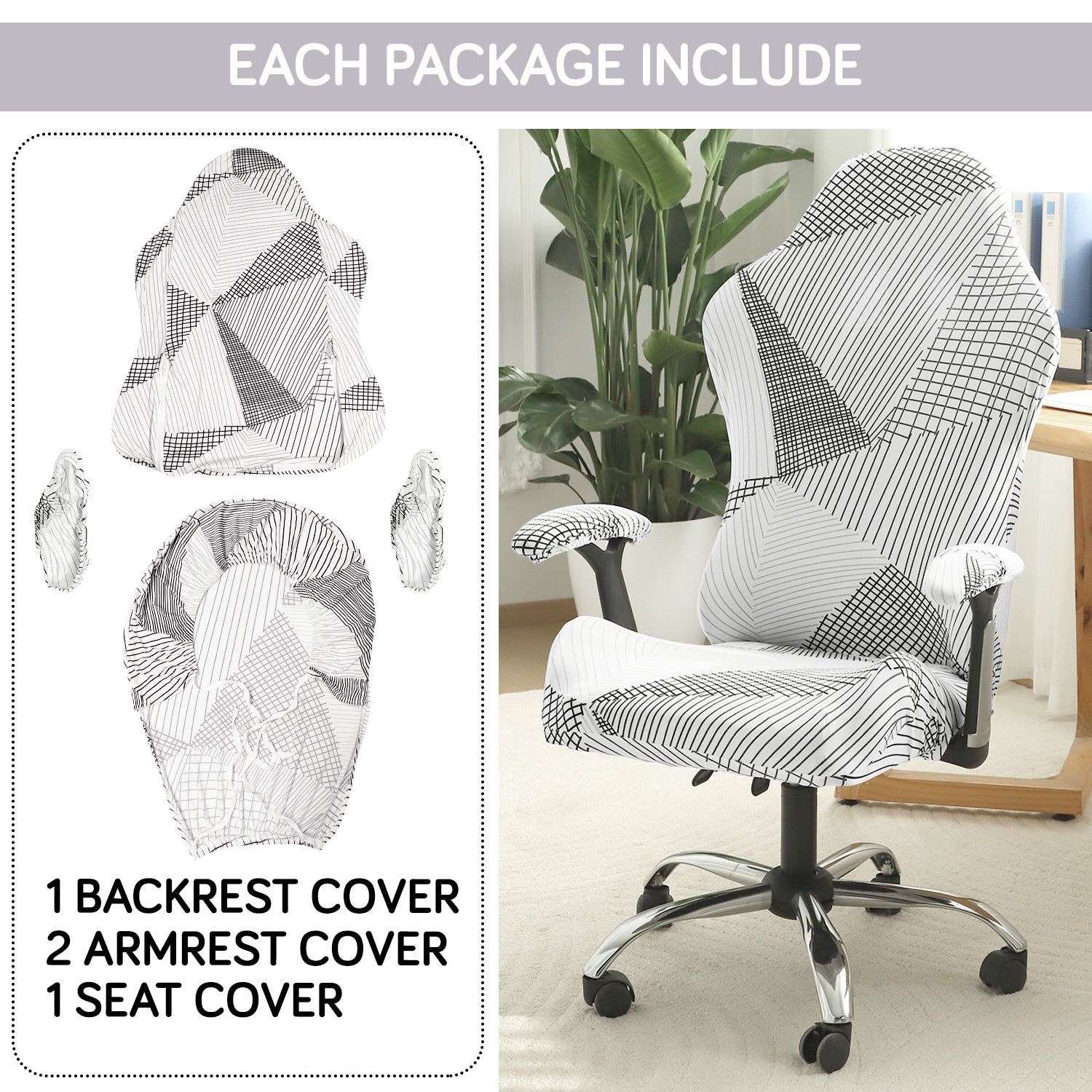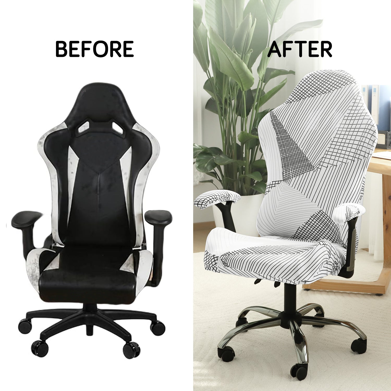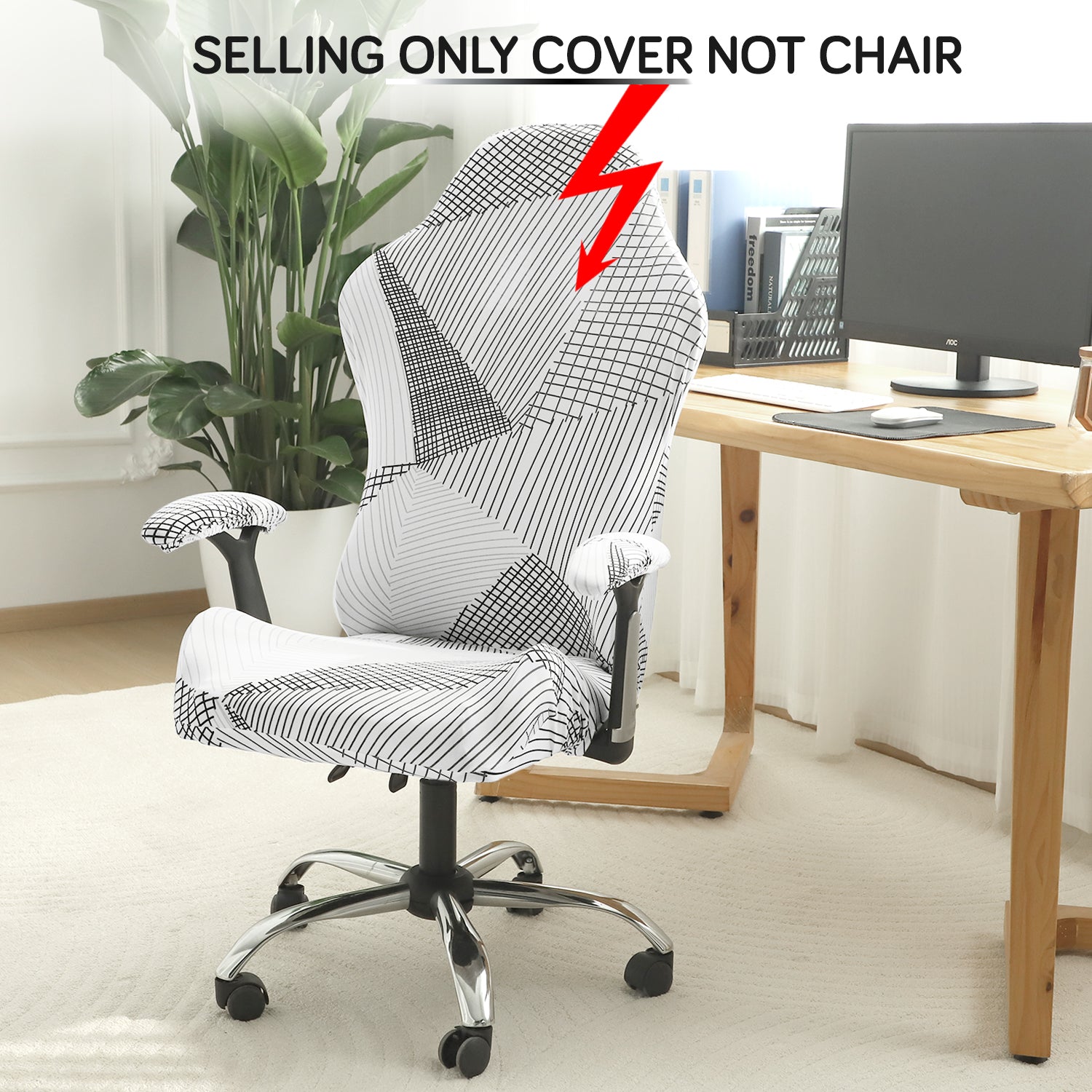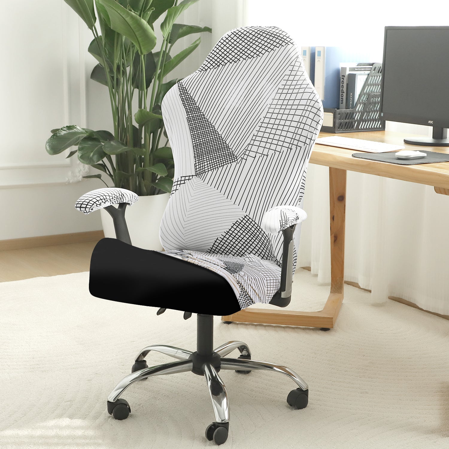Printed Gaming Chair Seat Cover Elastic Computer Rotating Chair, Snow White Black Geometry