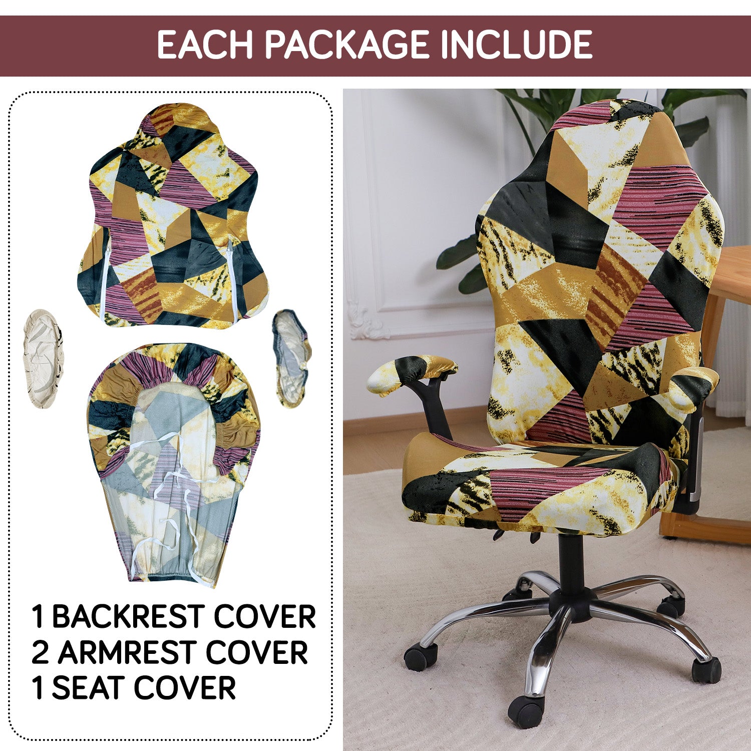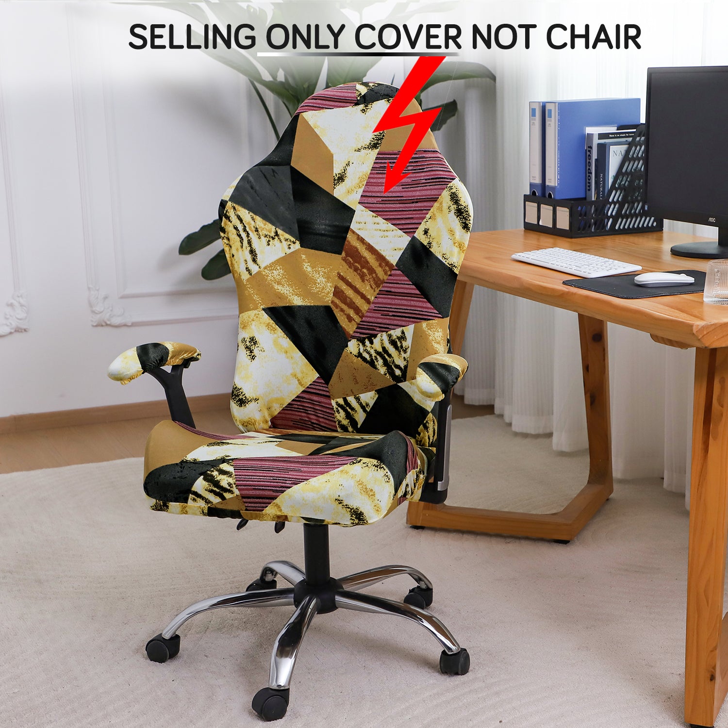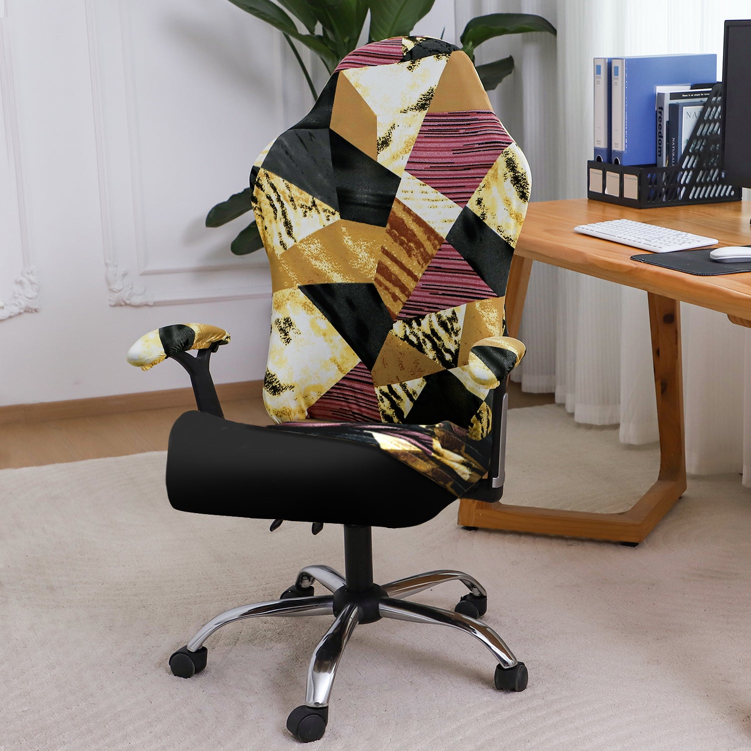 Printed Gaming Chair Seat Cover Elastic Computer Rotating Chair, Wine Abstract Geometry