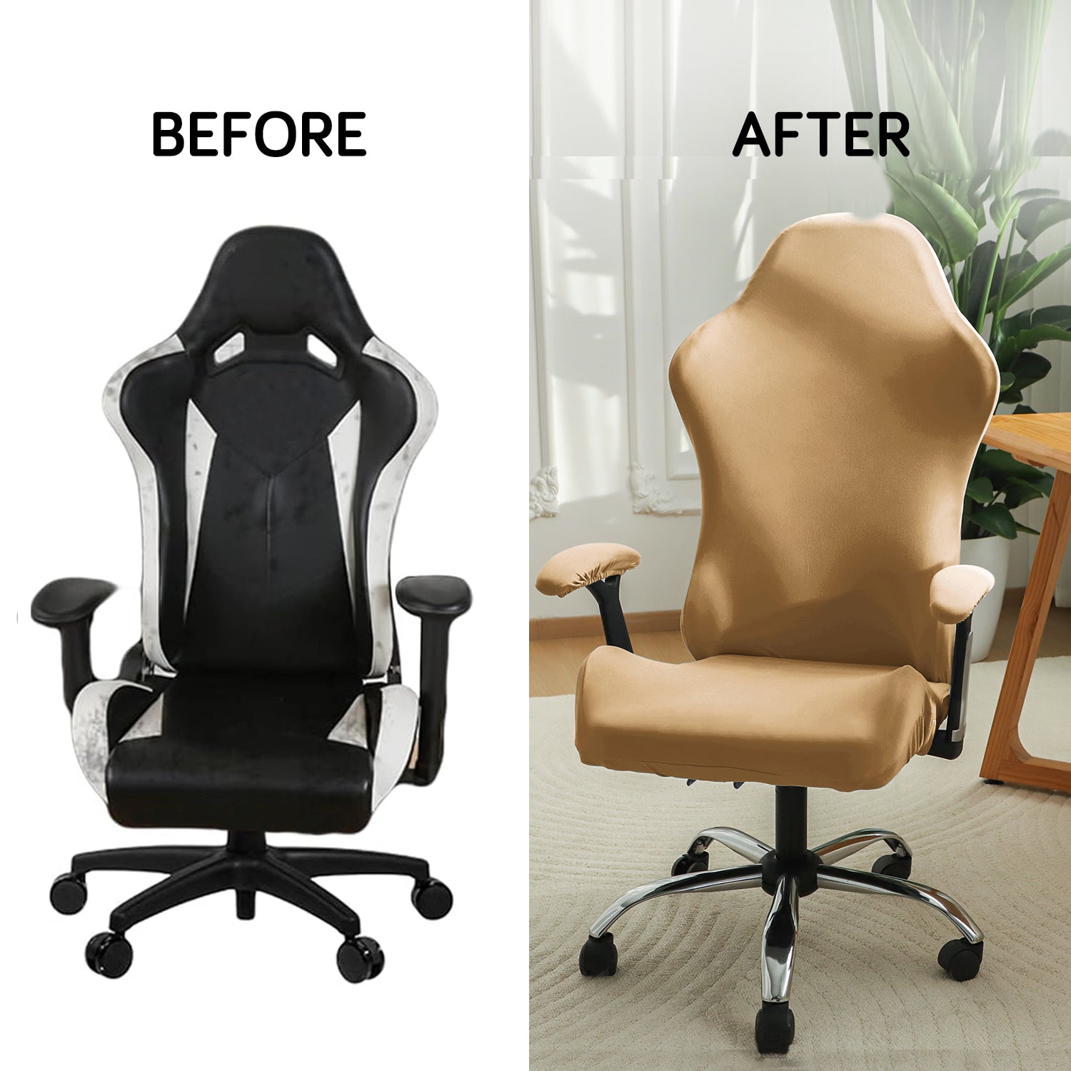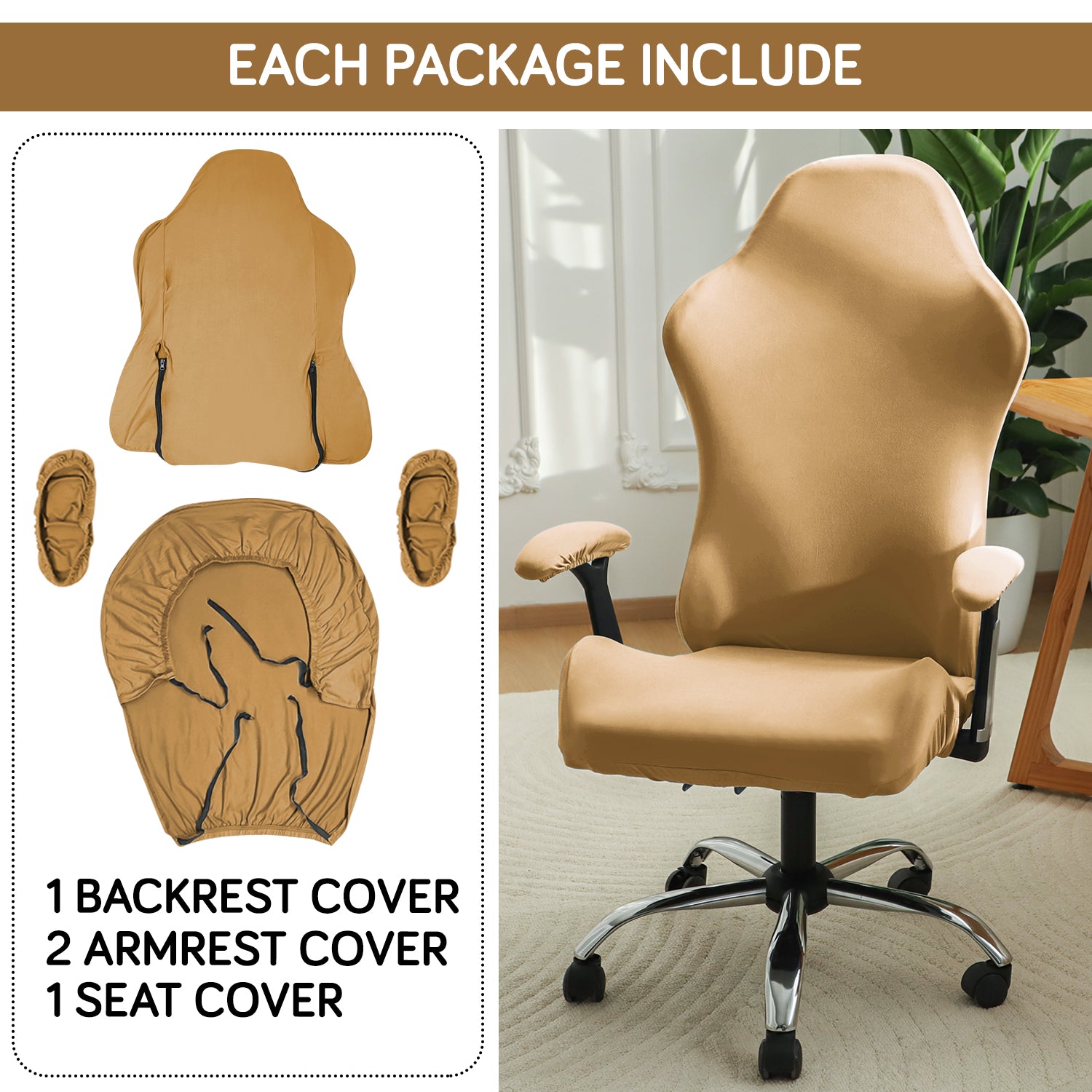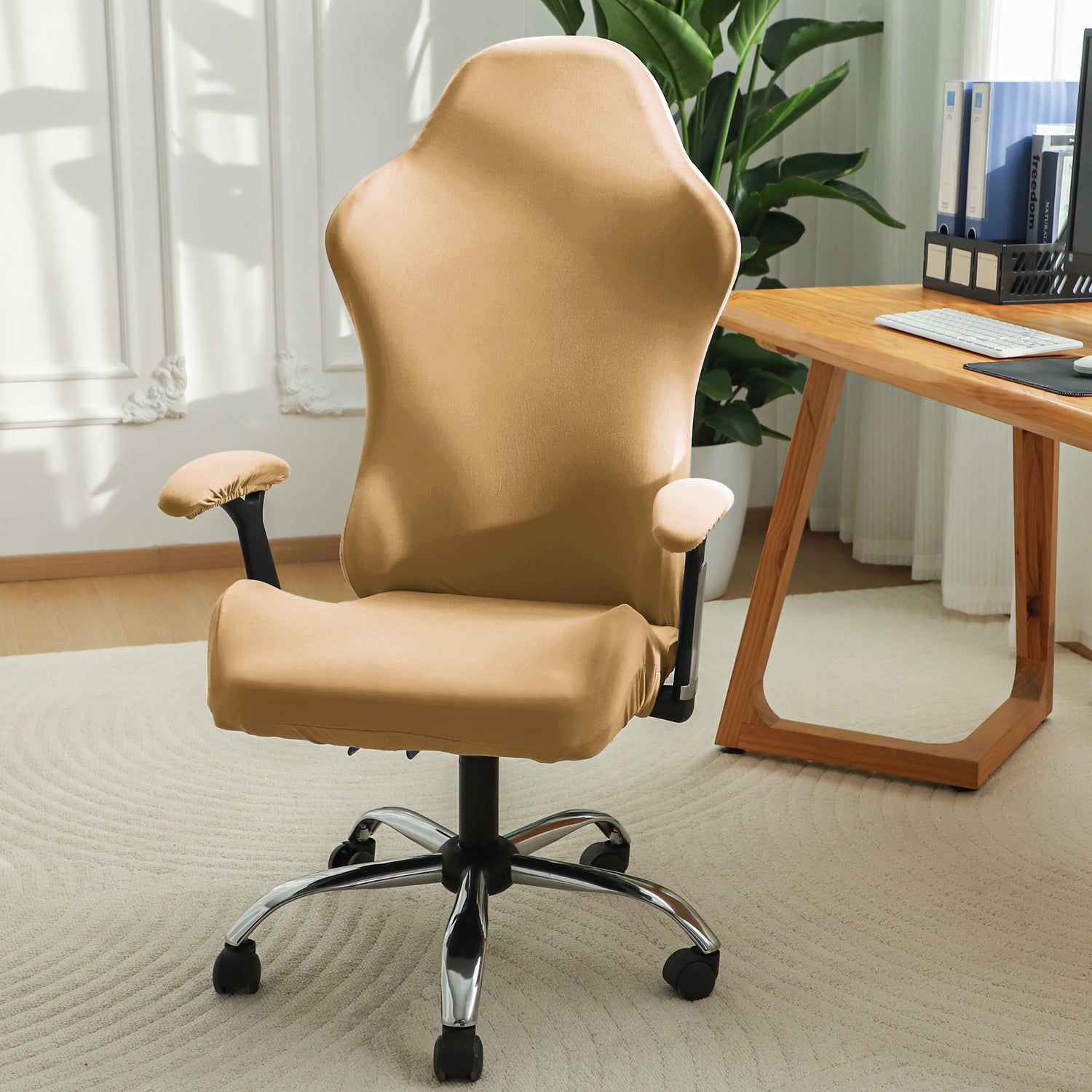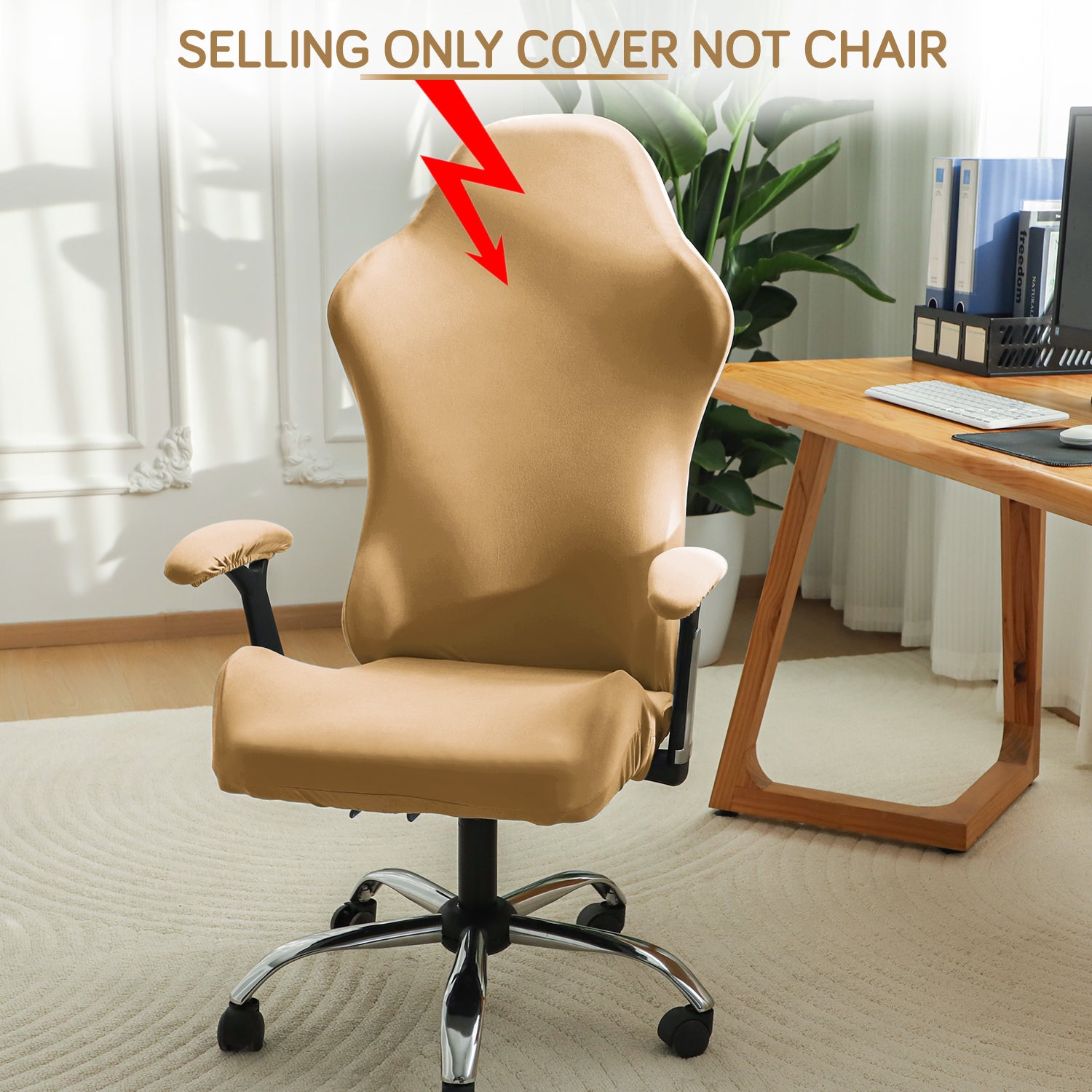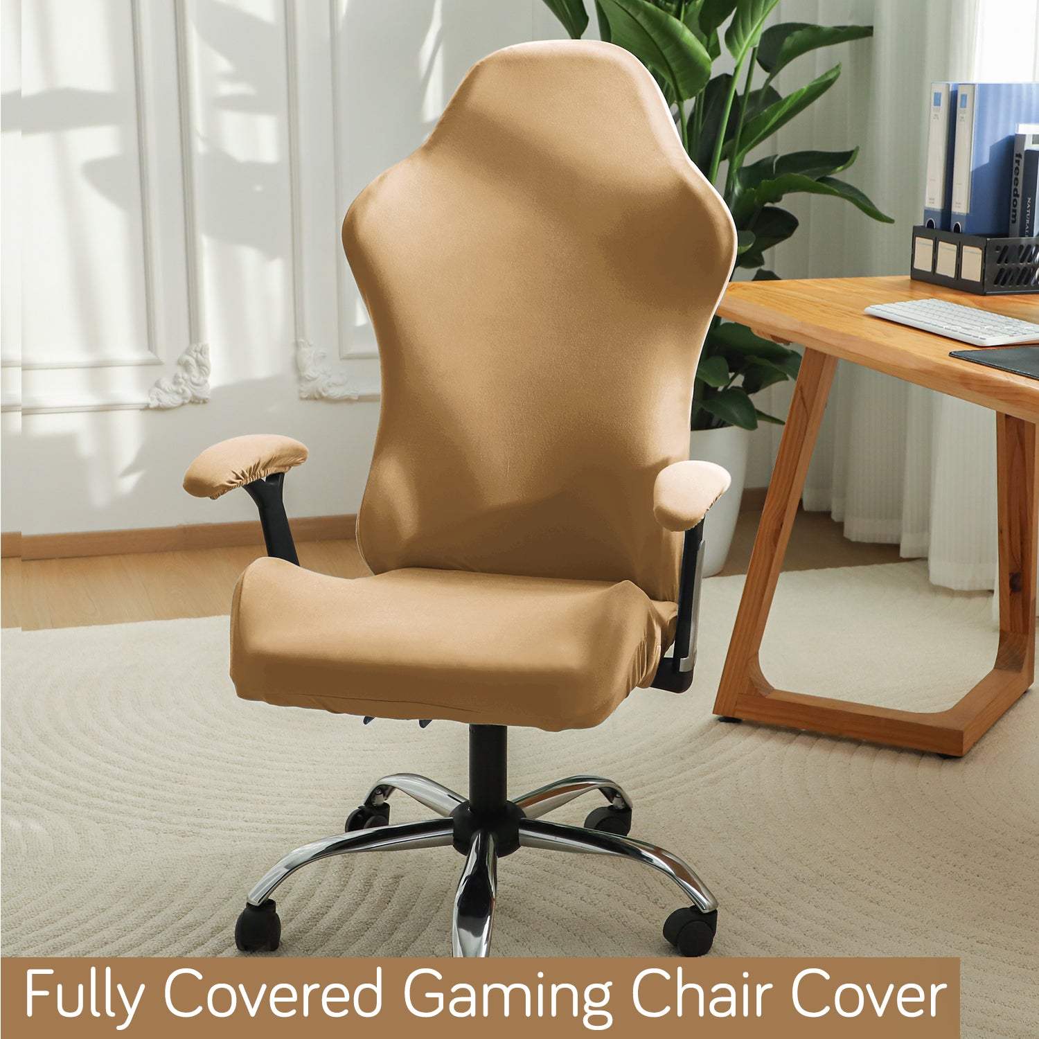 Gaming Chair Cover Stretchable Computer Rotating Chair Seat Covers Slipcover, Camel