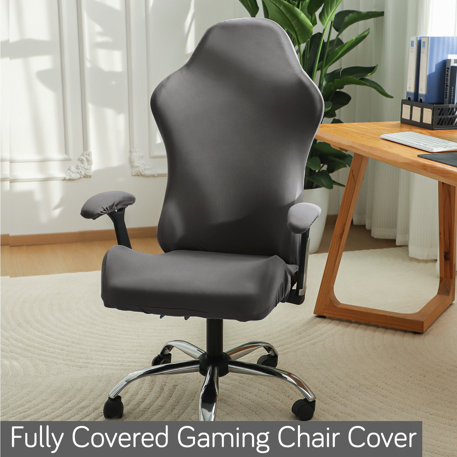Gaming Chair Cover Stretchable Computer Rotating Chair Seat Covers Slipcover, Grey