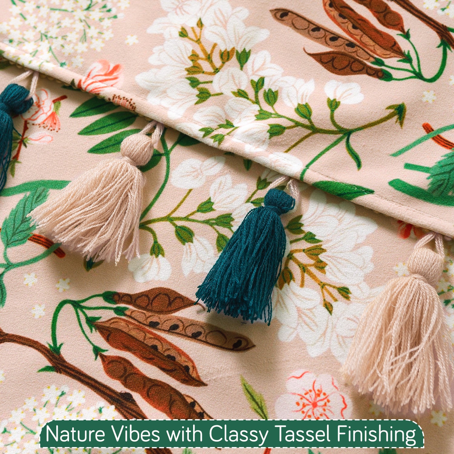 Holland Velvet 5-Seater Sofa Cover with Tassel (3+1+1), Beige Woodland Bloom